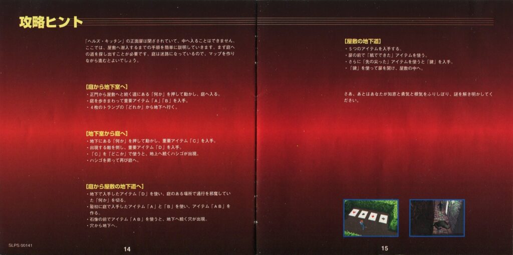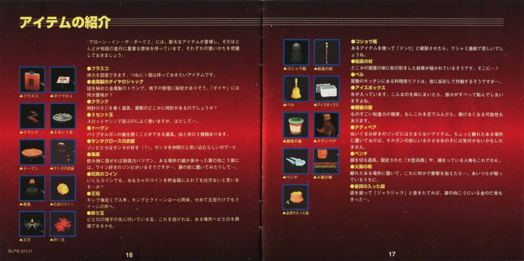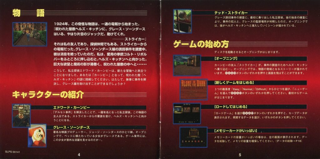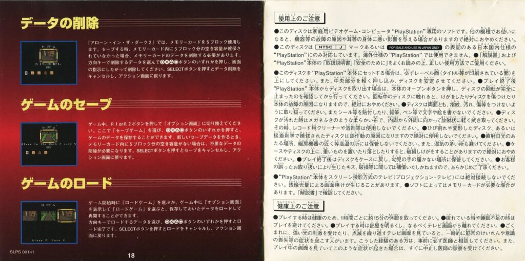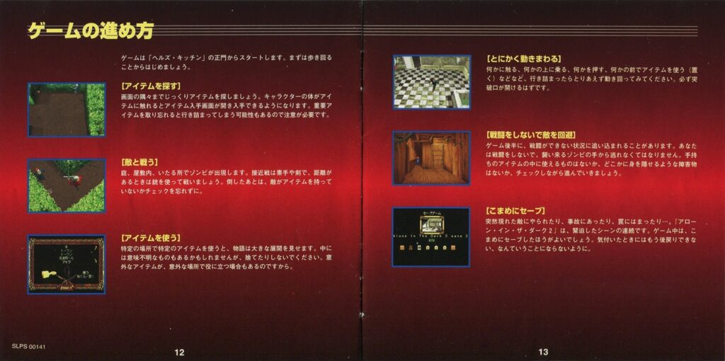 スポンサーリンク アローン・イン・ザ・ダーク2[PS1] 2026.01.10 プレイステーション(PS1)ソフトアローン・イン・ザ・ダーク2の説明書です(ALONE IN THE DARK2 Instruction Manual)※スマホの画像操作は指2本で行ってください。 説明書画像(日本語)