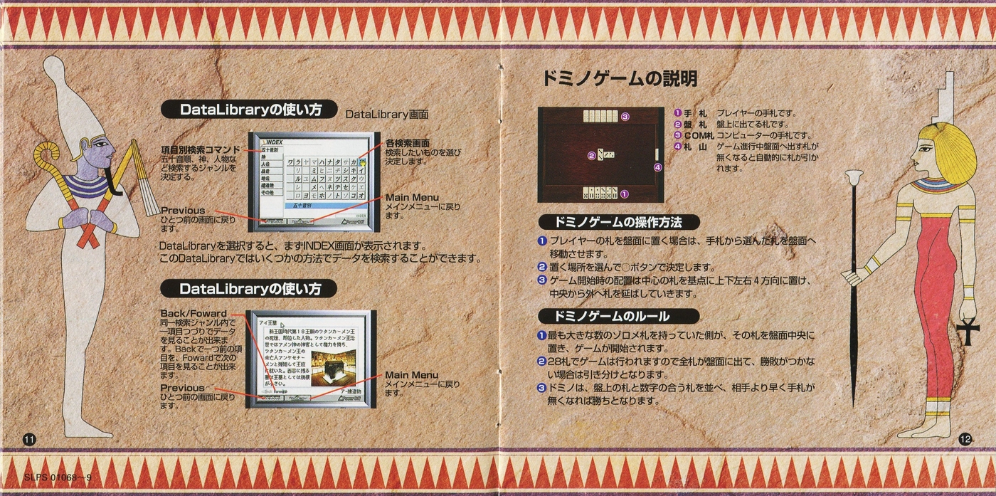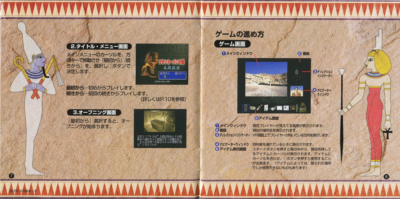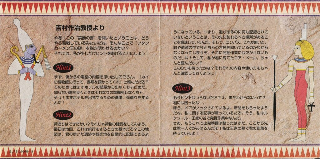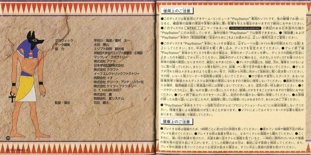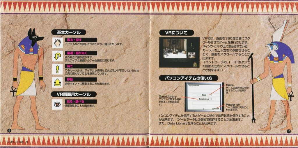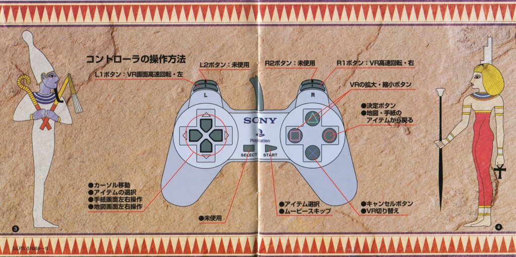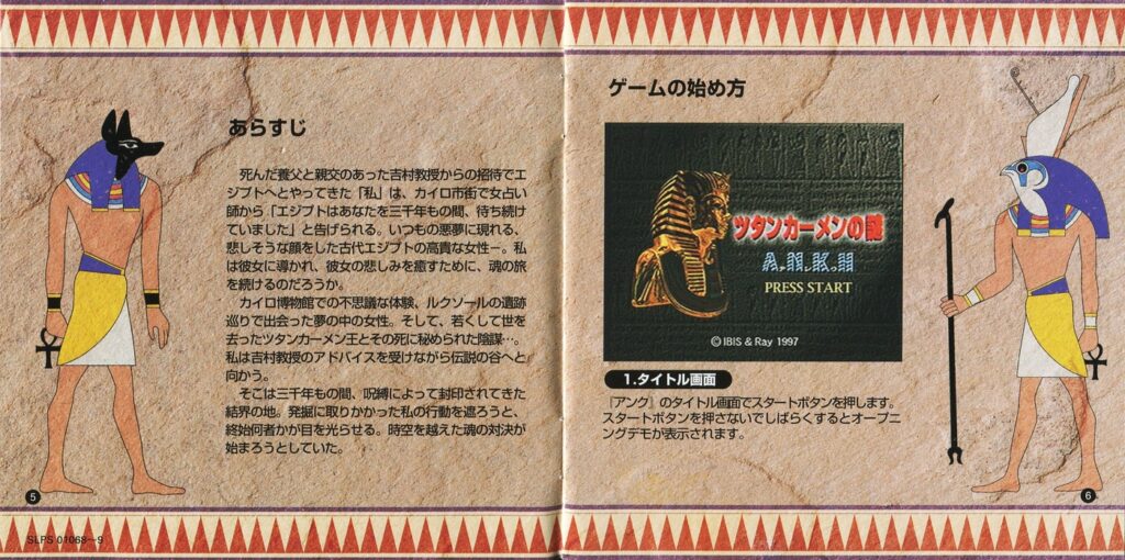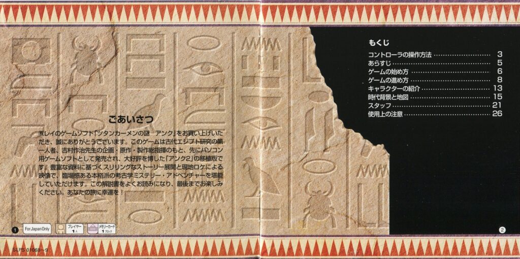 スポンサーリンク ツタンカーメンの謎 アンク[PS1] 2026.04.10 プレイステーション(PS1)ソフトツタンカーメンの謎 アンクの説明書です(ANKH Instruction Manual)※スマホの画像操作は指2本で行ってください。 目次 説明書画像(日本語)禁断の書 説明書画像(日本語) 禁断の書