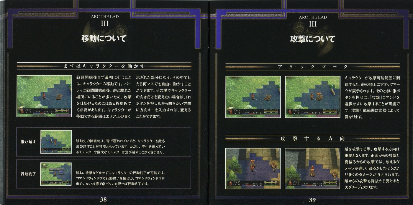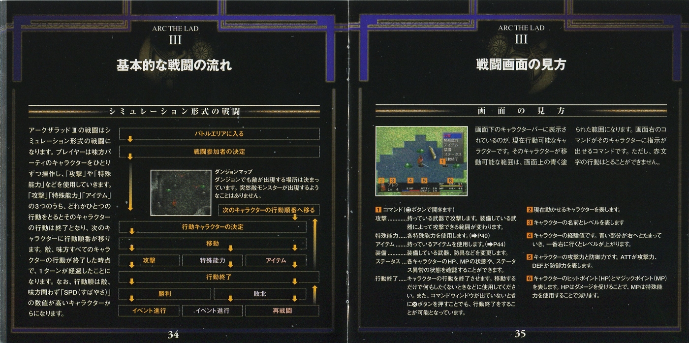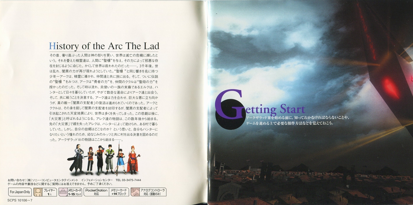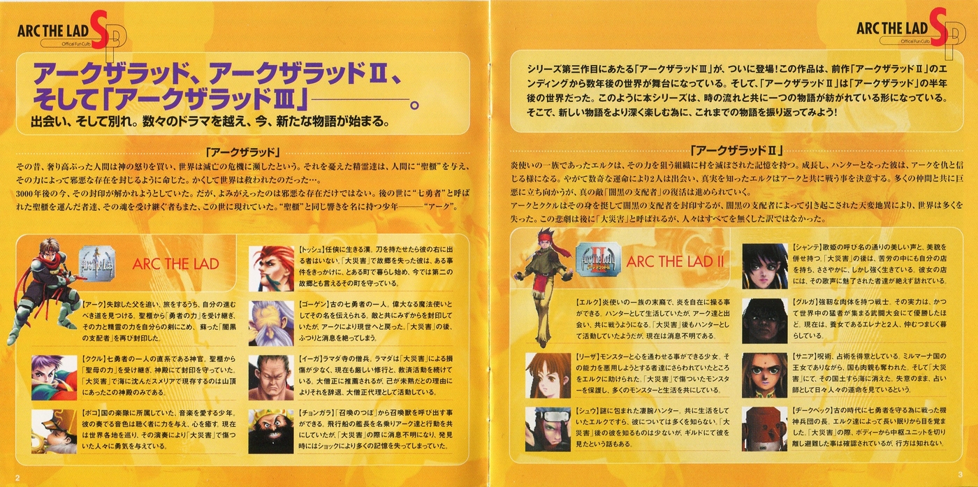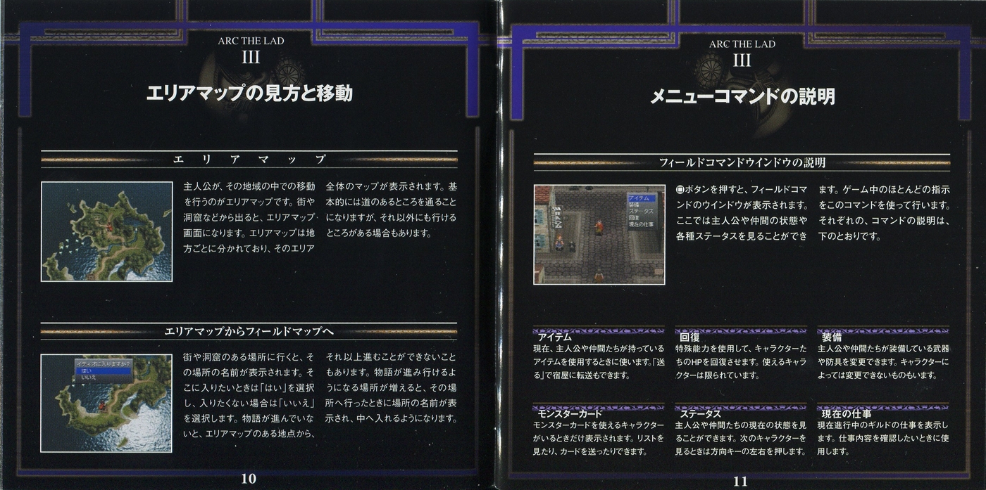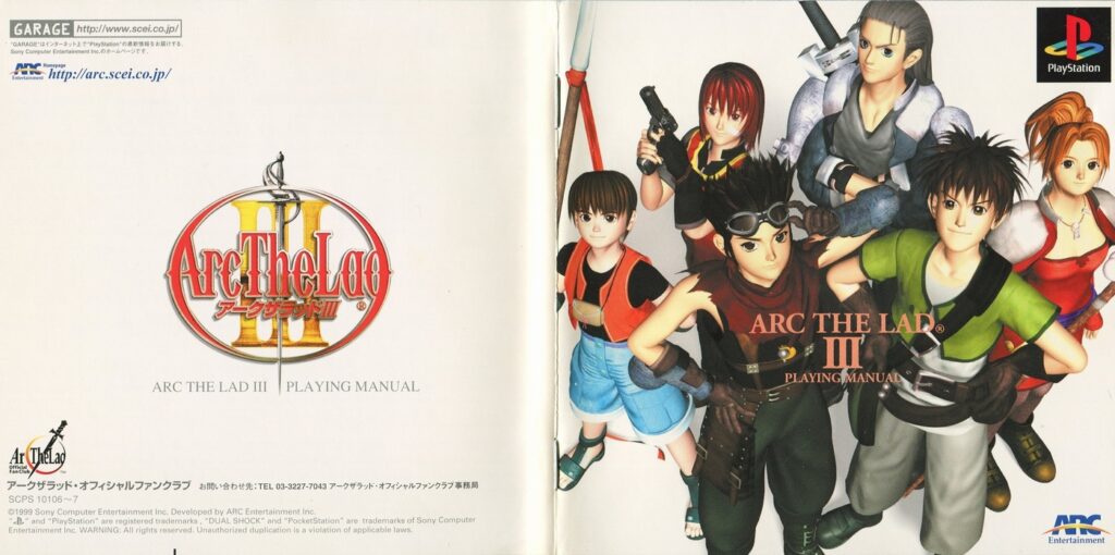 スポンサーリンク アークザラッド3 説明書 2025.11.02 プレイステーション(PS1)ソフトアークザラッド3の説明書です(Arc The Lad3 Instruction Manual)※スマホの画像操作は指2本で行ってください。 目次 説明書画像(日本語)オフィシャルファンクラブ会誌特別号 説明書画像(日本語) オフィシャルファンクラブ会誌特別号