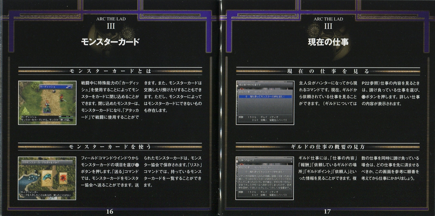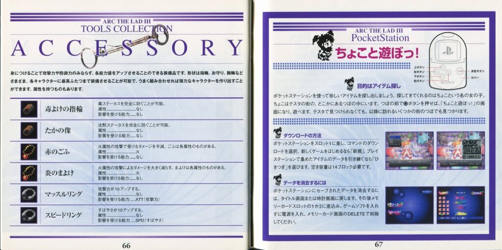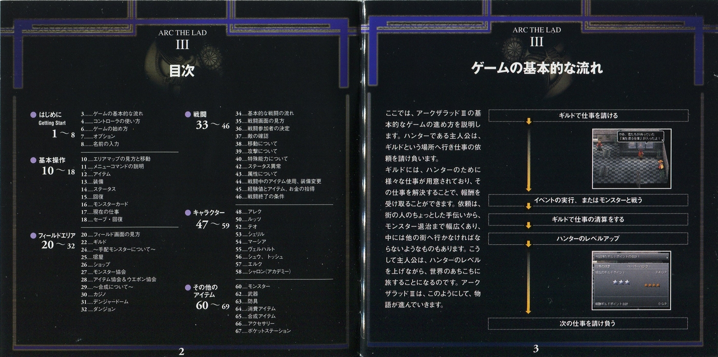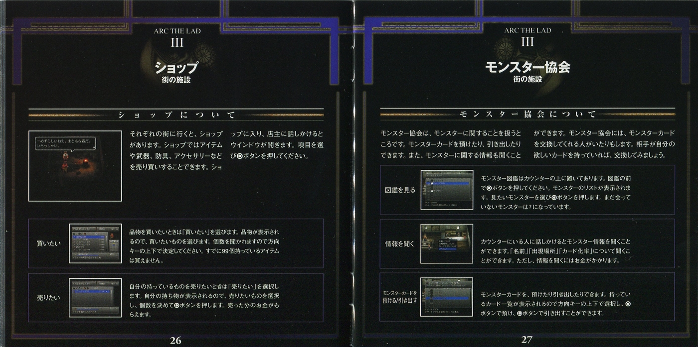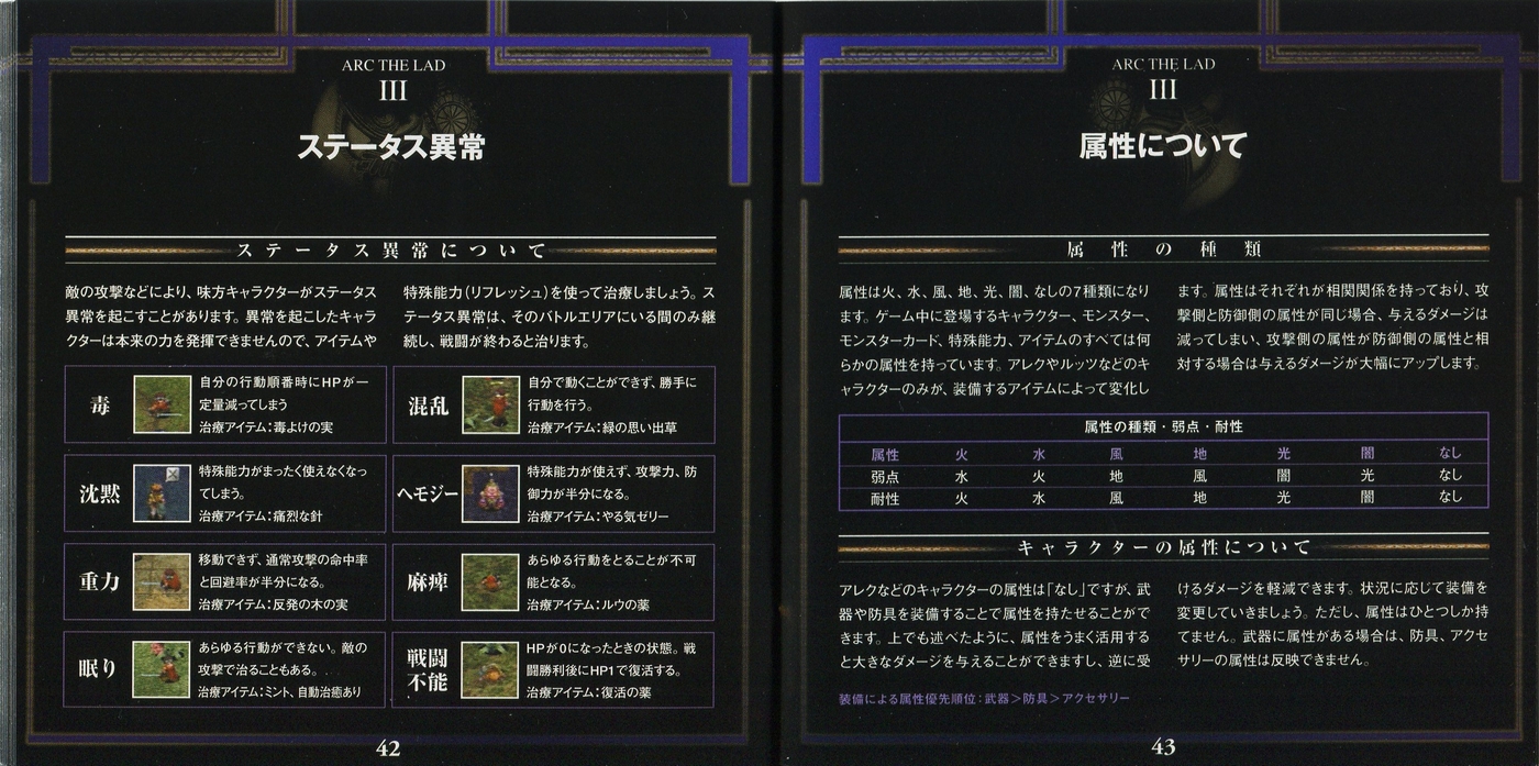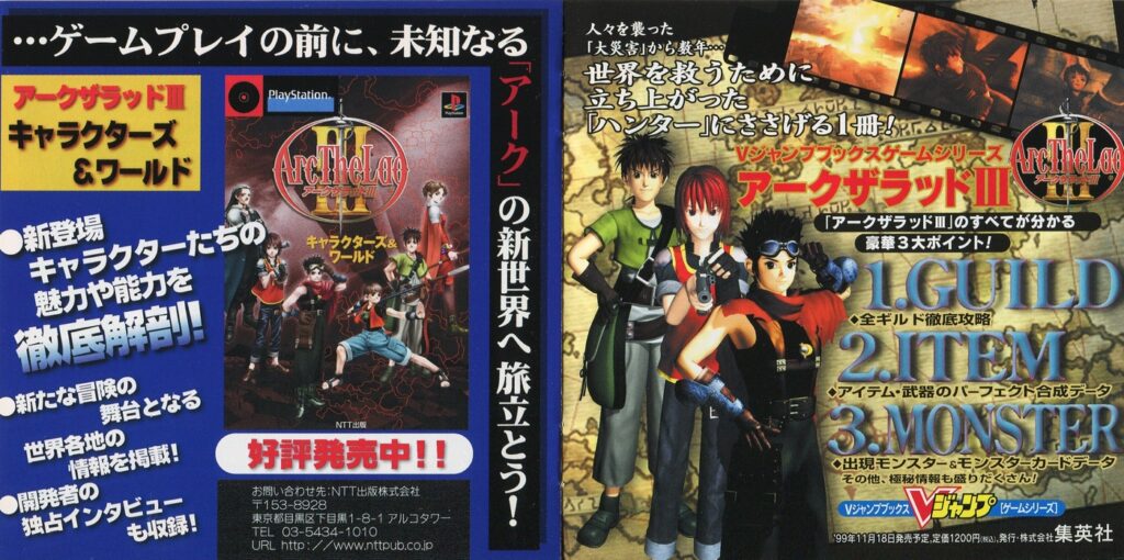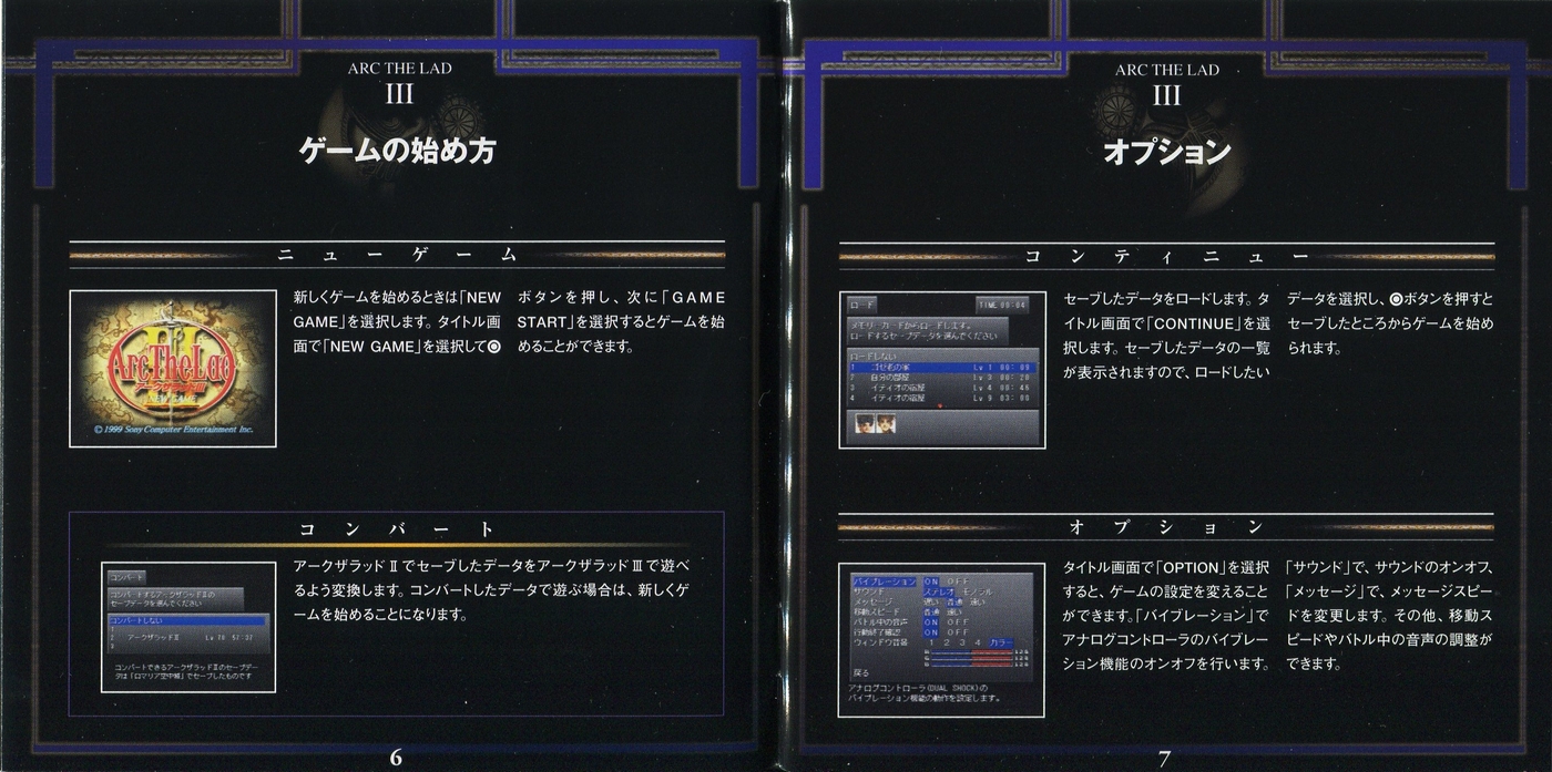 スポンサーリンク アークザラッド3 説明書 2025.11.02 プレイステーション(PS1)ソフトアークザラッド3の説明書です(Arc The Lad3 Instruction Manual)※スマホの画像操作は指2本で行ってください。 目次 説明書画像(日本語)オフィシャルファンクラブ会誌特別号 説明書画像(日本語) オフィシャルファンクラブ会誌特別号