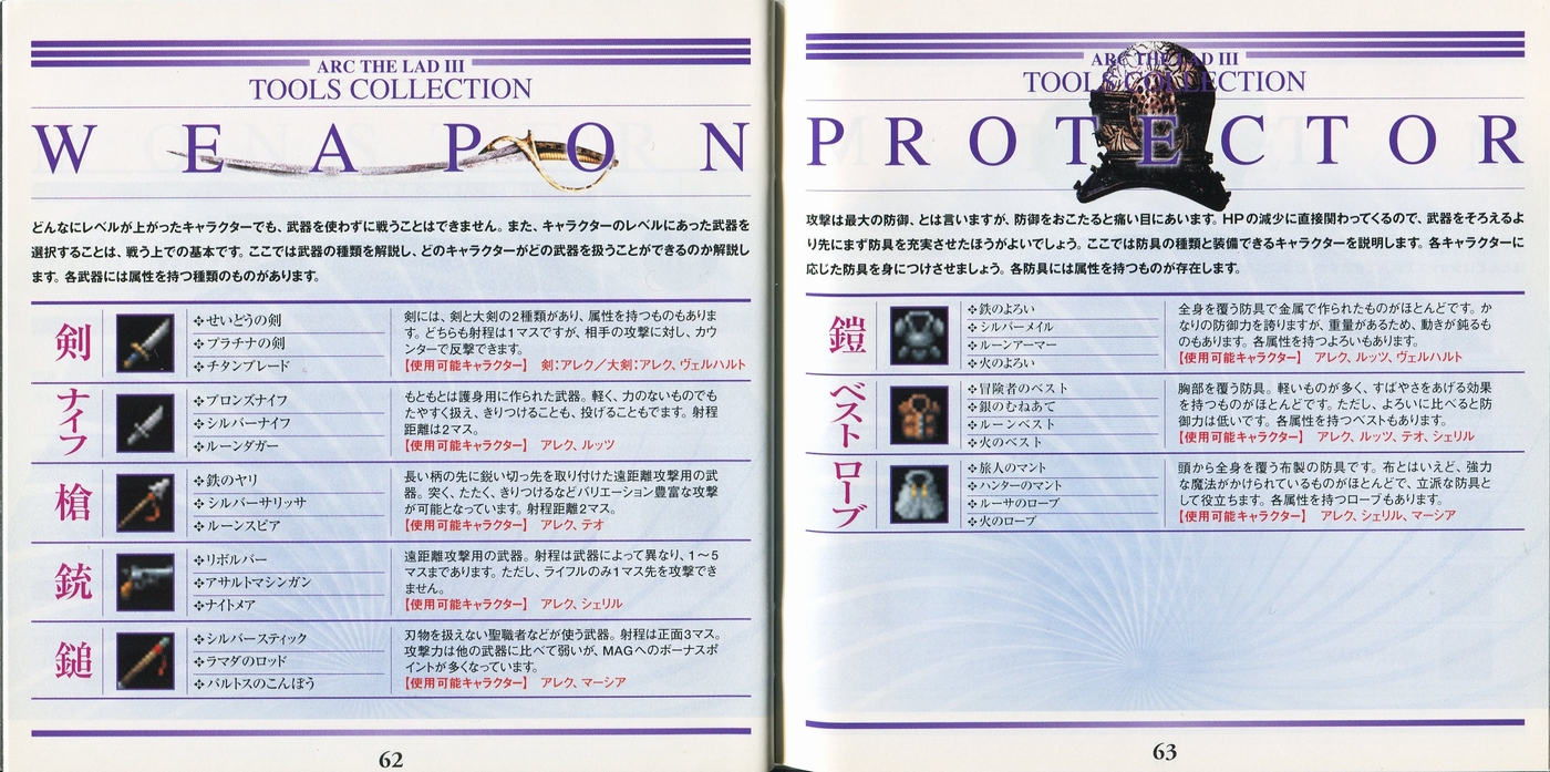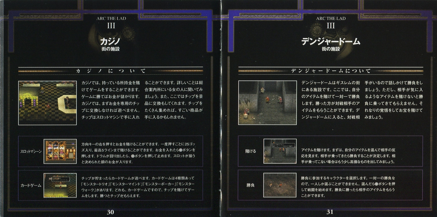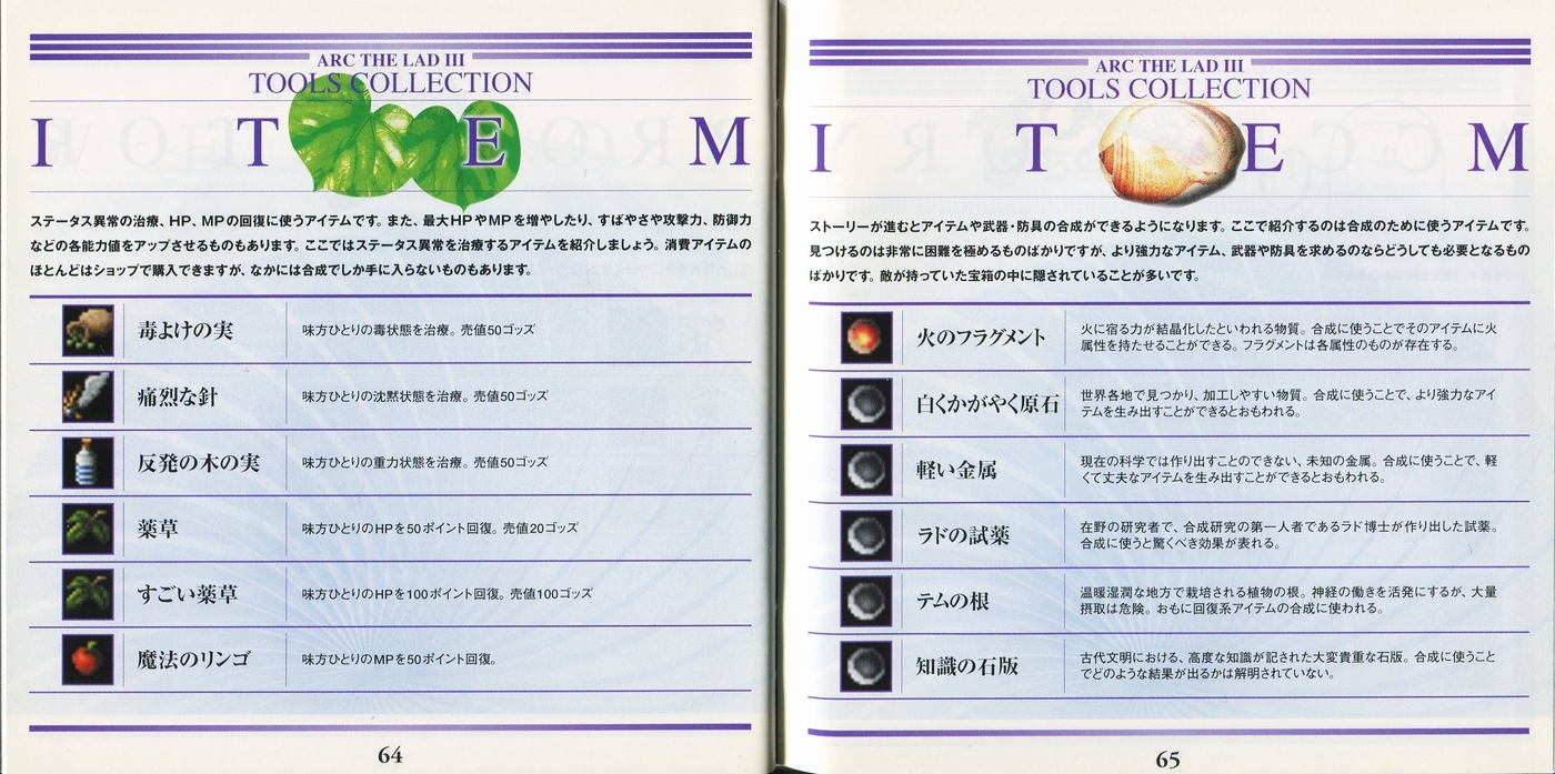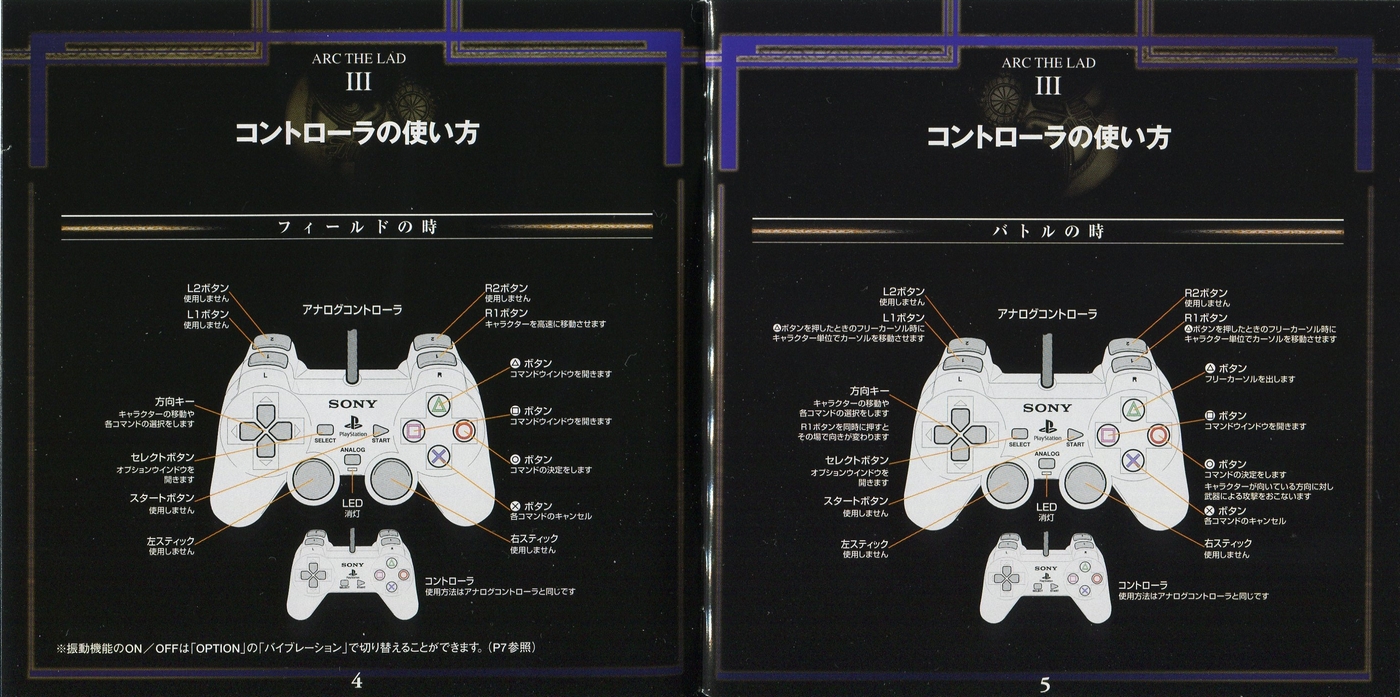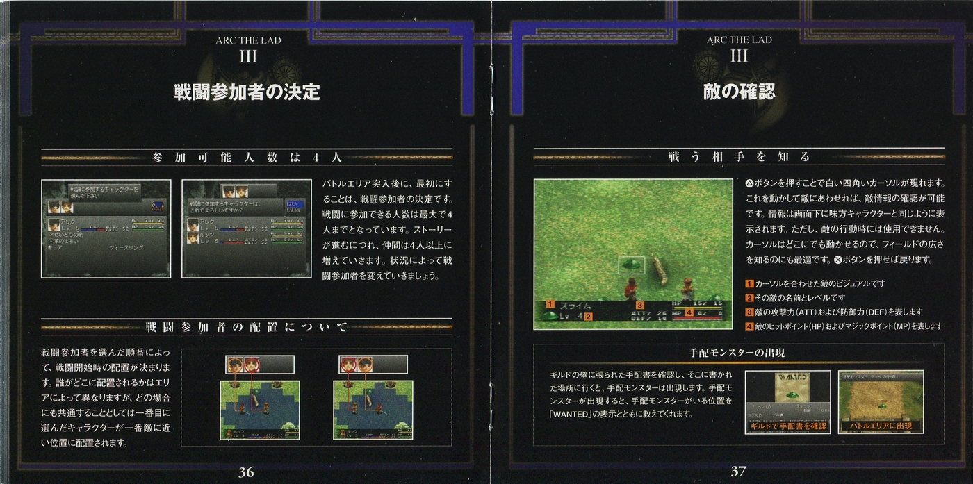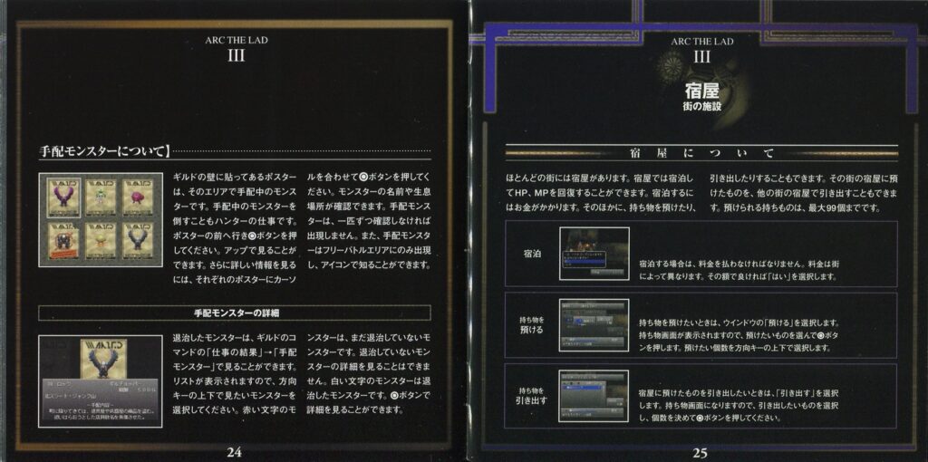 スポンサーリンク アークザラッド3 説明書 2025.11.02 プレイステーション(PS1)ソフトアークザラッド3の説明書です(Arc The Lad3 Instruction Manual)※スマホの画像操作は指2本で行ってください。 目次 説明書画像(日本語)オフィシャルファンクラブ会誌特別号 説明書画像(日本語) オフィシャルファンクラブ会誌特別号