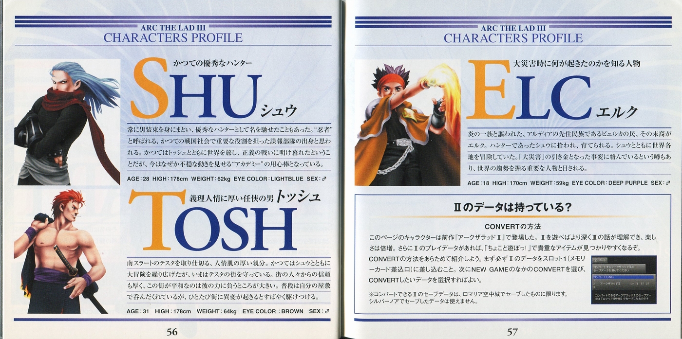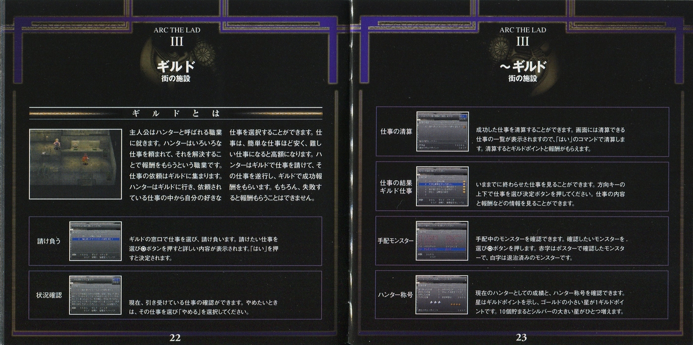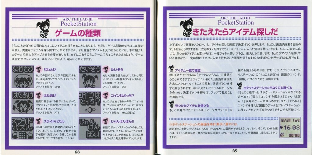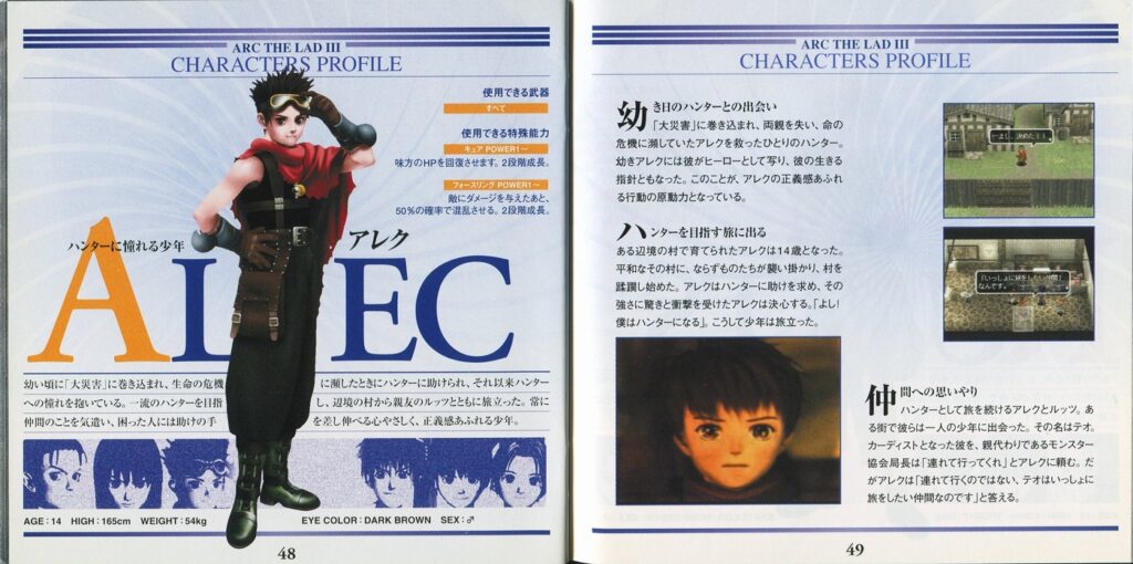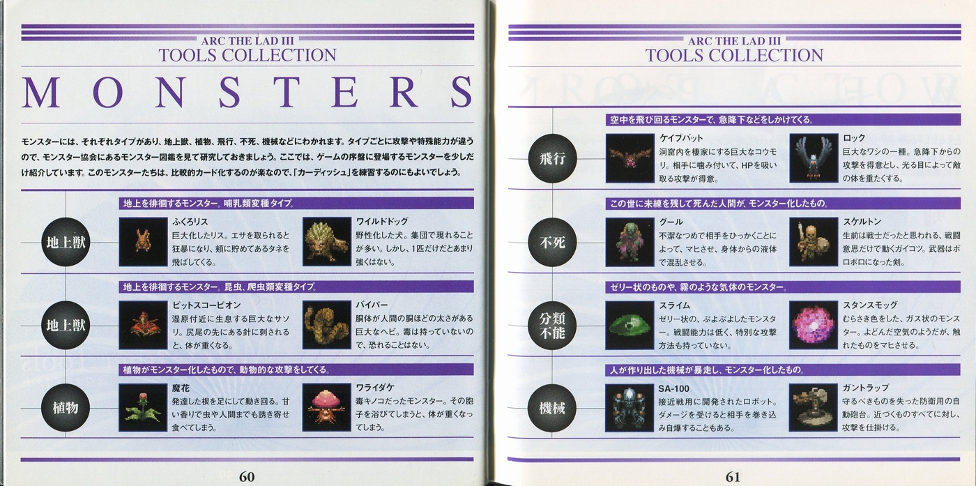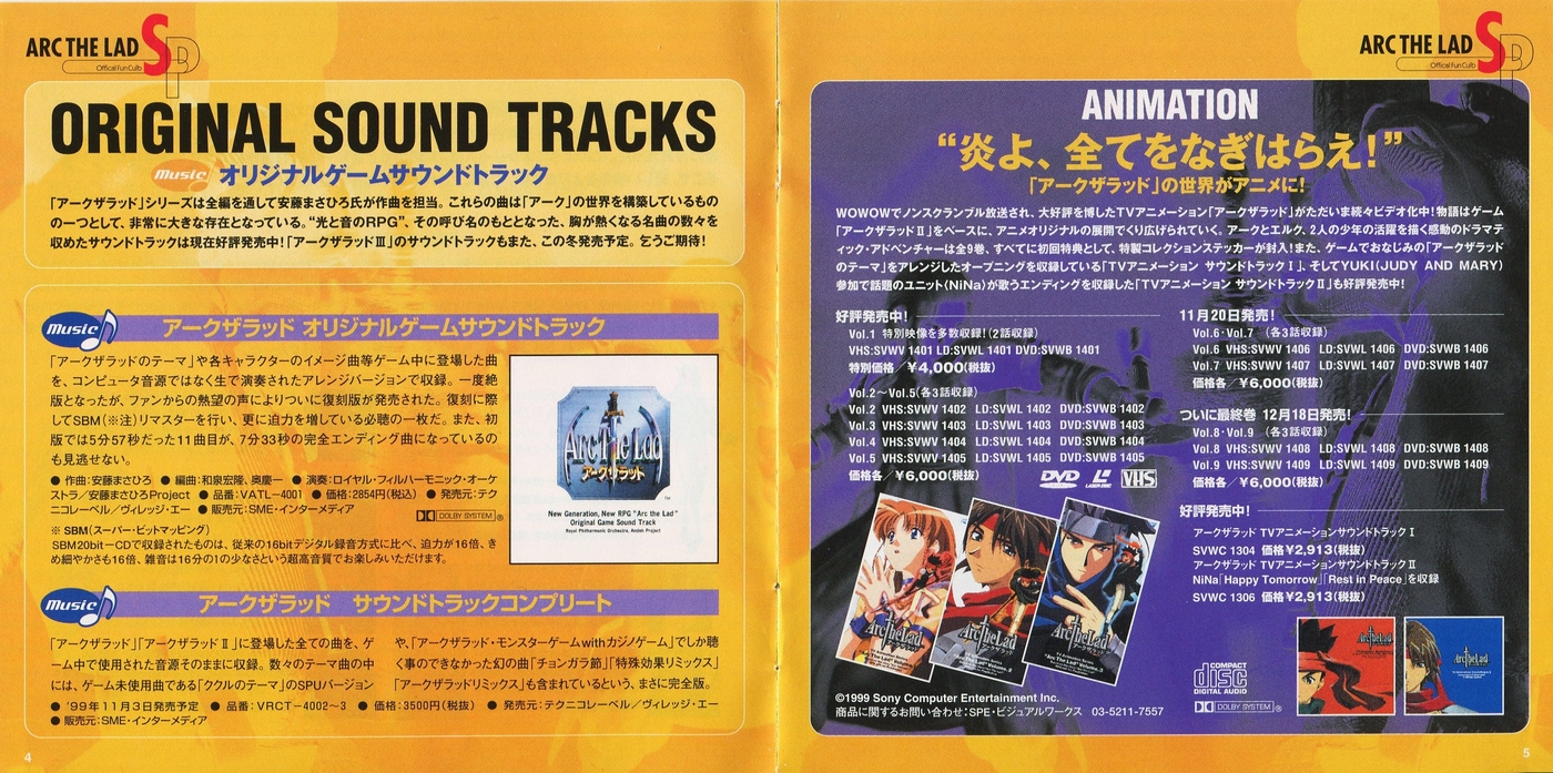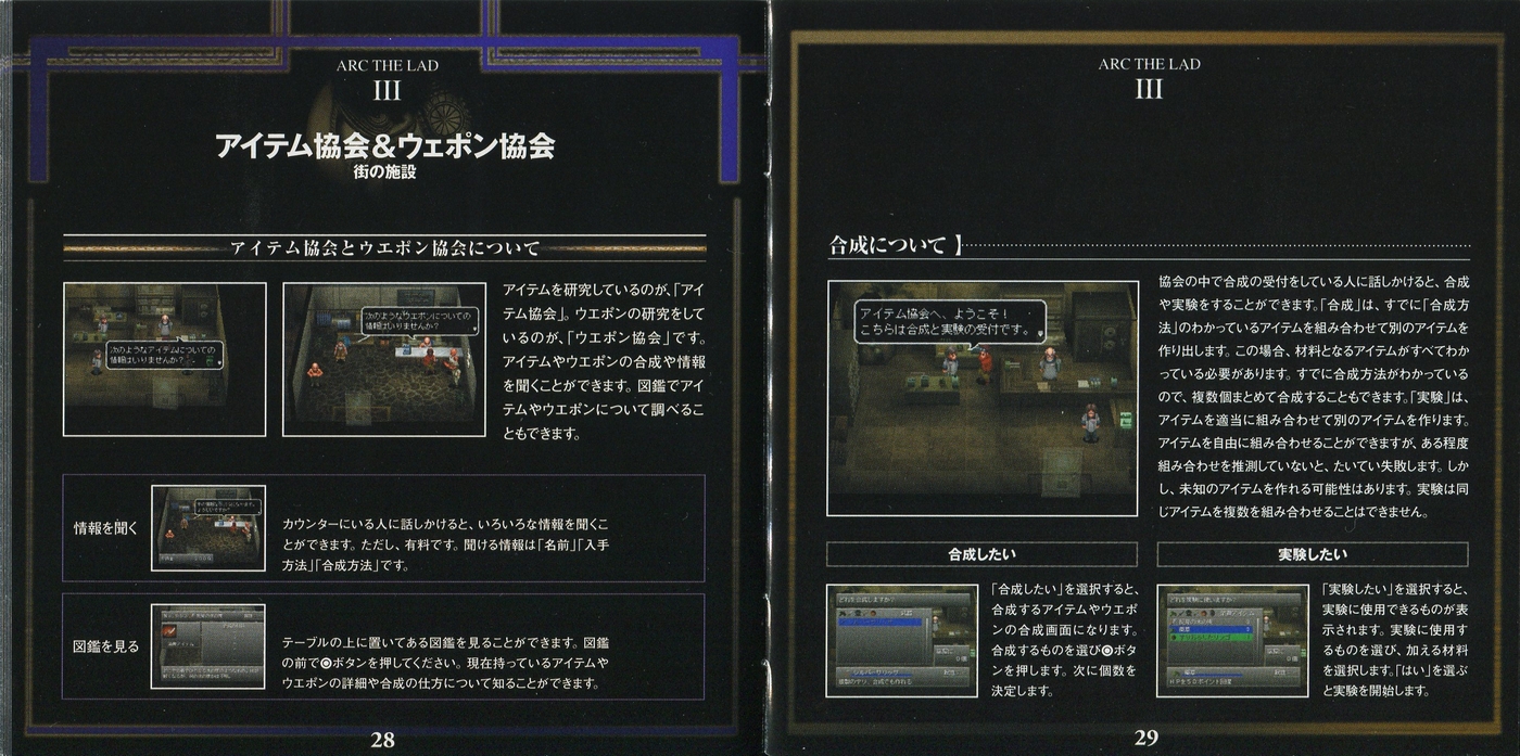 スポンサーリンク アークザラッド3 説明書 2025.11.02 プレイステーション(PS1)ソフトアークザラッド3の説明書です(Arc The Lad3 Instruction Manual)※スマホの画像操作は指2本で行ってください。 目次 説明書画像(日本語)オフィシャルファンクラブ会誌特別号 説明書画像(日本語) オフィシャルファンクラブ会誌特別号