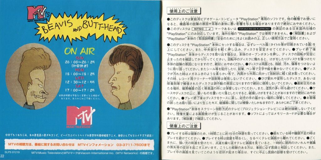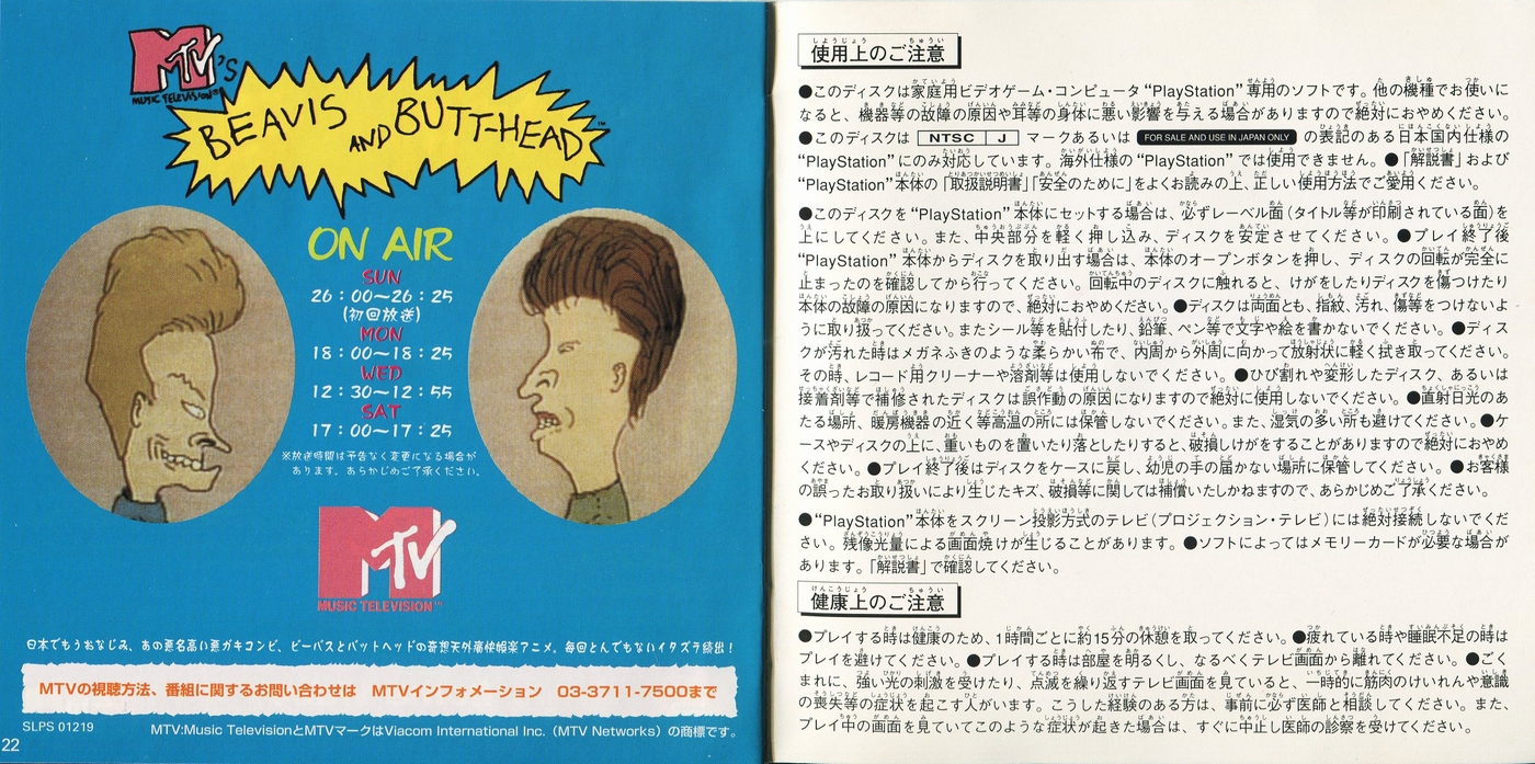 (BEAVIS and BUTT-HEAD Instruction Manual)