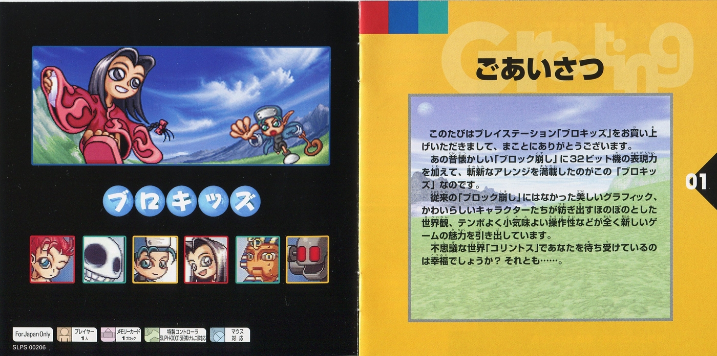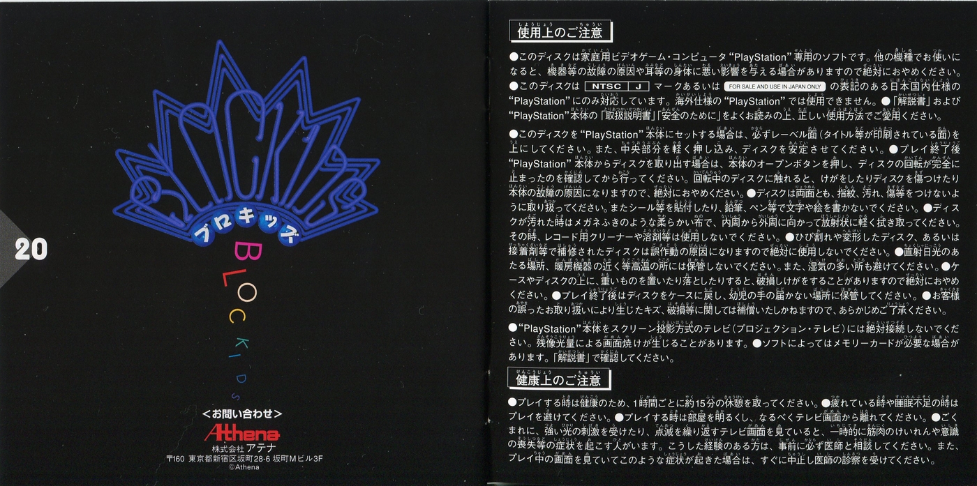 スポンサーリンク ブロキッズ[PS1] 2026.01.14 プレイステーション(PS1)ソフトブロキッズの説明書です(BLOCKIDS Instruction Manual)※スマホの画像操作は指2本で行ってください。 説明書画像(日本語)