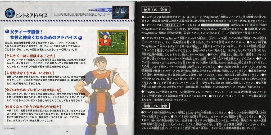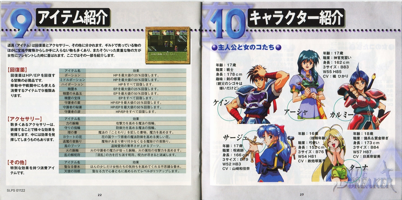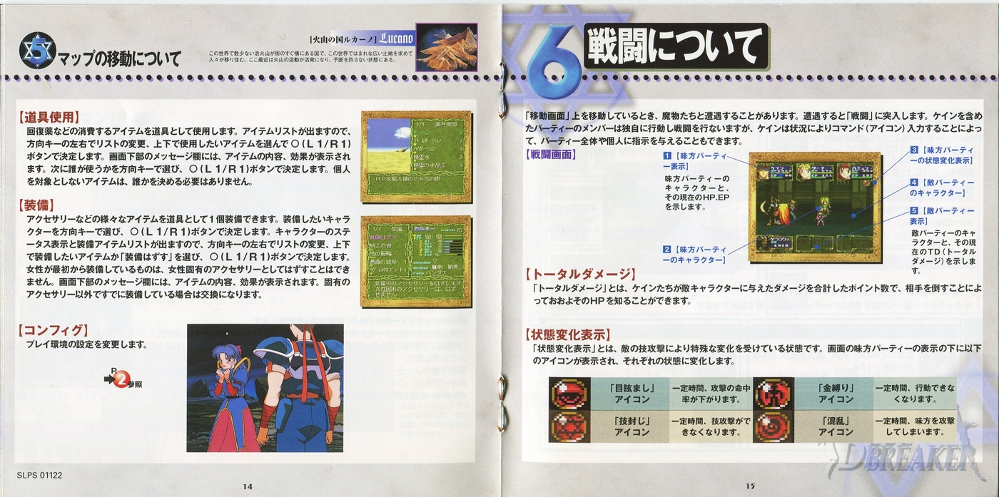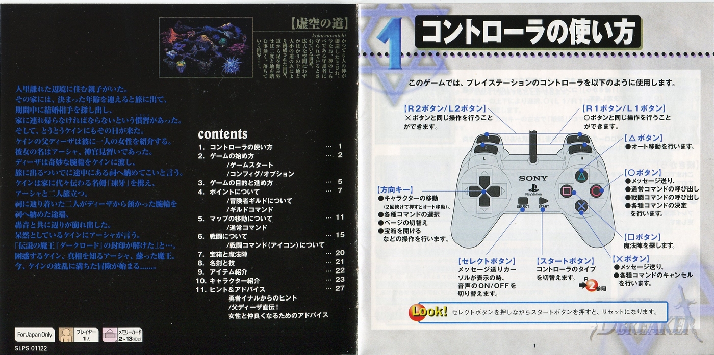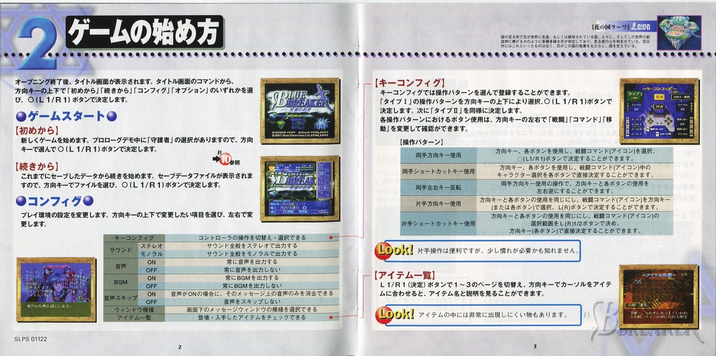 スポンサーリンク ブルーブレイカー ~笑顔の約束~[PS1] 2026.04.04 プレイステーション(PS1)ソフトブルーブレイカー ~笑顔の約束~の説明書です(BLUE BREAKER Instruction Manual)※スマホの画像操作は指2本で行ってください。 説明書画像(日本語)