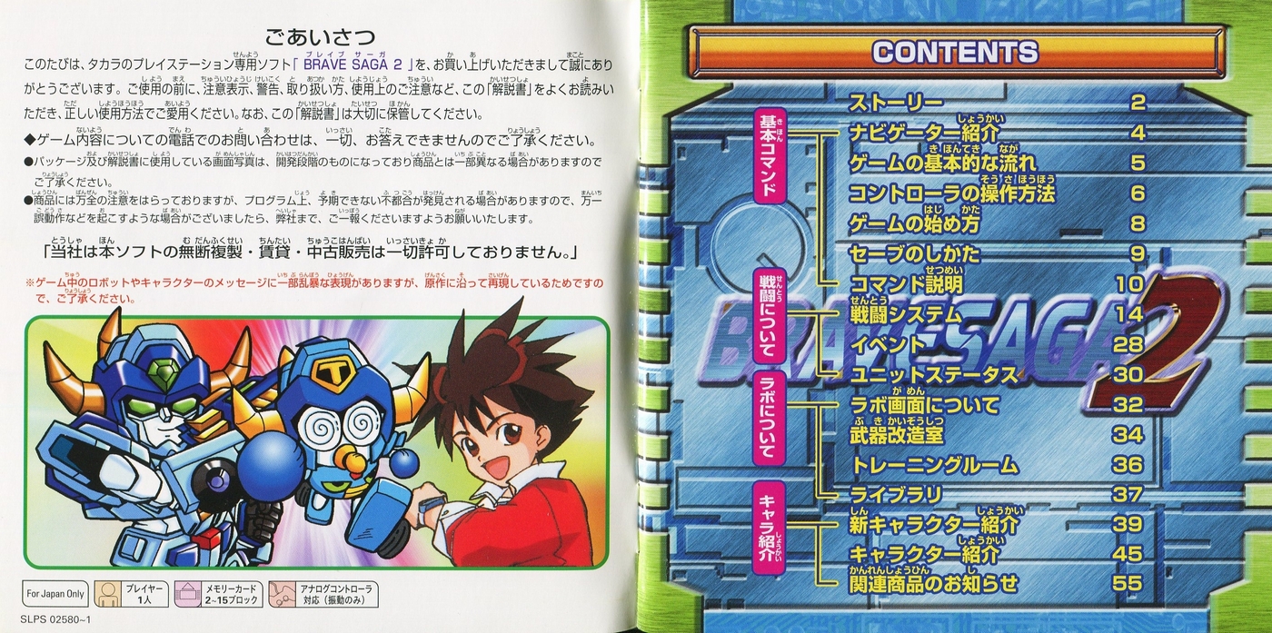 スポンサーリンク ブレイブサーガ2 説明書 2025.10.07 プレイステーション(PS1)ソフトブレイブサーガ2の説明書です(Brave Saga2 Instruction Manual)※スマホの画像操作は指2本で行ってください。 説明書画像(日本語)