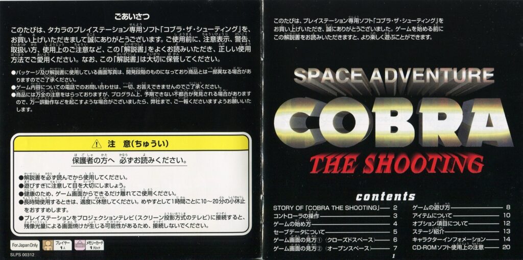 スポンサーリンク コブラ・ザ・シューティング[PS1] 2026.03.04 プレイステーション(PS1)ソフトコブラ・ザ・シューティングの説明書です(COBRA THE SHOOTING Instruction Manual)※スマホの画像操作は指2本で行ってください。 説明書画像(日本語)