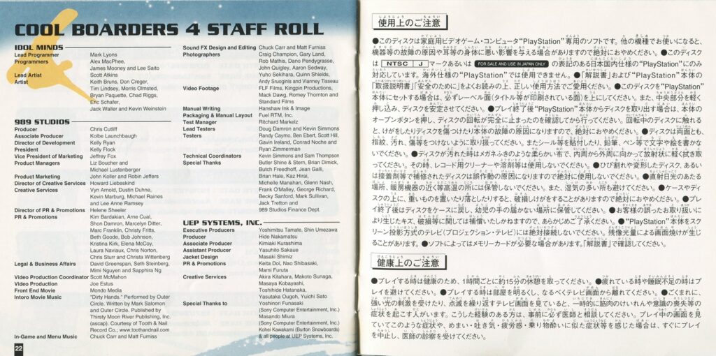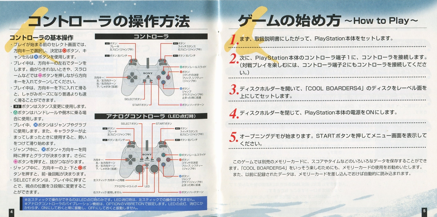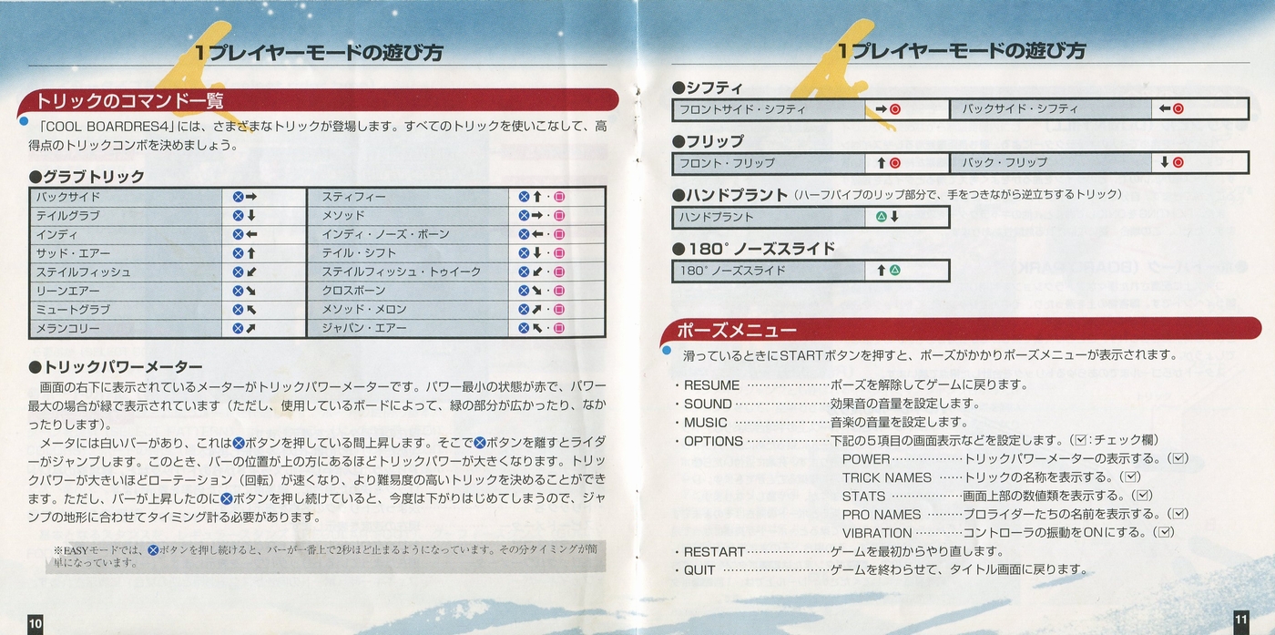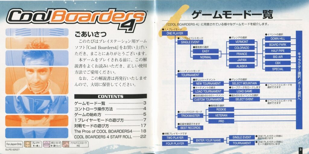 スポンサーリンク クールボーダーズ4 説明書 2025.12.14 プレイステーション(PS1)ソフトクールボーダーズ4の説明書です(COOL BOARDERS4 Instruction Manual)※スマホの画像操作は指2本で行ってください。 説明書画像(日本語)