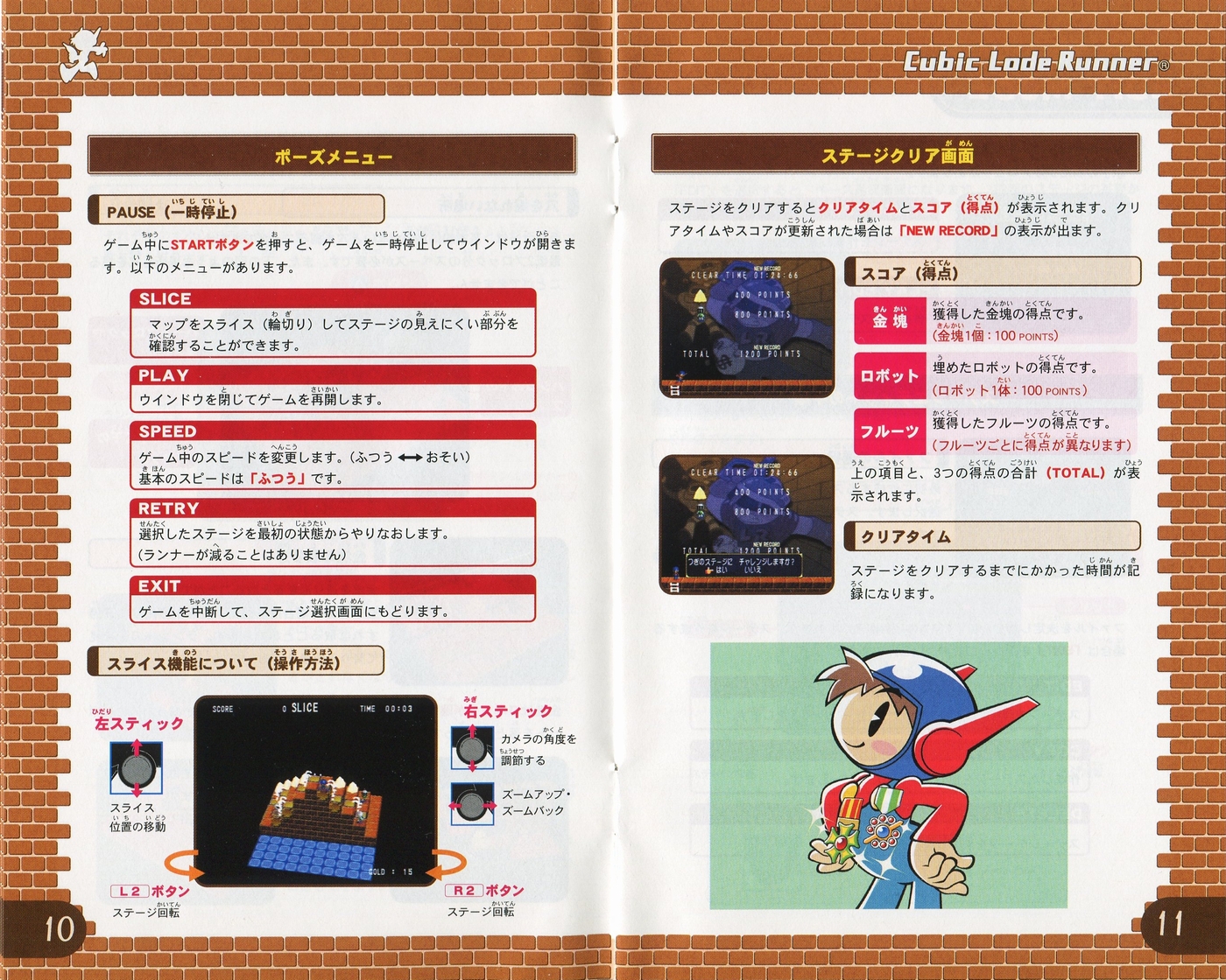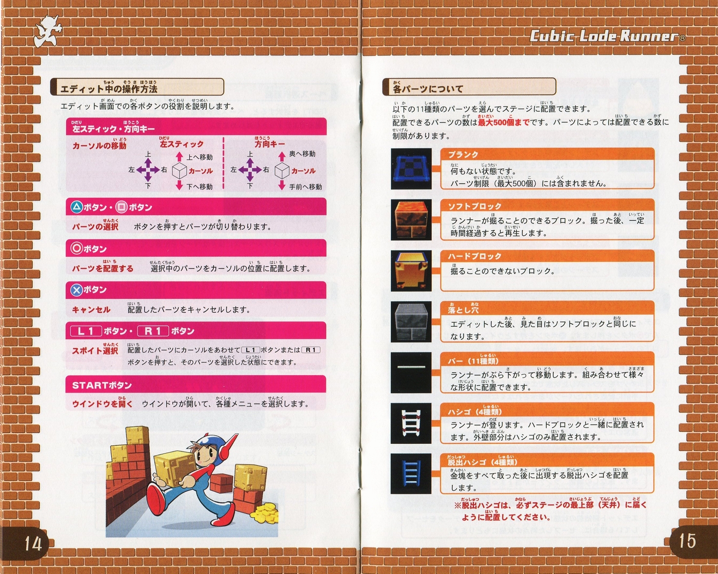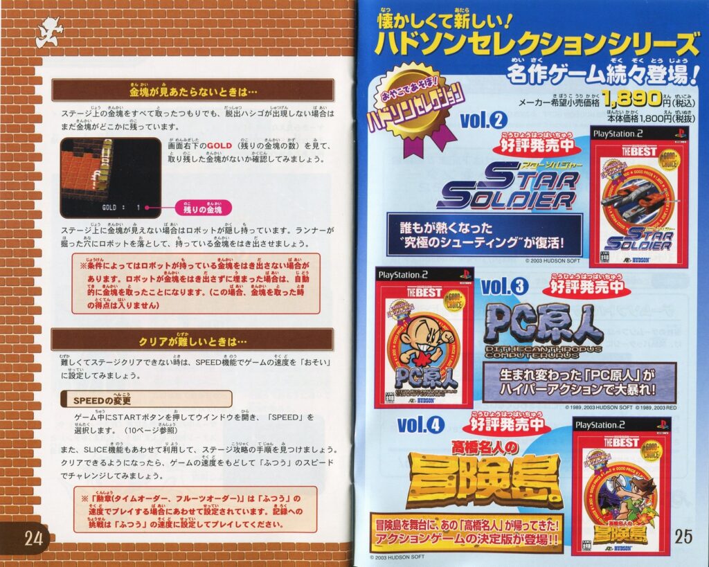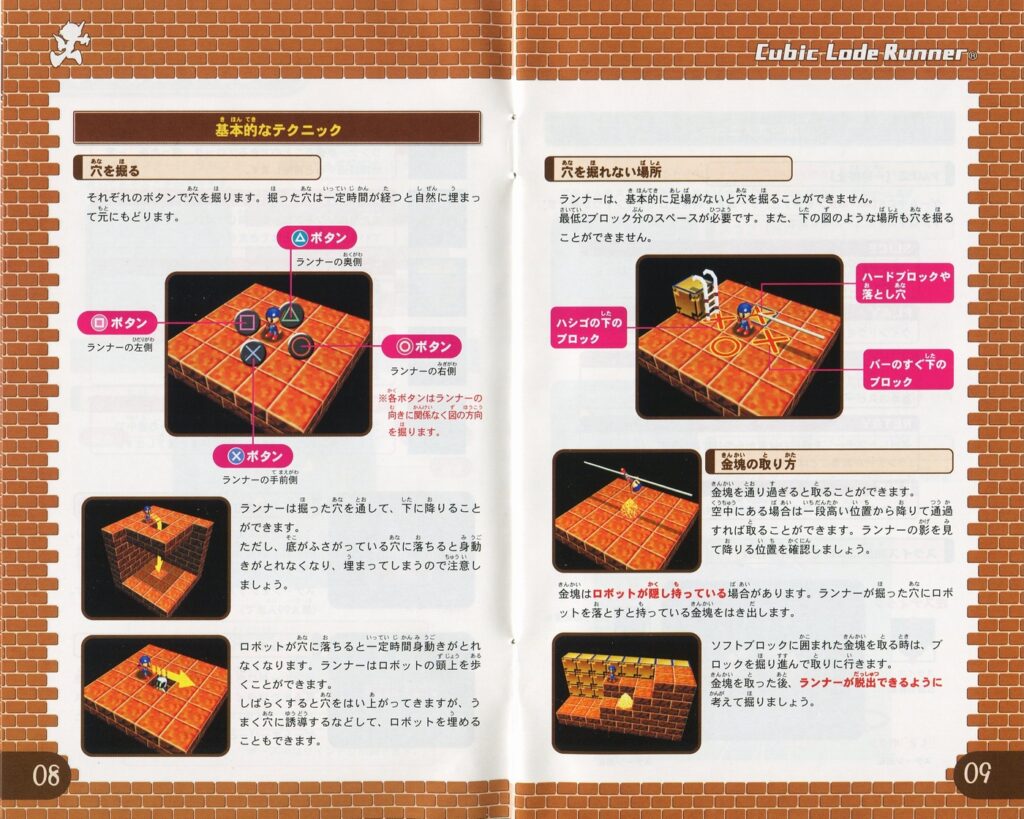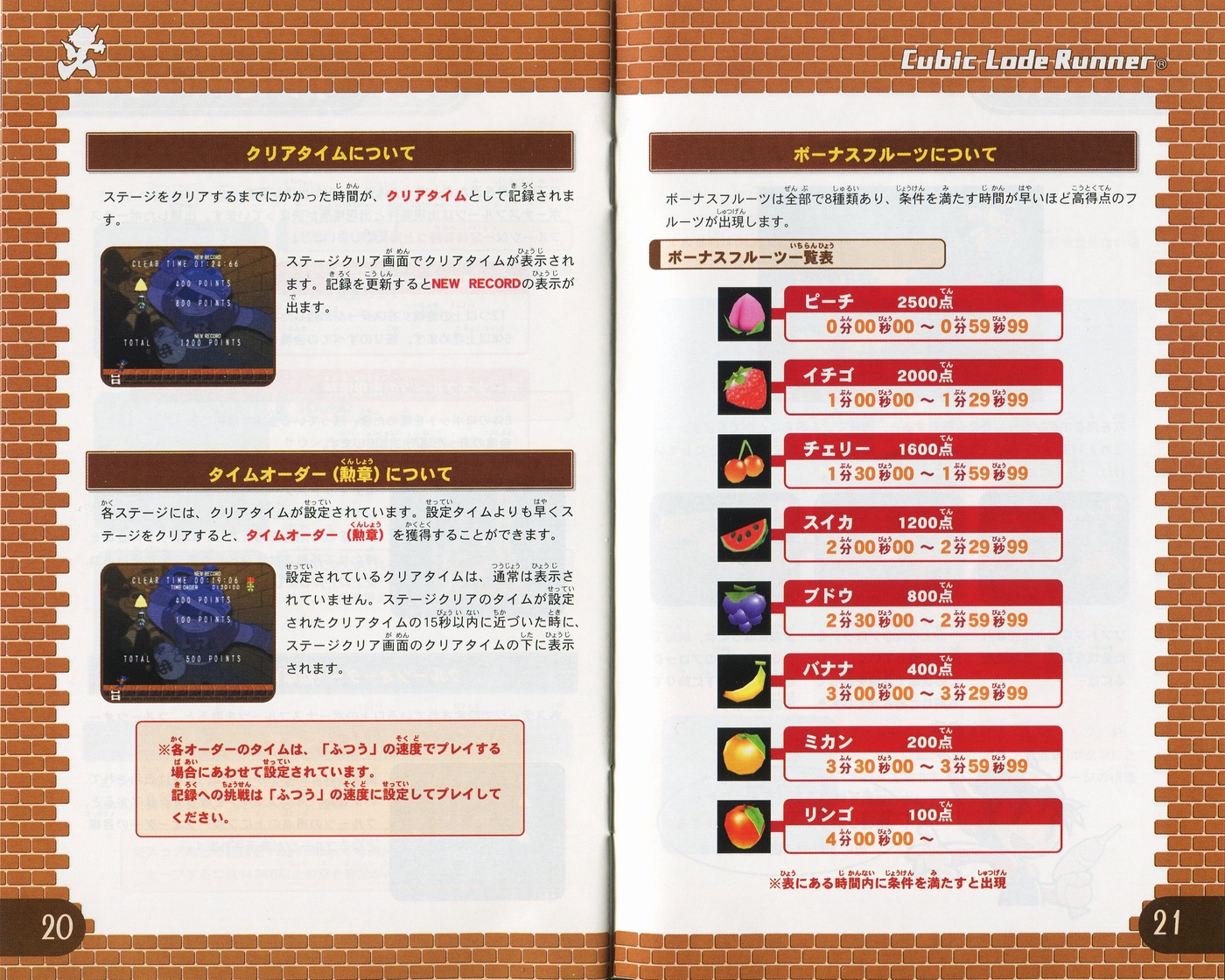 スポンサーリンク キュービックロードランナー[PS2] 2026.04.12 プレイステーション2(PS2)ソフトキュービックロードランナーの説明書です(Cubic Lode Runner Instruction Manual)※スマホの画像操作は指2本で行ってください。 説明書画像(日本語)