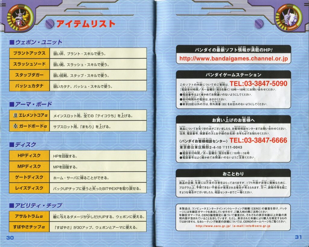 デジモンワールド Xの説明書です