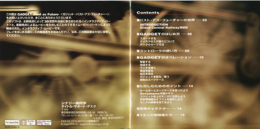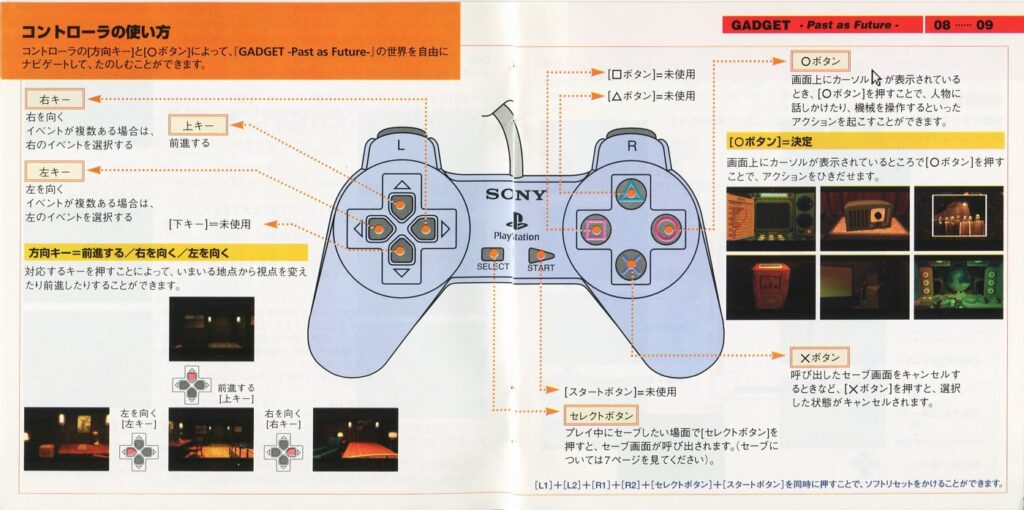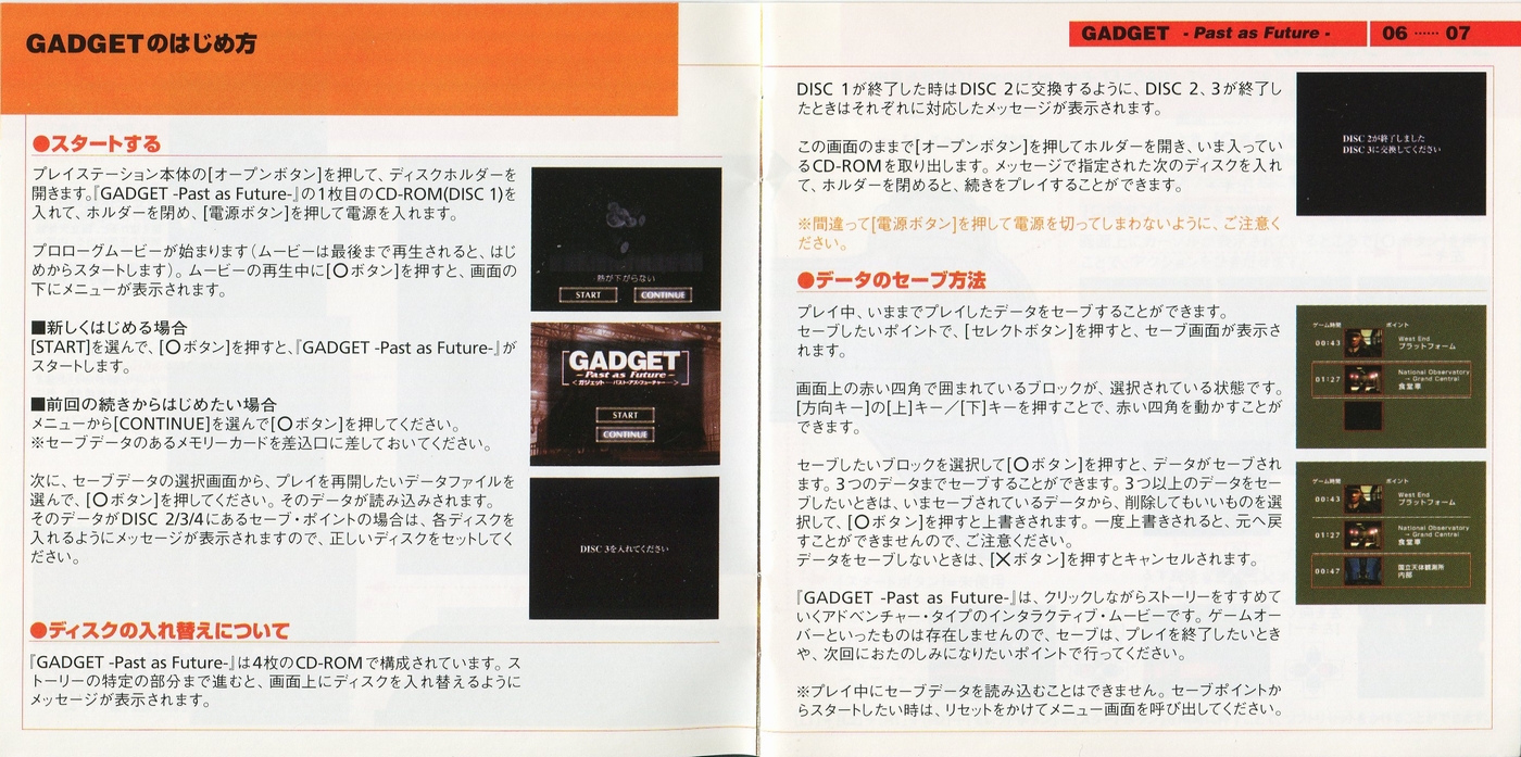 スポンサーリンク ガジェット[PS1] 2026.03.05 プレイステーション(PS1)ソフトガジェットの説明書です(GADGET Instruction Manual)※スマホの画像操作は指2本で行ってください。 説明書画像(日本語)