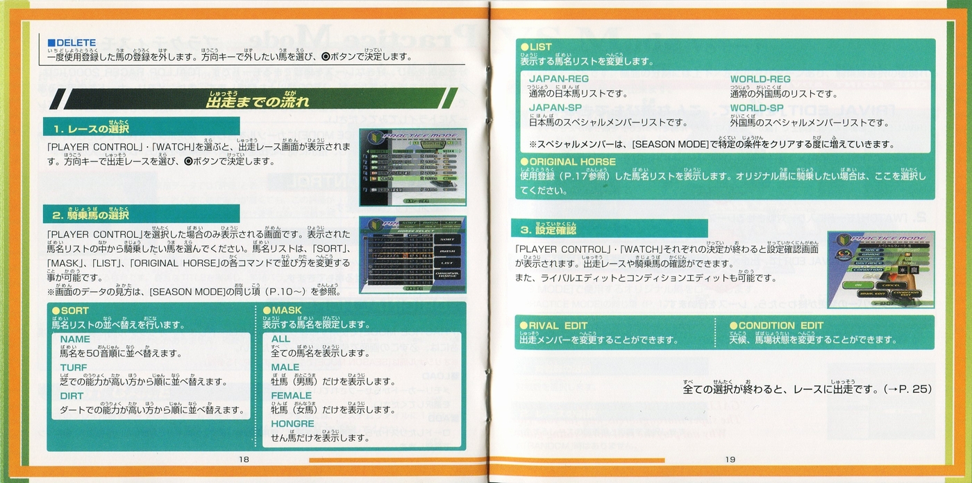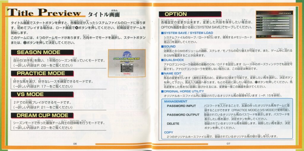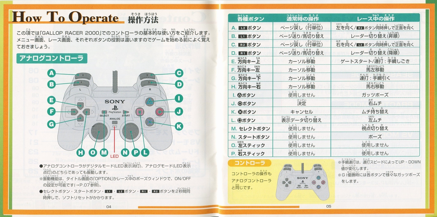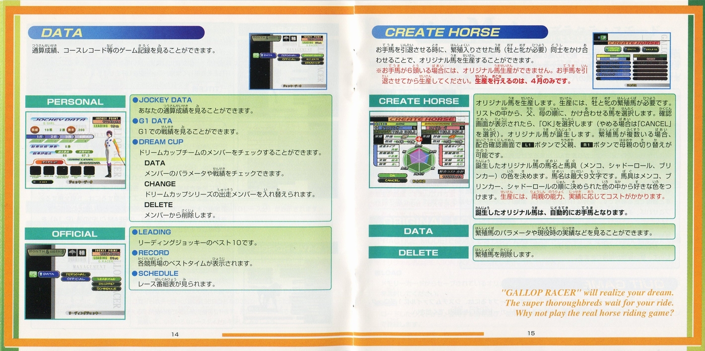 スポンサーリンク ギャロップレーサー2000 説明書 2025.12.14 プレイステーション(PS1)ソフトギャロップレーサー2000の説明書です(Gallop Racer2000 Instruction Manual)※スマホの画像操作は指2本で行ってください。 説明書画像(日本語)