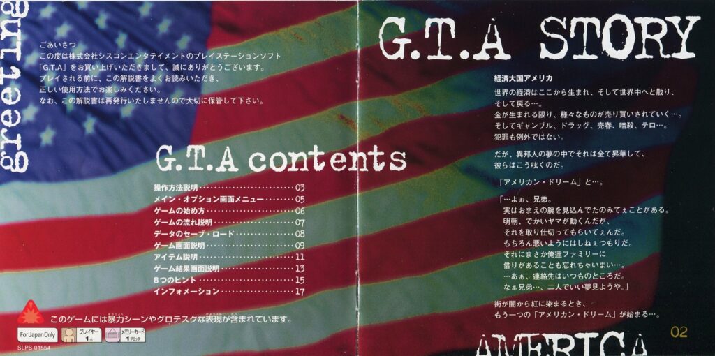 スポンサーリンク G.T.A グランドセフトオート[PS1] 2026.02.23 プレイステーション(PS1)ソフトG.T.A グランドセフトオートの説明書です(G.T.A Grand Theft Auto Instruction Manual)※スマホの画像操作は指2本で行ってください。 説明書画像(日本語)