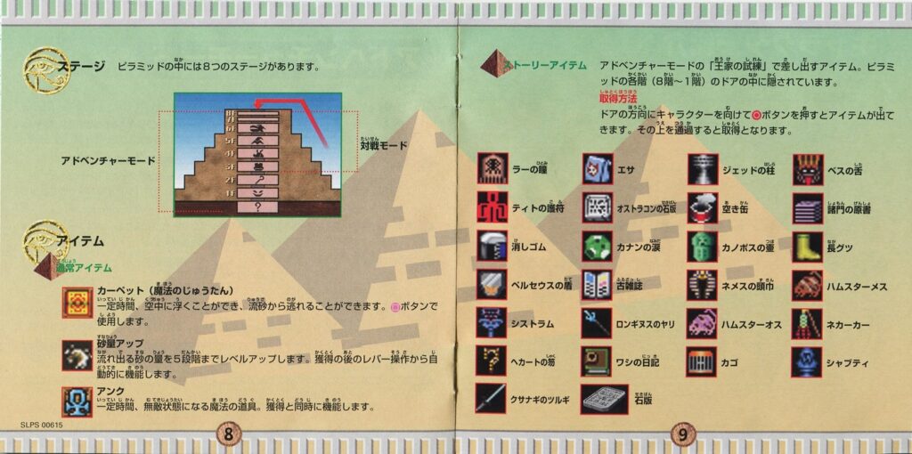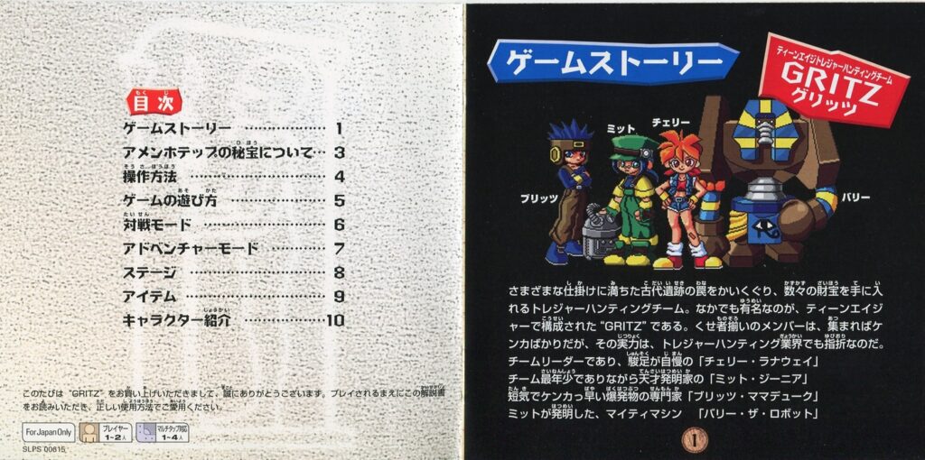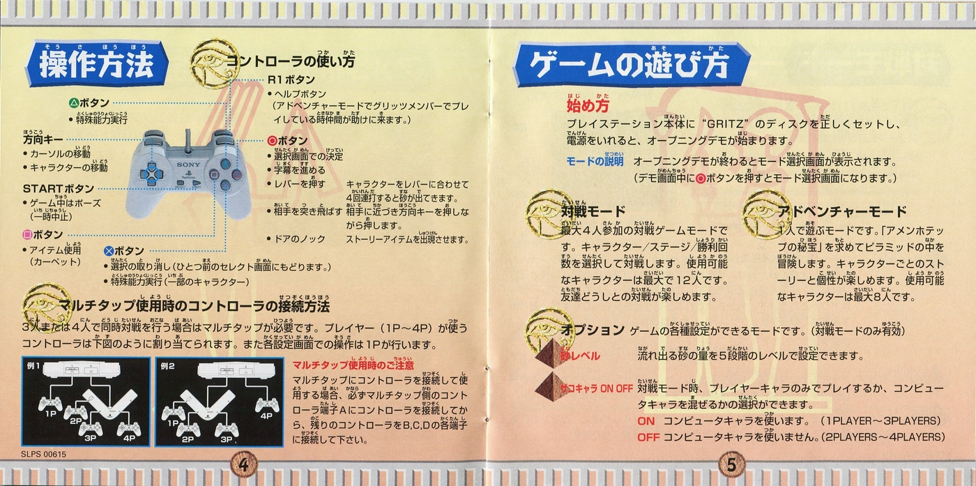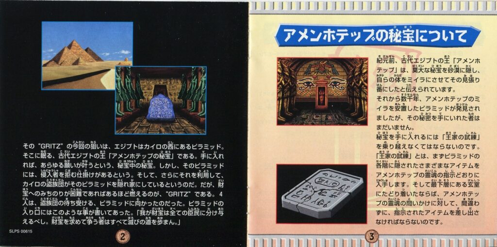 スポンサーリンク グリッツ[PS1] 2026.04.14 プレイステーション(PS1)ソフトグリッツ ザ ピラミッドアドベンチャーの説明書です(GRITZ Instruction Manual)※スマホの画像操作は指2本で行ってください。 説明書画像(日本語)