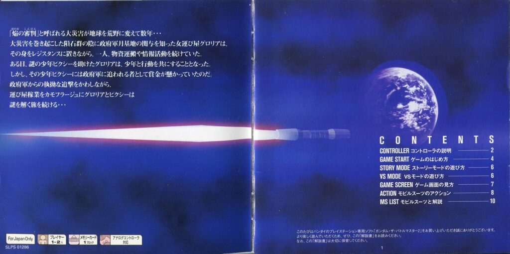 スポンサーリンク ガンダム・ザ・バトルマスター2 説明書 2025.12.03 プレイステーション(PS1)ソフトガンダム・ザ・バトルマスター2の説明書です(GUNDAM THE BATTLE MASTER2 Instruction Manual)※スマホの画像操作は指2本で行ってください。 説明書画像(日本語)