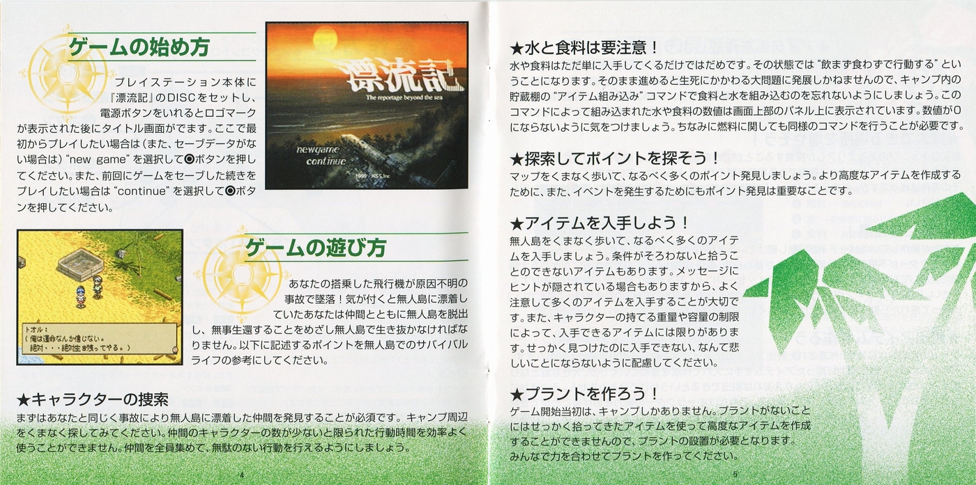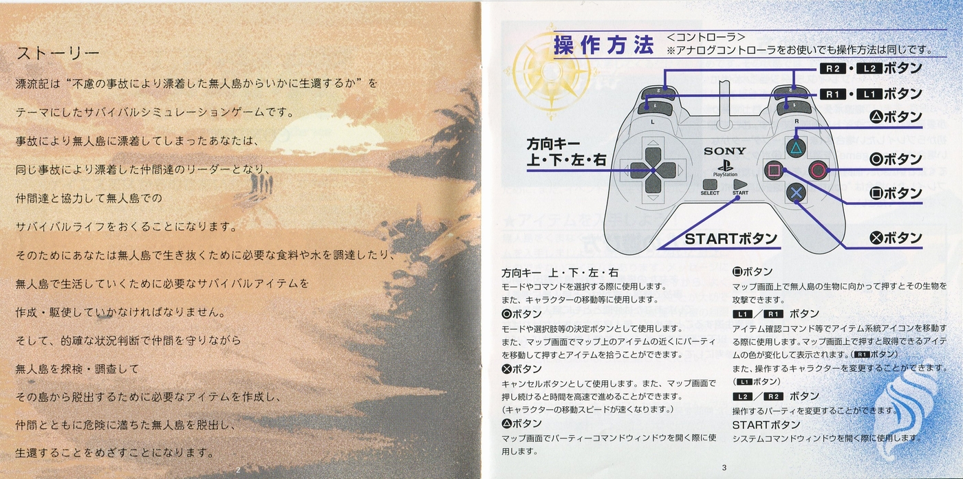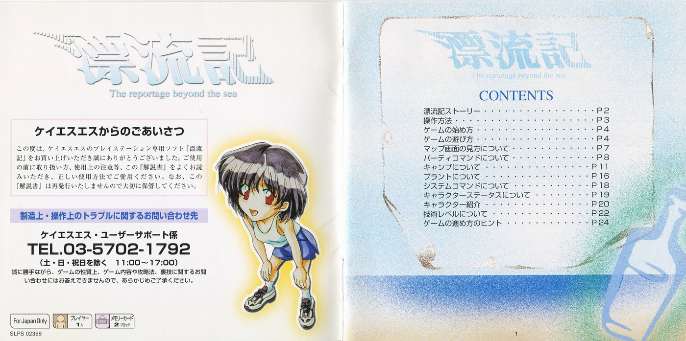 スポンサーリンク 漂流記 説明書 2025.12.31 プレイステーション(PS1)ソフト漂流記の説明書です(Hyouryuuki Instruction Manual)※スマホの画像操作は指2本で行ってください。 説明書画像(日本語)