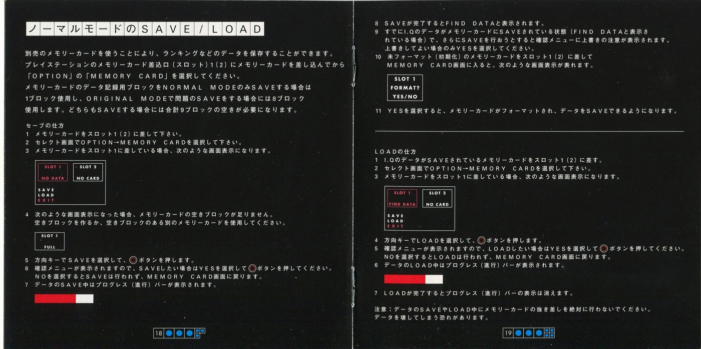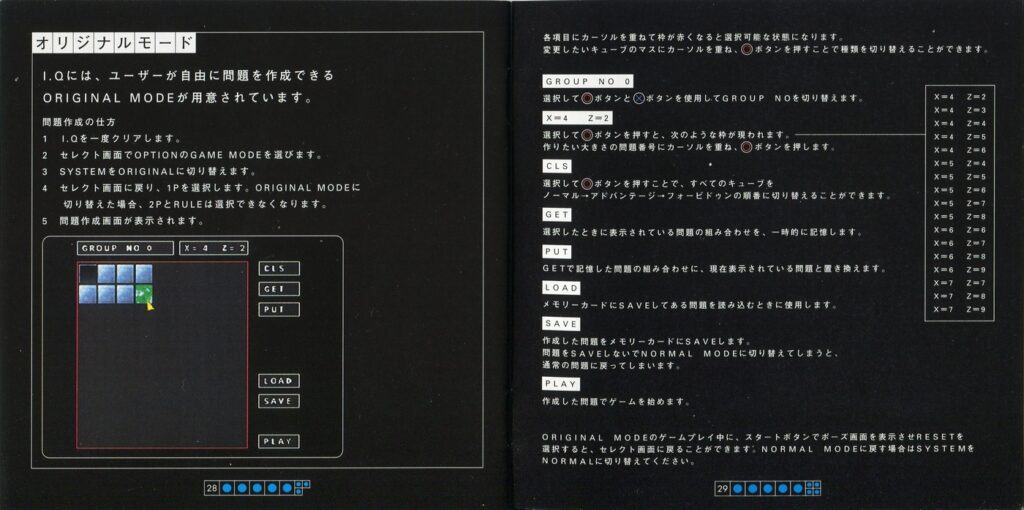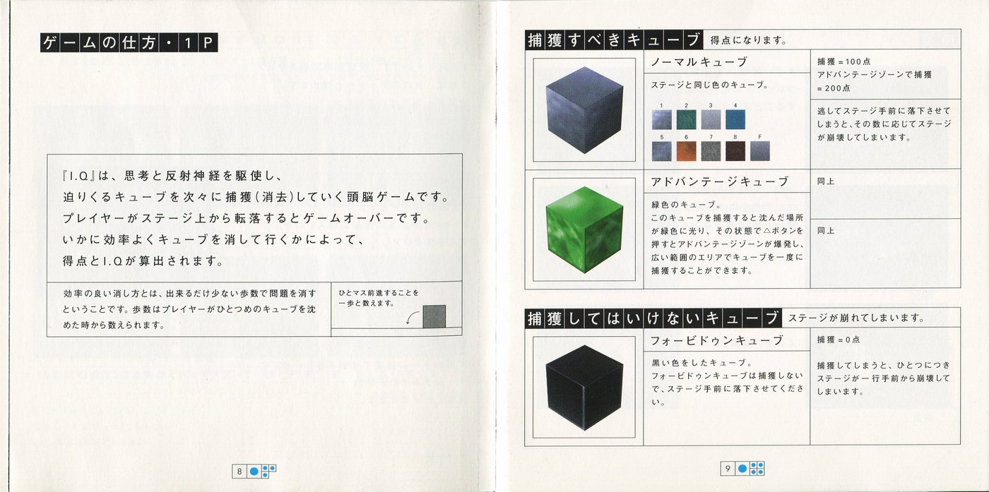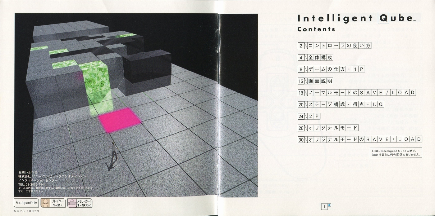 スポンサーリンク I.Q インテリジェント キューブ 説明書 2025.12.23 プレイステーション(PS1)ソフトI.Q インテリジェント キューブの説明書です(I.Q Intelligent Qube Instruction Manual)※スマホの画像操作は指2本で行ってください。 説明書画像(日本語)