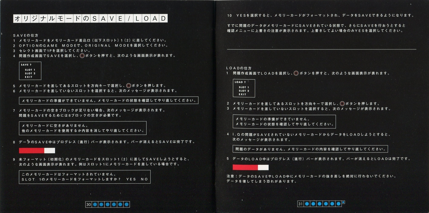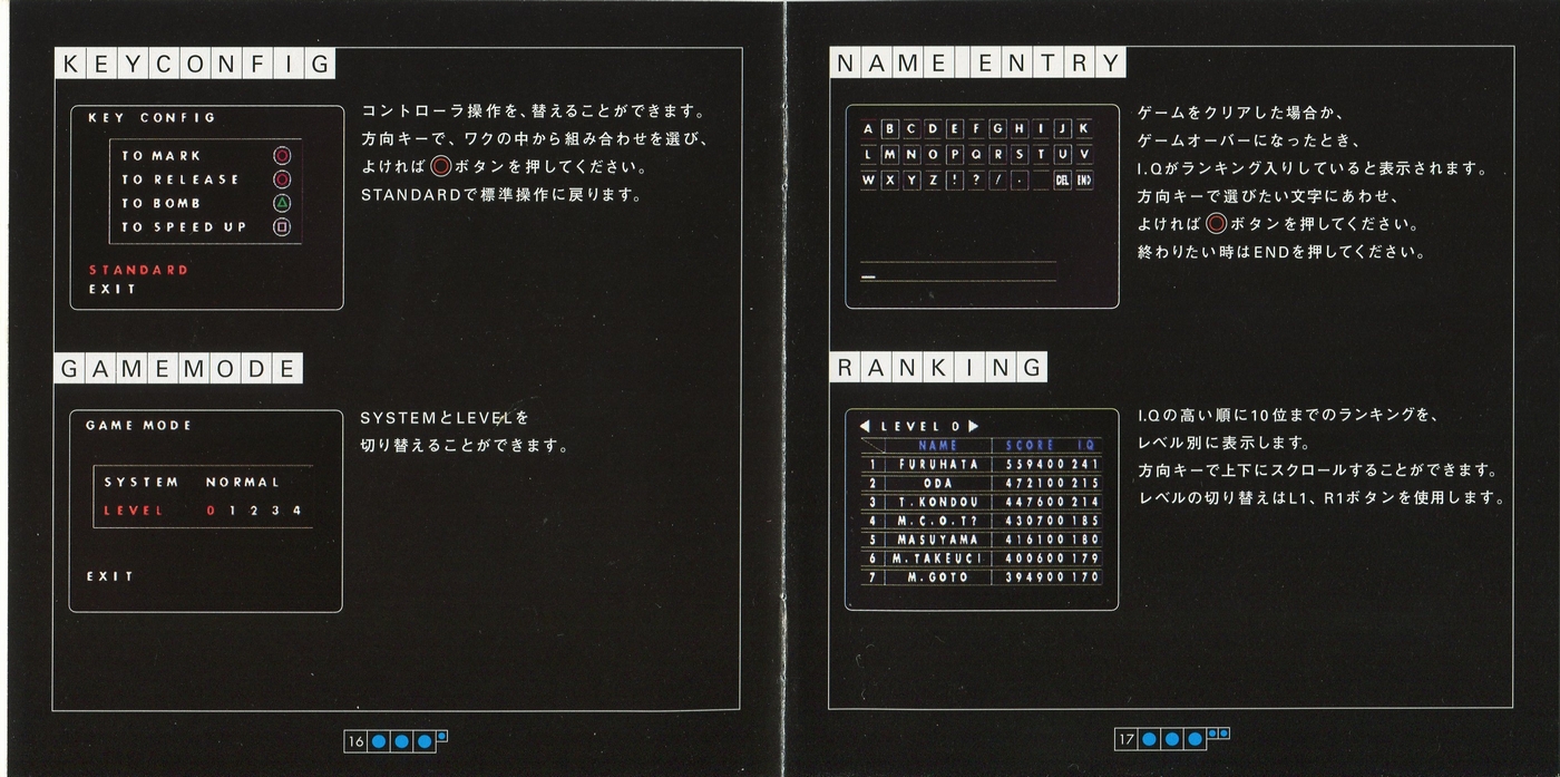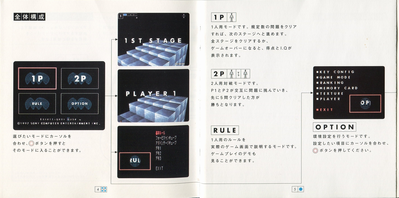 スポンサーリンク I.Q インテリジェント キューブ 説明書 2025.12.23 プレイステーション(PS1)ソフトI.Q インテリジェント キューブの説明書です(I.Q Intelligent Qube Instruction Manual)※スマホの画像操作は指2本で行ってください。 説明書画像(日本語)