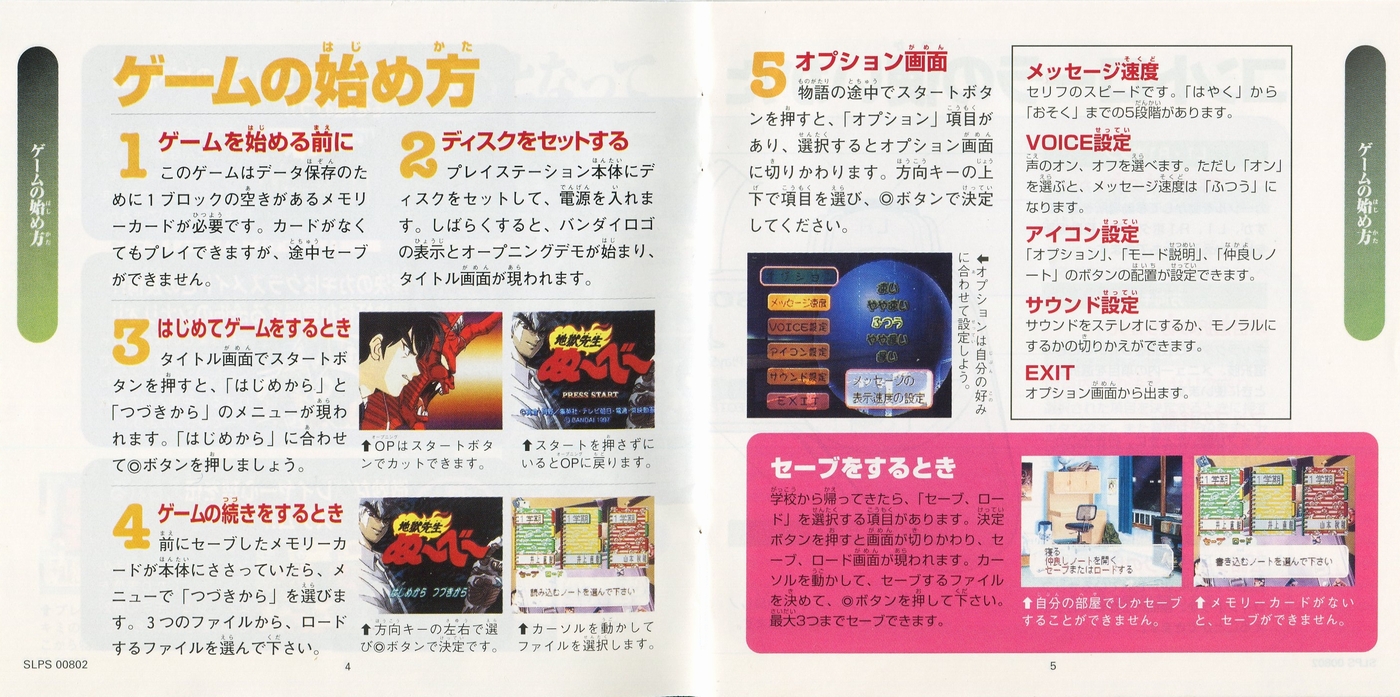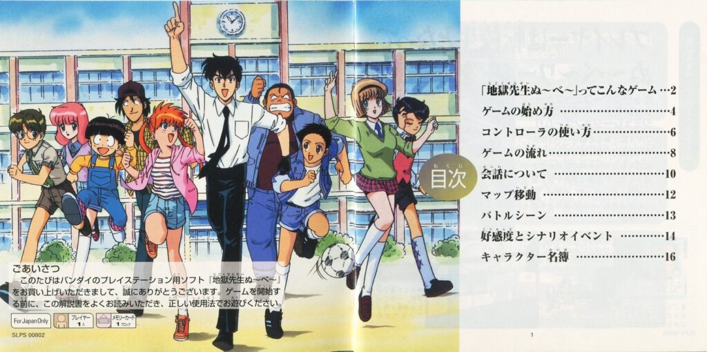 スポンサーリンク 地獄先生ぬ~べ~ 説明書 2025.11.01 プレイステーション(PS1)ソフト地獄先生ぬーべーの説明書です(Jigoku Sensei NUBE Instruction Manual)※スマホの画像操作は指2本で行ってください。 説明書画像(日本語)