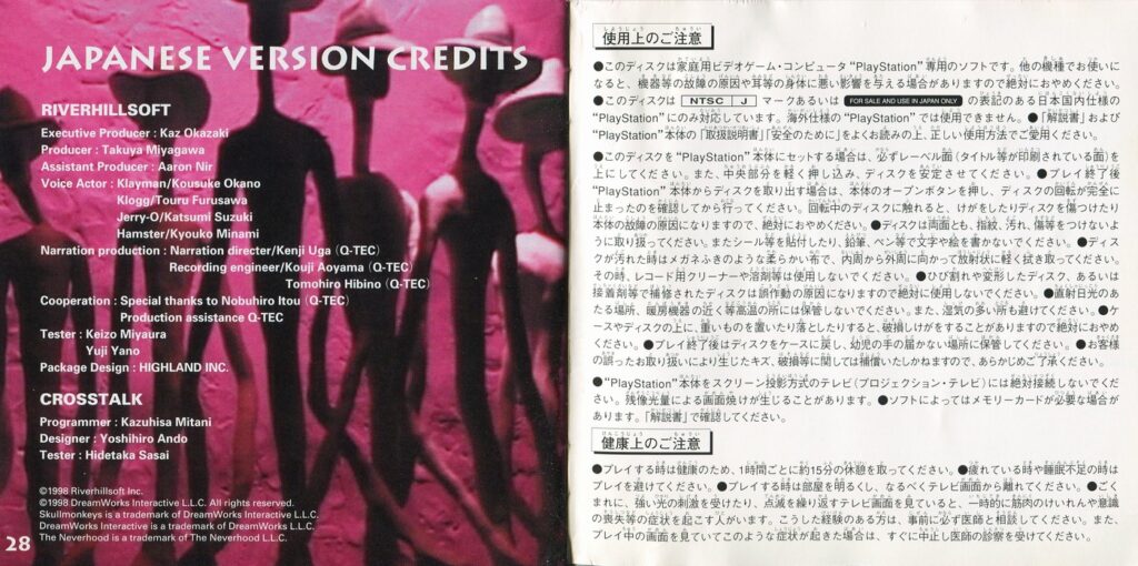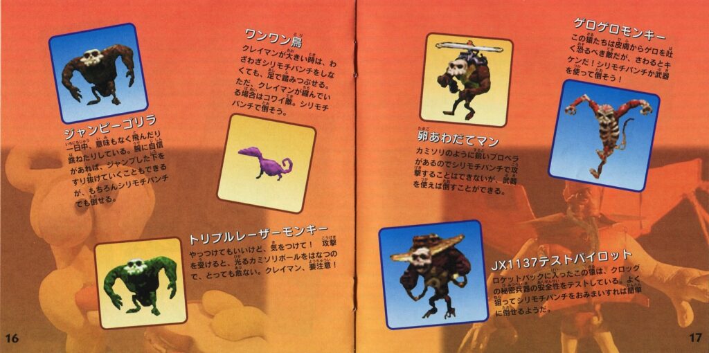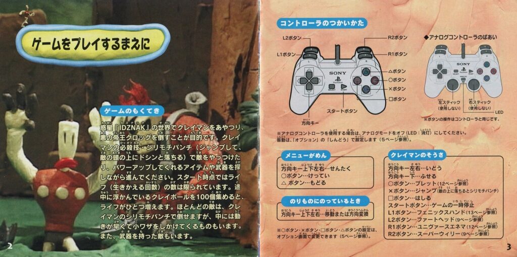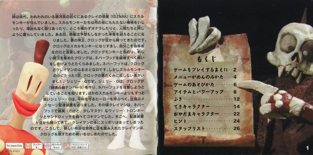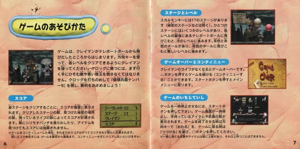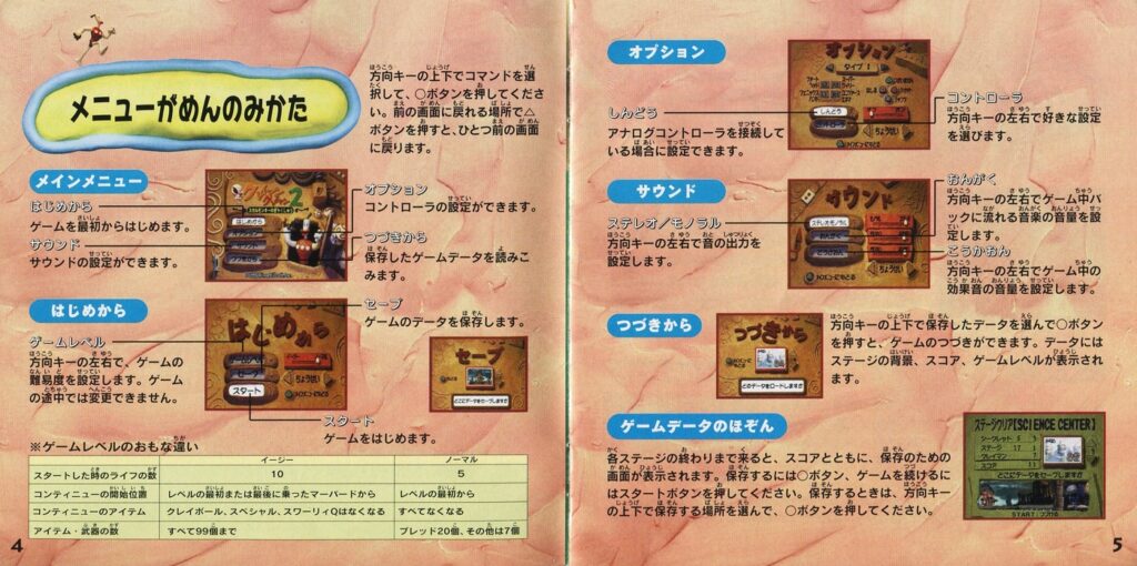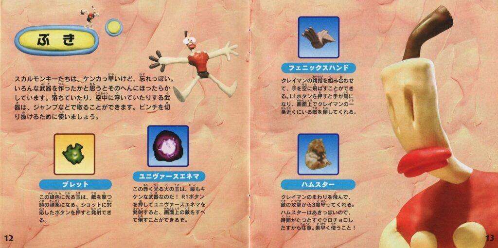 スポンサーリンク クレイマン・クレイマン2 説明書 2025.10.12 プレイステーション(PS1)ソフトクレイマンクレイマン2 スカルモンキーのぎゃくしゅうの説明書です(Klaymen Klaymen2 Instruction Manual)※スマホの画像操作は指2本で行ってください。 説明書画像(日本語)