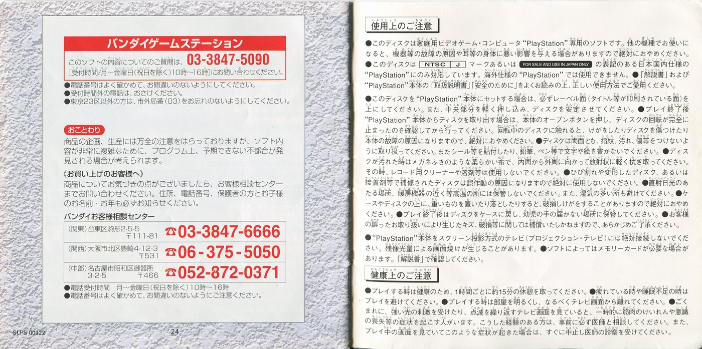 スポンサーリンク こちら葛飾区亀有公園前派出所 説明書 2025.11.14 プレイステーション(PS1)ソフトこちら葛飾区亀有公園前派出所 ハイテクビル侵攻阻止作戦!の巻の説明書です(Kochira Katsushikaku Kameari Kouenmae Hashutsujo Instruction Manual)※スマホの画像操作は指2本で行ってください。 説明書画像(日本語)