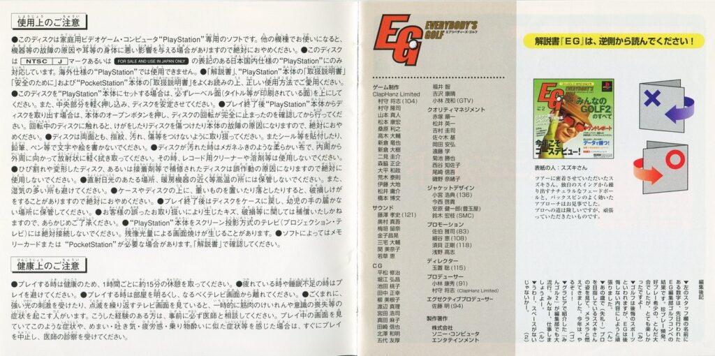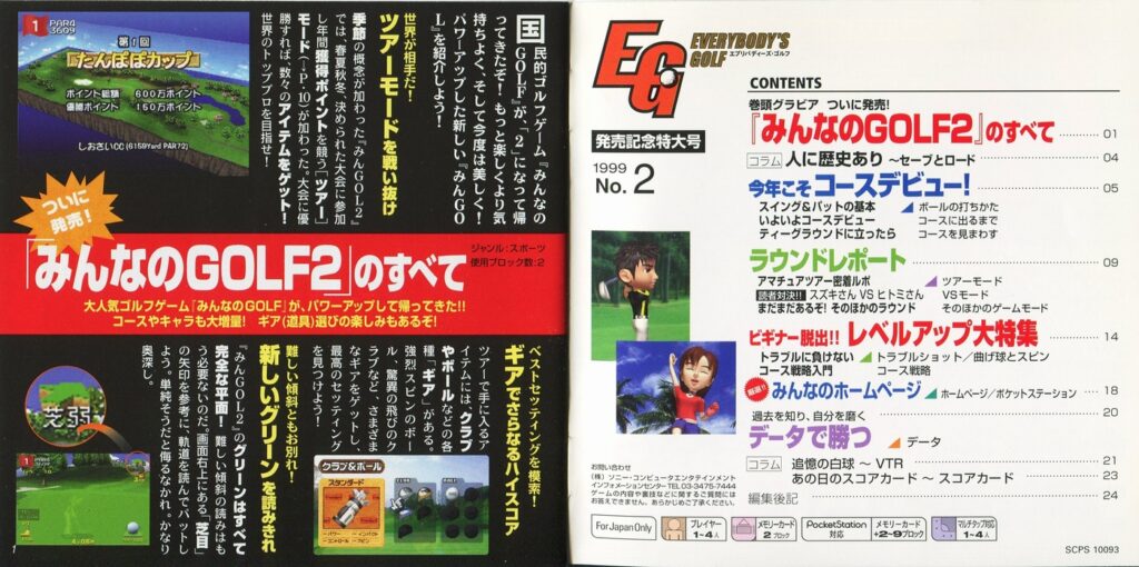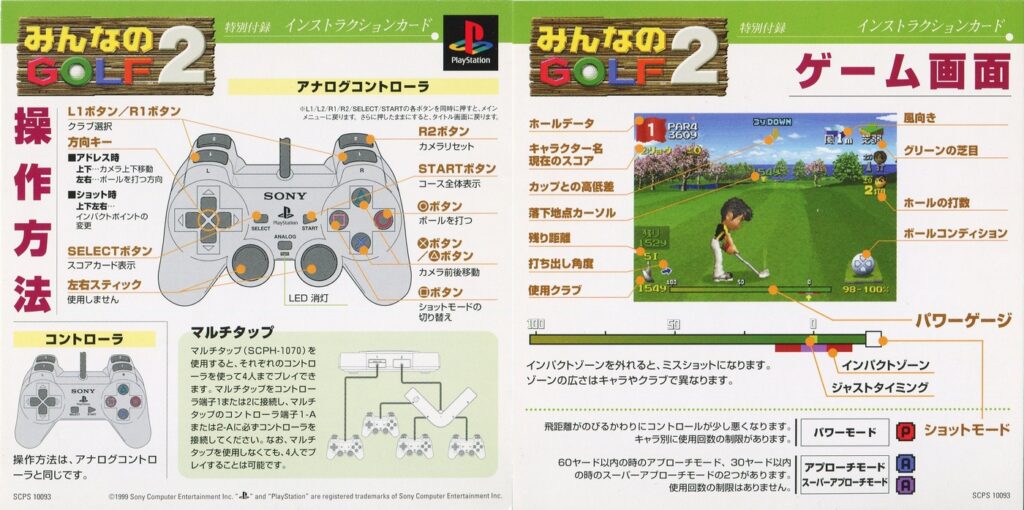 スポンサーリンク みんなのゴルフ2 説明書 2025.09.27 プレイステーション(PS1)ソフトみんなのゴルフ2の説明書です(Minna no GOLF2 Instruction Manual)※スマホの画像操作は指2本で行ってください。 目次 インストラクションカード(日本語)説明書画像(日本語) インストラクションカード(日本語) 説明書画像(日本語) ←←←右から左に読みます←←←