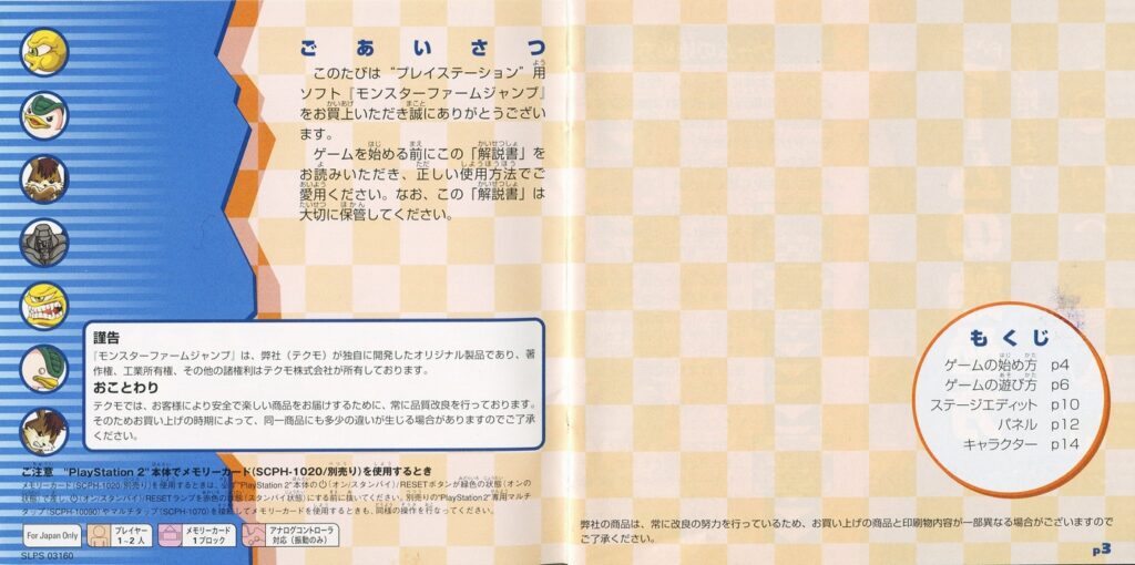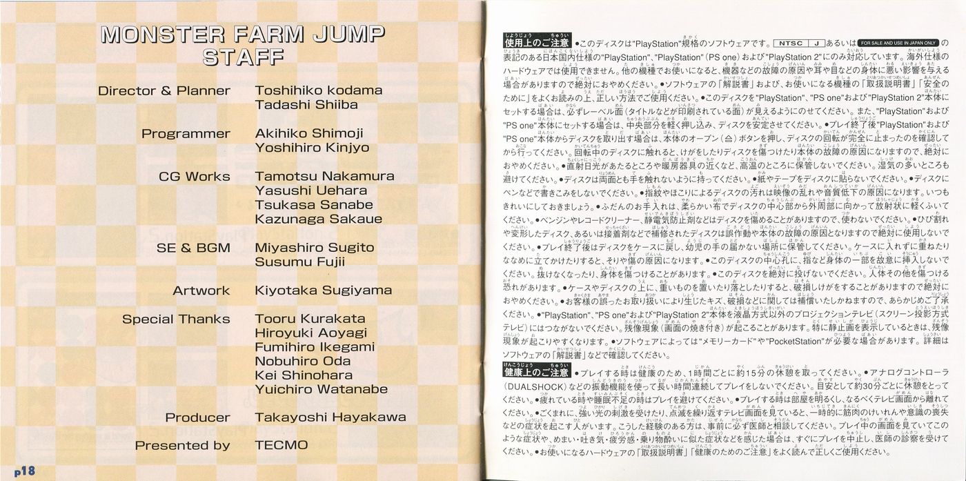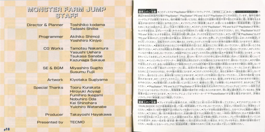 スポンサーリンク モンスターファーム ジャンプ[PS1] 2026.02.21 プレイステーション(PS1)ソフトモンスターファーム ジャンプの説明書です(Monster Farm Jump Instruction Manual)※スマホの画像操作は指2本で行ってください。 説明書画像(日本語)