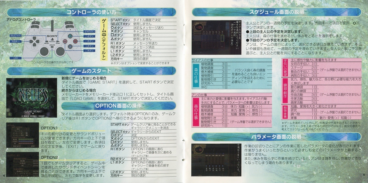 スポンサーリンク ノイエス 説明書 2025.10.17 プレイステーション(PS1)ソフトノイエスの説明書です(NEUES Instruction Manual)※スマホの画像操作は指2本で行ってください。 説明書画像(日本語)