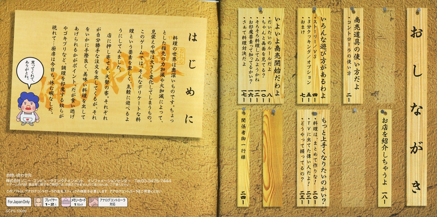 スポンサーリンク 俺の料理 説明書 2025.09.28 プレイステーション(PS1)ソフト俺の料理の説明書です(Oreno Ryouri Instruction Manual)※スマホの画像操作は指2本で行ってください。 説明書画像(日本語)