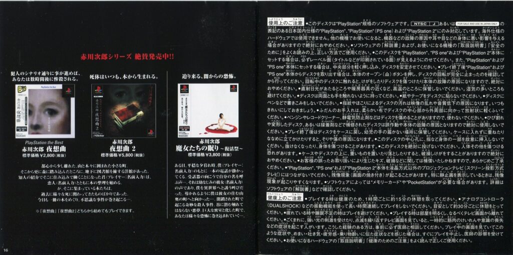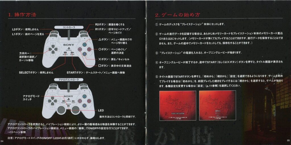 スポンサーリンク 逢魔が時[PS1] 2026.01.282026.01.29 プレイステーション(PS1)ソフト逢魔が時の説明書です(Ouma ga Toki Instruction Manual) 説明書画像(日本語)