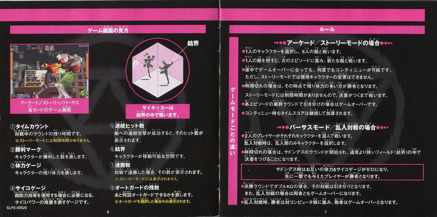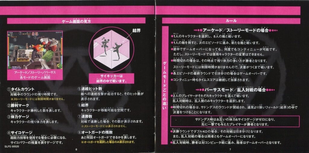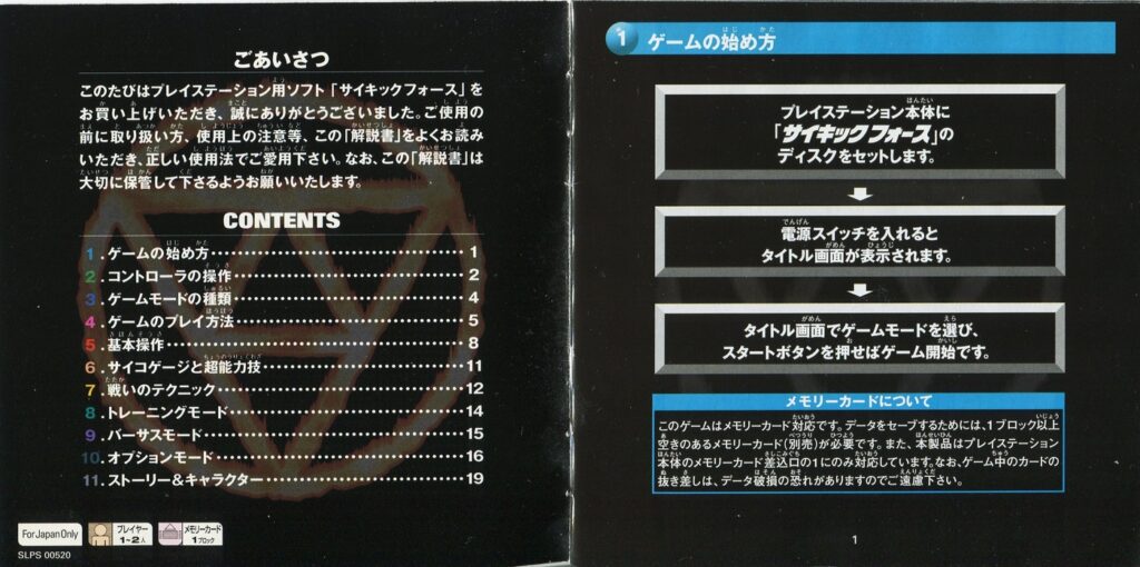 スポンサーリンク サイキックフォース[PS1] 2026.02.26 プレイステーション(PS1)ソフトサイキックフォースの説明書です(PSYCHIC FORCE Instruction Manual)※スマホの画像操作は指2本で行ってください。 説明書画像(日本語)