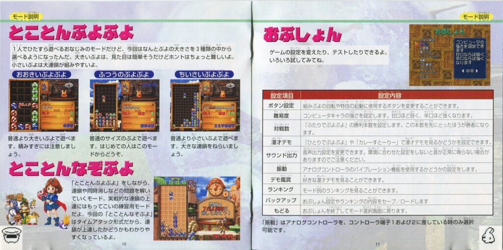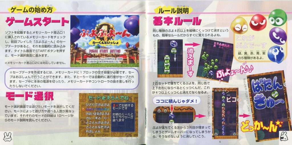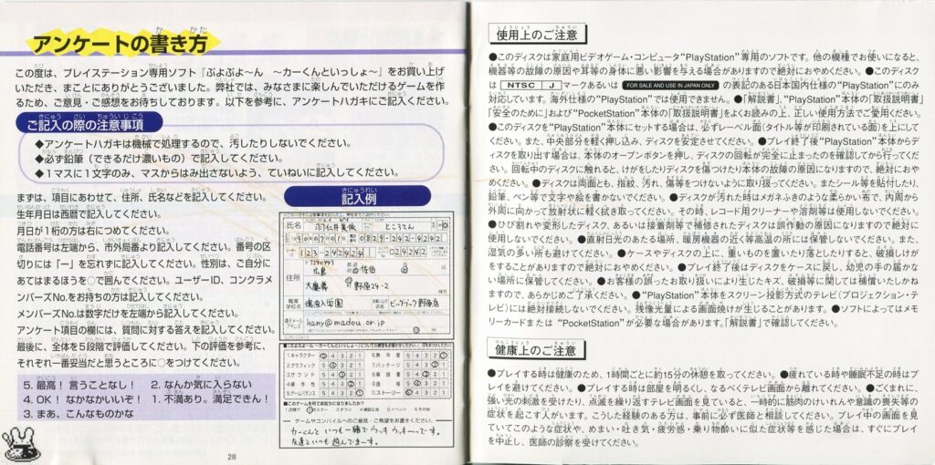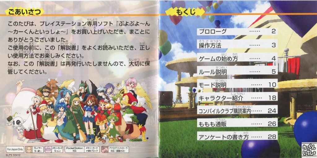 スポンサーリンク ぷよぷよ~ん[PS1] 2026.01.27 プレイステーション(PS1)ソフトぷよぷよ~ん カーくんといっしょの説明書です(PuyoPuyo4 Instruction Manual)※スマホの画像操作は指2本で行ってください。 説明書画像(日本語)
