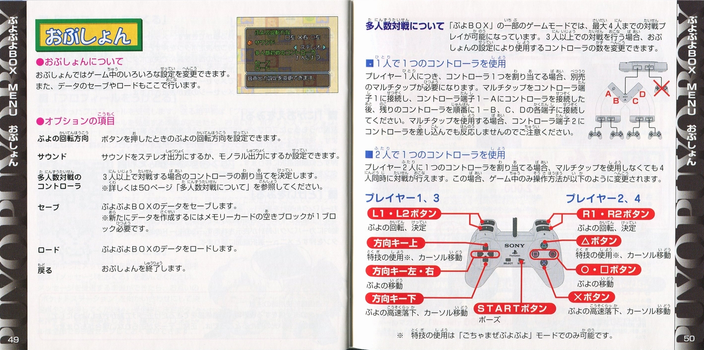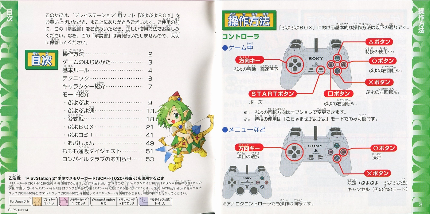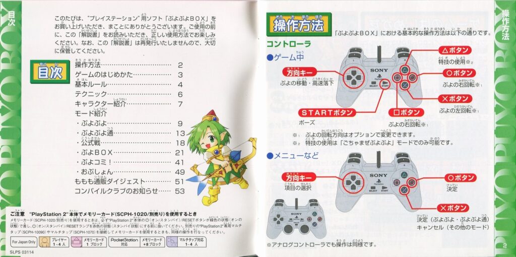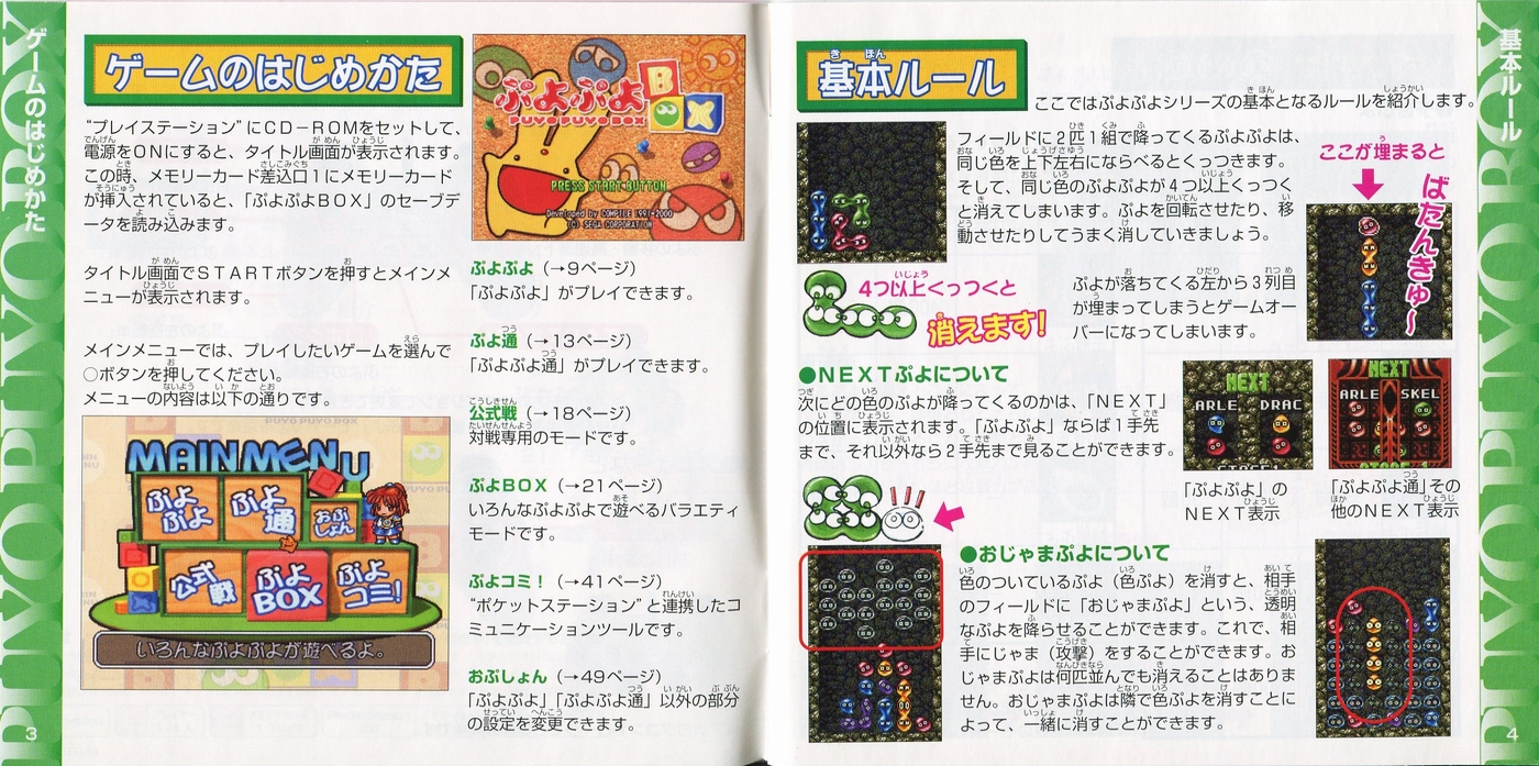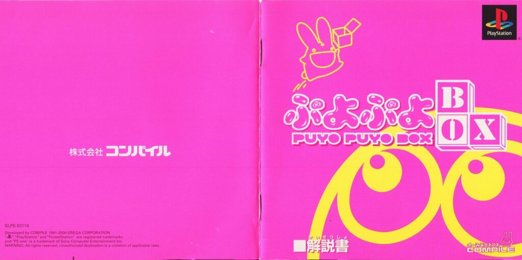 スポンサーリンク ぷよぷよBOX[PS1] 2026.04.04 プレイステーション(PS1)ソフトぷよぷよBOXの説明書です(PUYOPUYO BOX Instruction Manual)※スマホの画像操作は指2本で行ってください。 説明書画像(日本語)
