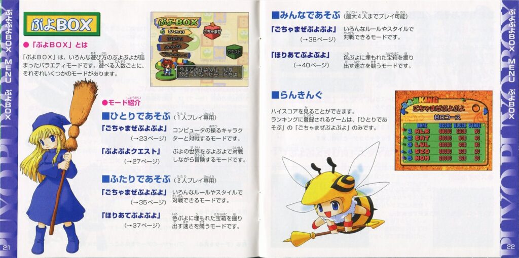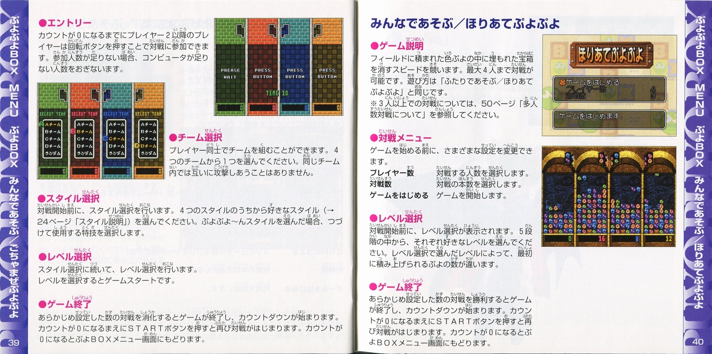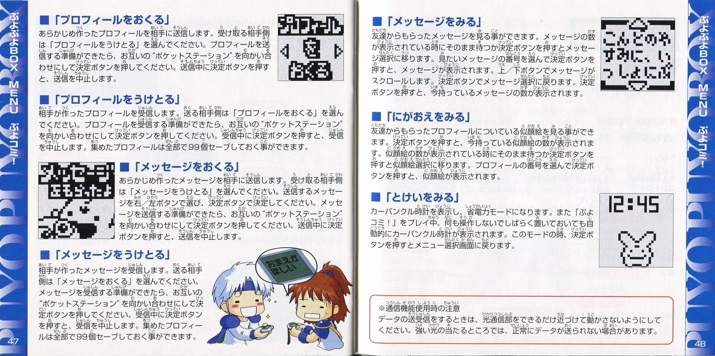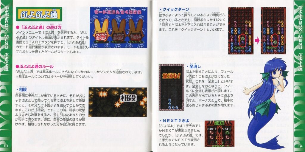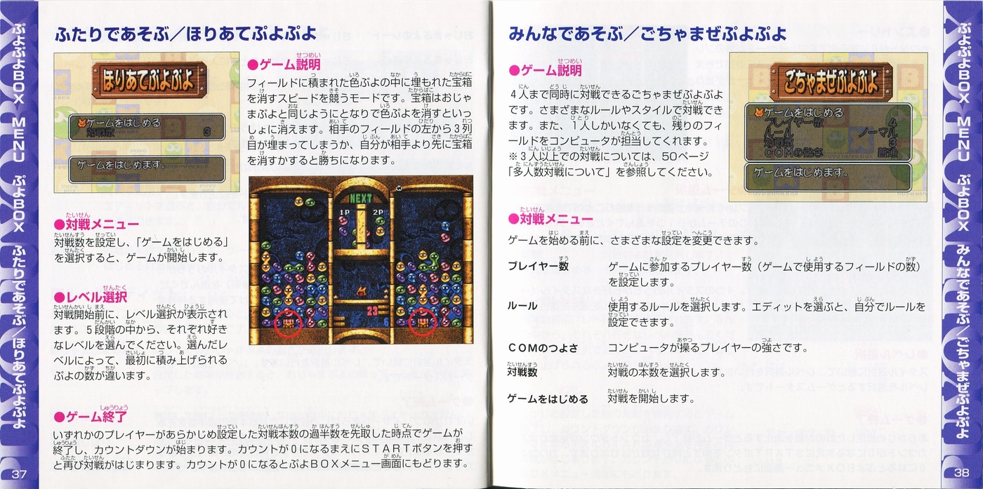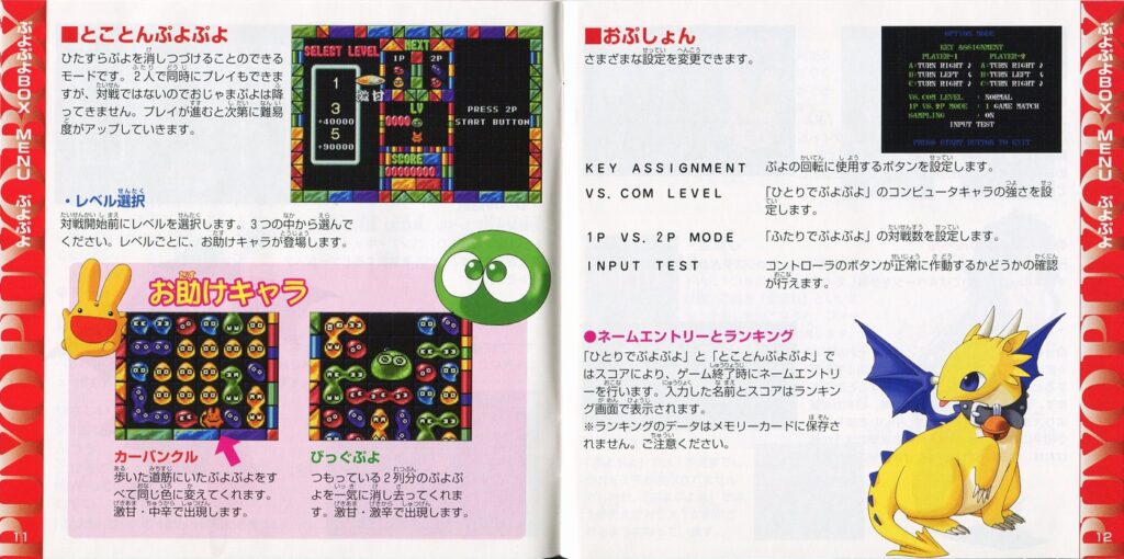 スポンサーリンク ぷよぷよBOX[PS1] 2026.04.04 プレイステーション(PS1)ソフトぷよぷよBOXの説明書です(PUYOPUYO BOX Instruction Manual)※スマホの画像操作は指2本で行ってください。 説明書画像(日本語)