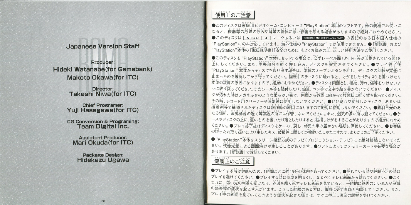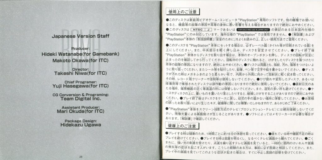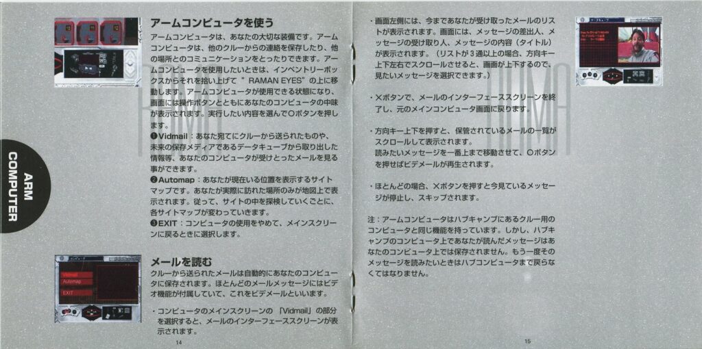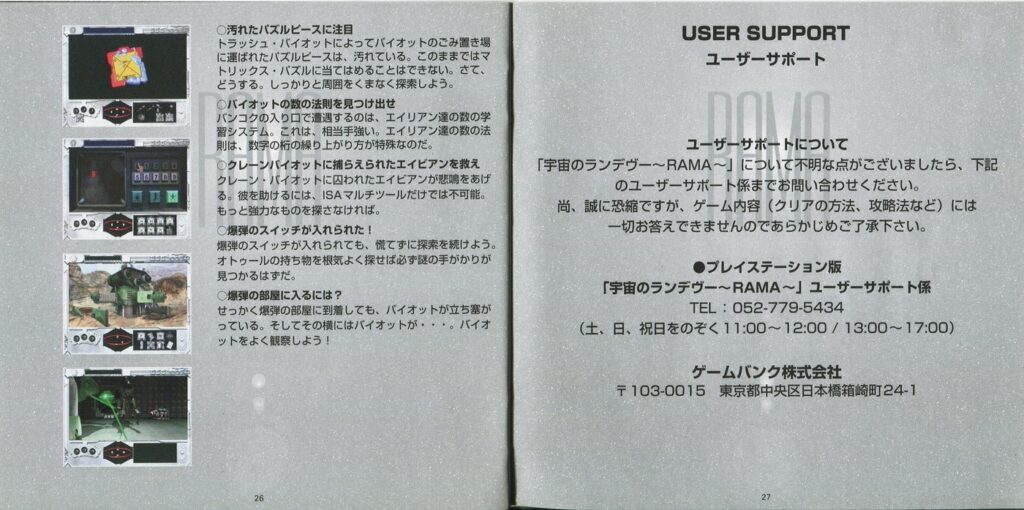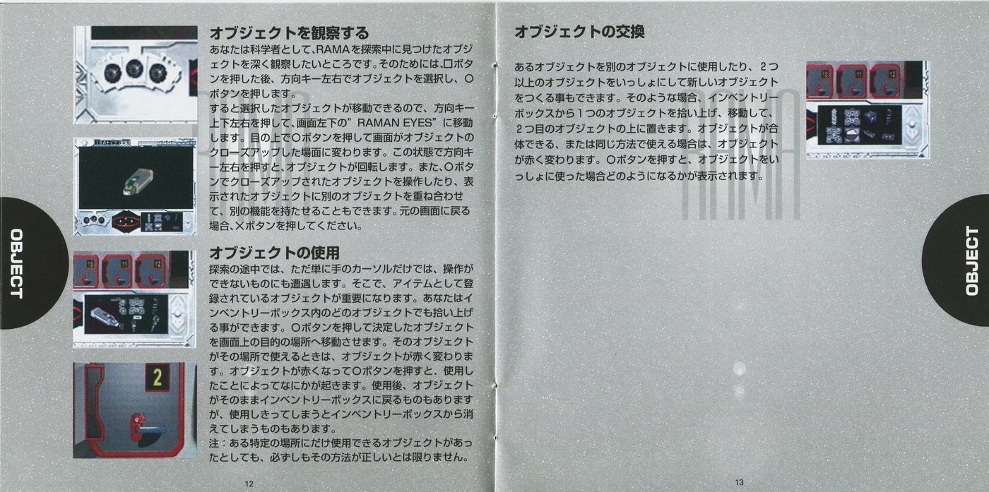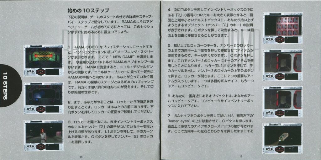 スポンサーリンク 宇宙のランデヴー ~RAMA~[PS1] 2026.01.06 プレイステーション(PS1)ソフト宇宙のランデヴー ~RAMA~の説明書です(RAMA Instruction Manual)※スマホの画像操作は指2本で行ってください。 説明書画像(日本語)