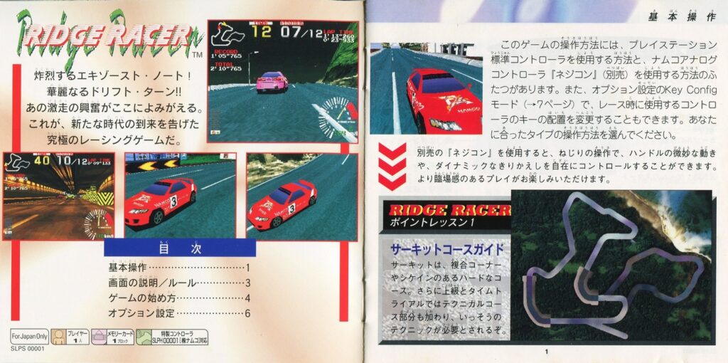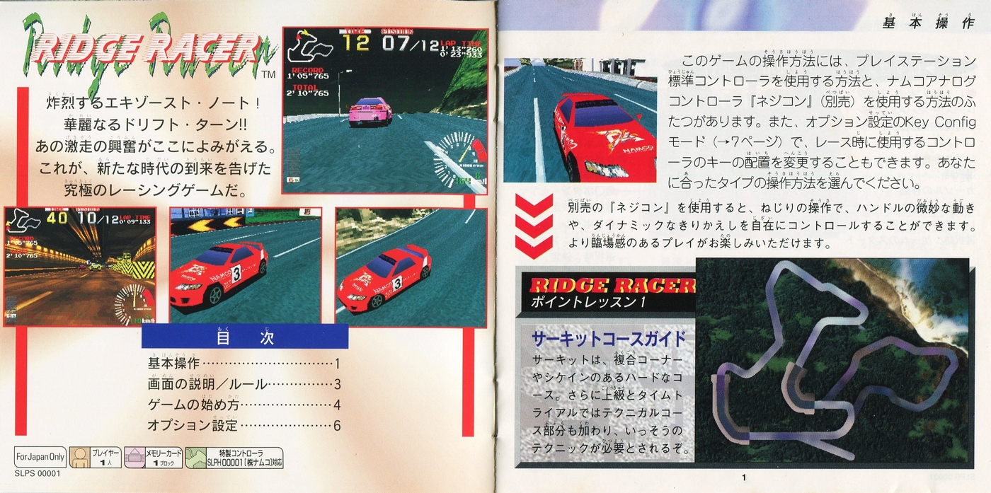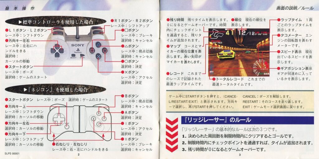 スポンサーリンク リッジレーサー 説明書 2025.10.24 プレイステーション(PS1)ソフトリッジレーサーの説明書です(RIDGE RACER Instruction Manual)※スマホの画像操作は指2本で行ってください。 説明書画像(日本語)