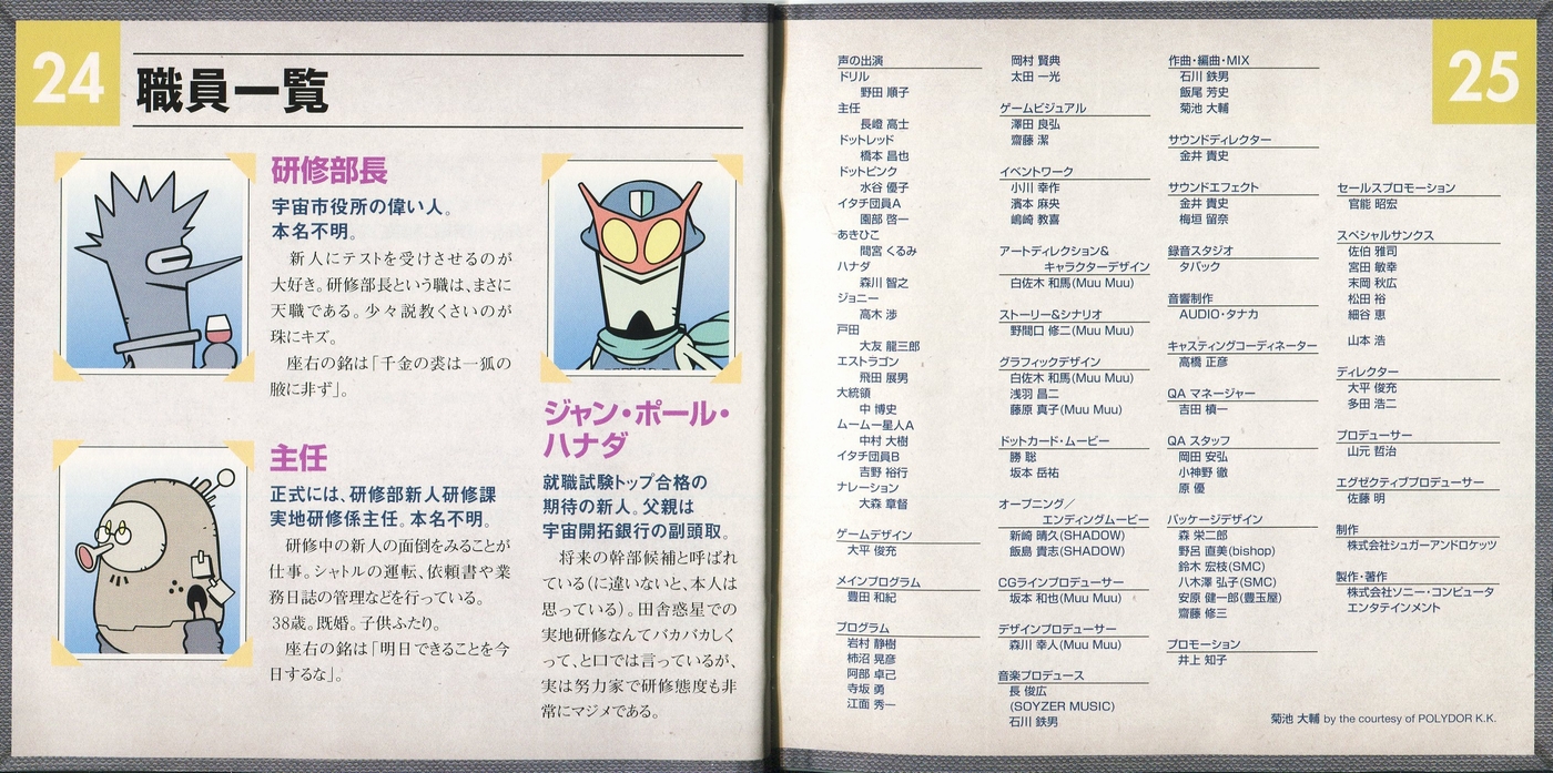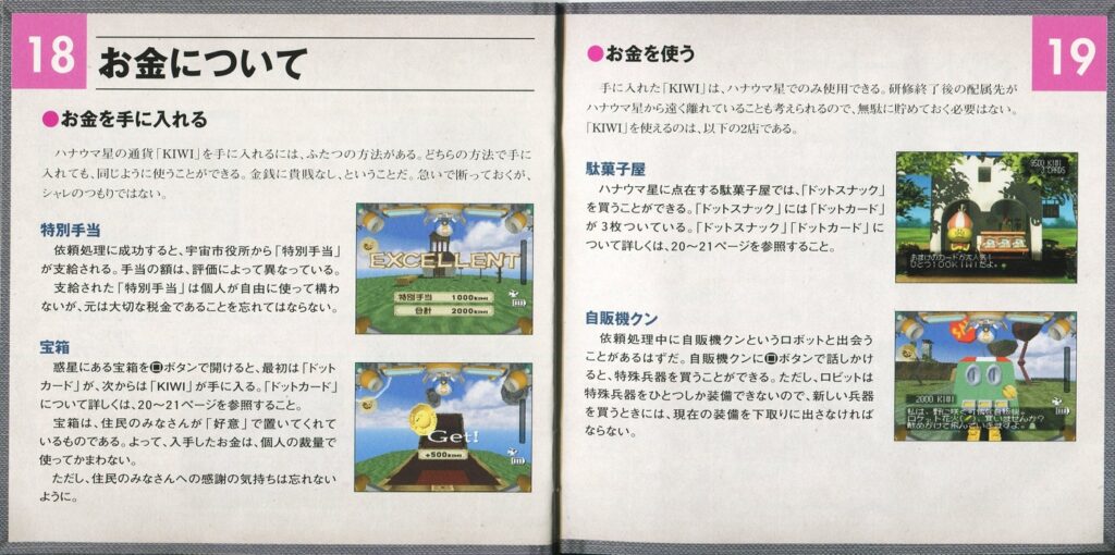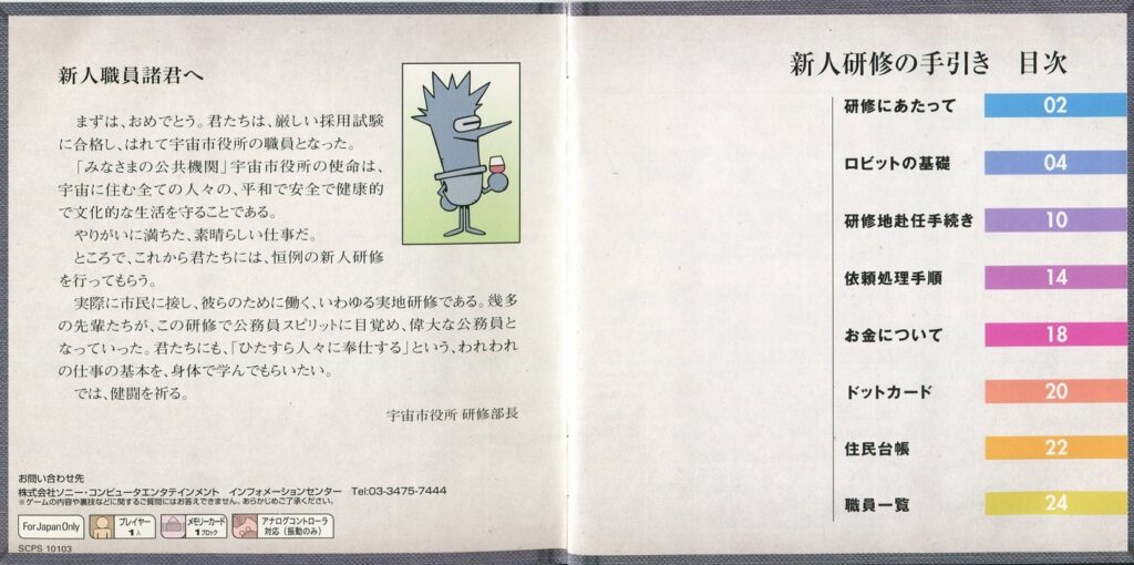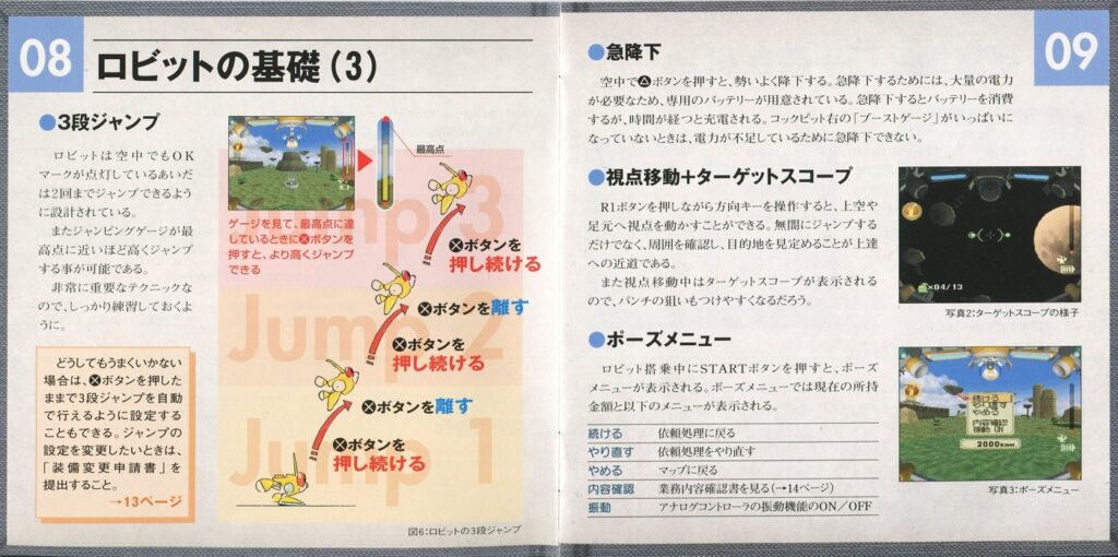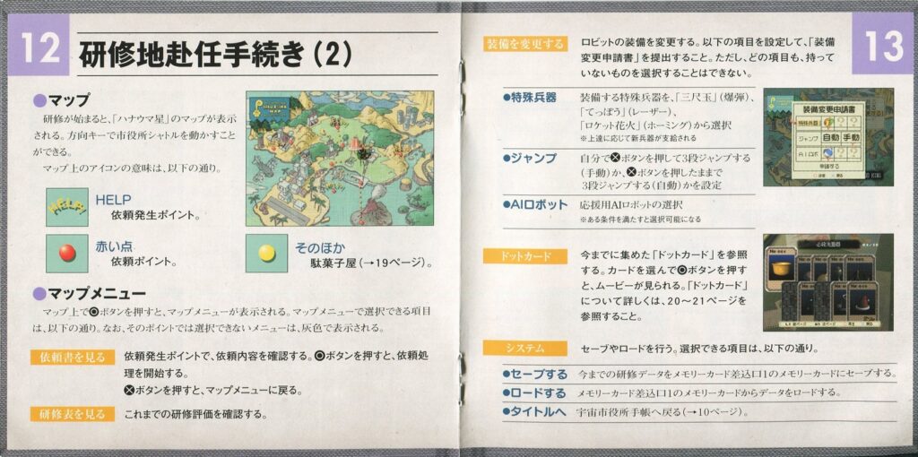 スポンサーリンク ロビット・モン・ジャ 説明書 2025.10.10 プレイステーション(PS1)ソフトロビット・モン・ジャの説明書です(Robbit Mon Dieu Instruction Manual)※スマホの画像操作は指2本で行ってください。 説明書画像(日本語)
