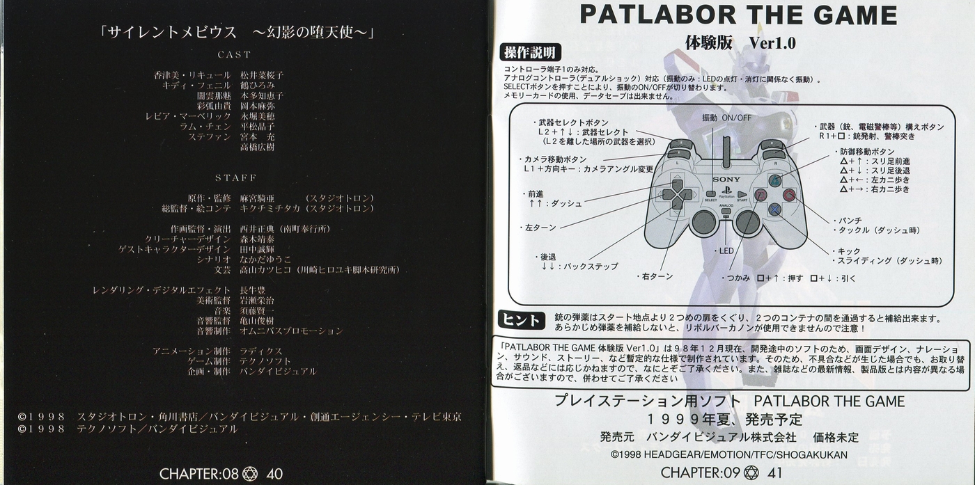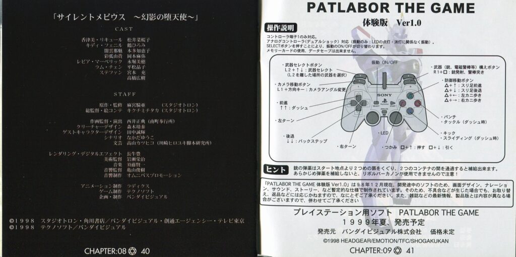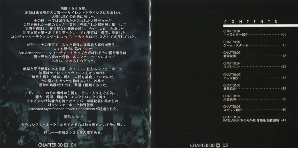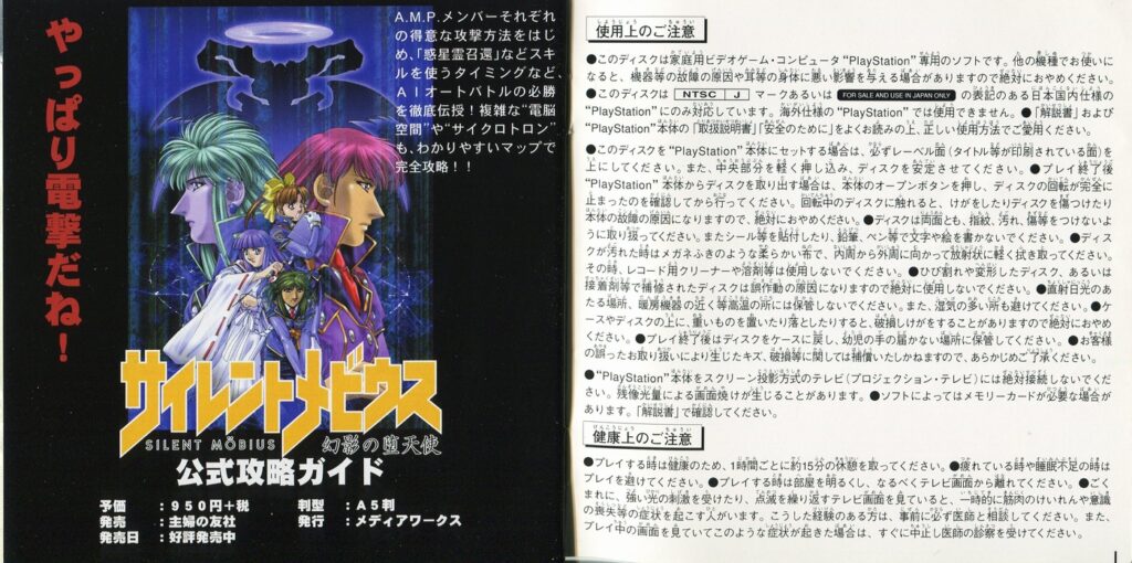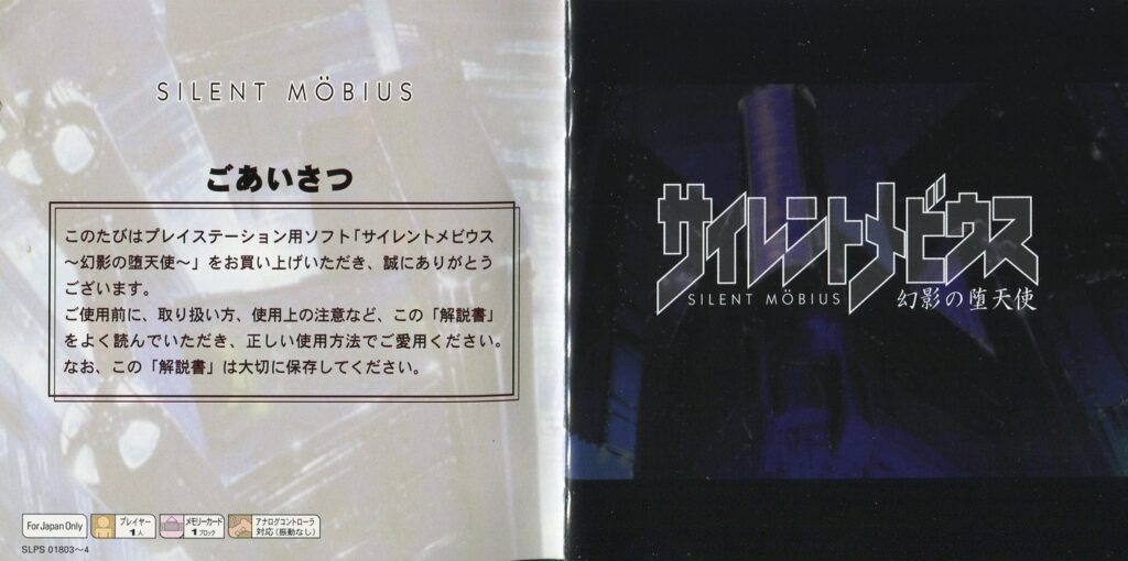 スポンサーリンク サイレントメビウス 幻影の堕天使 説明書 2025.12.07 プレイステーション(PS1)ソフトサイレントメビウス 幻影の堕天使の説明書です(SILENT MOBIUS Genei no datenshi Instruction Manual)※スマホの画像操作は指2本で行ってください。 説明書画像(日本語)