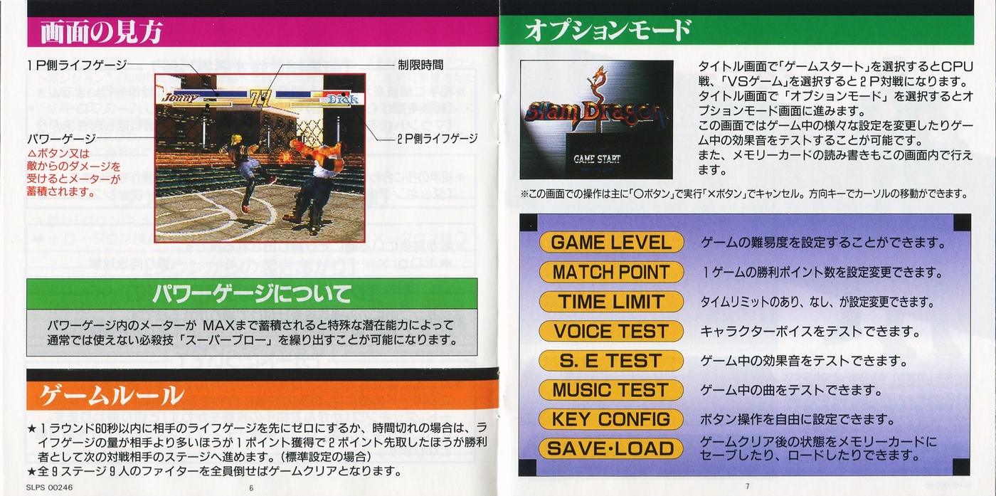 スポンサーリンク スラムドラゴン[PS1] 2026.01.29 プレイステーション(PS1)ソフトスラムドラゴンの説明書です(Slam Dragon Instruction Manual)※スマホの画像操作は指2本で行ってください。 説明書画像(日本語)