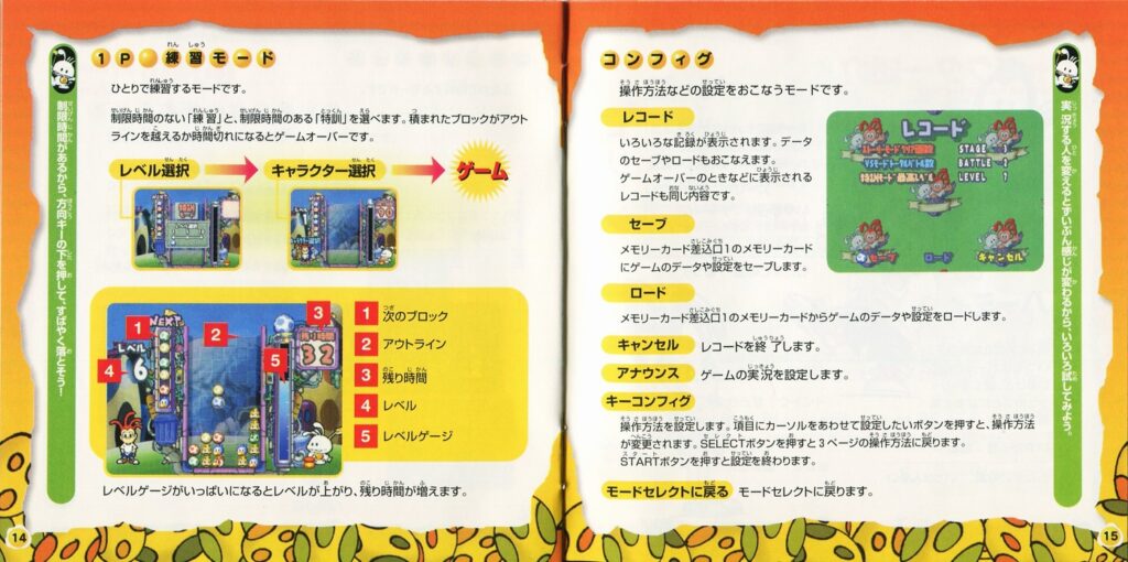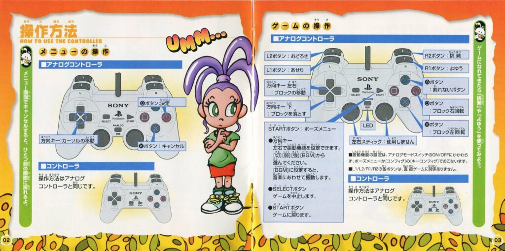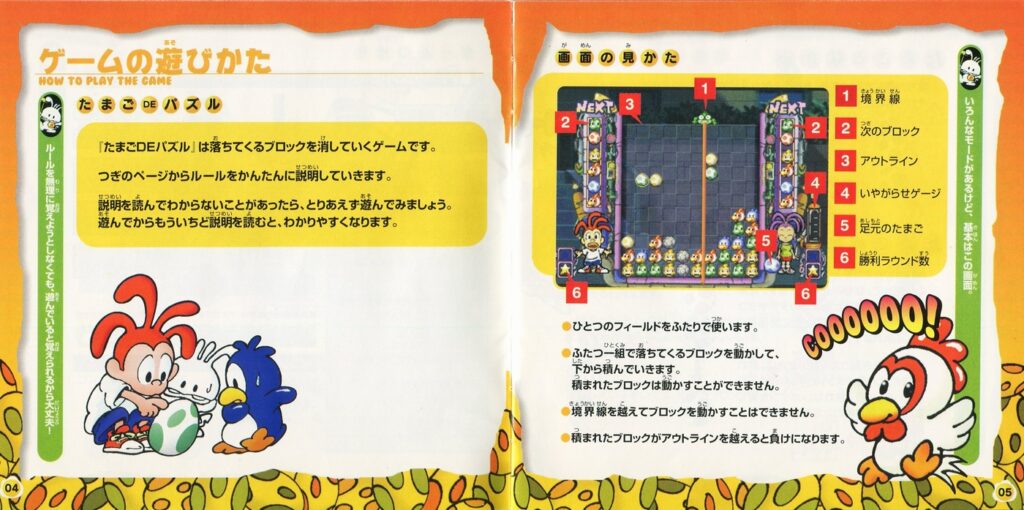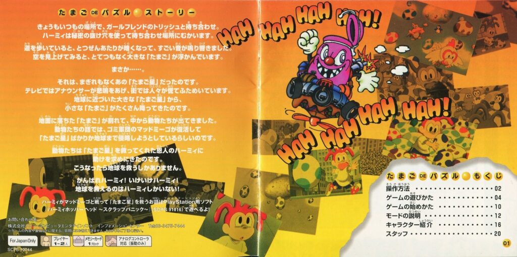 スポンサーリンク たまごDEパズル 説明書 2025.10.30 プレイステーション(PS1)ソフトたまごDEパズルの説明書です(Tamago de Puzzle Instruction Manual)※スマホの画像操作は指2本で行ってください。 説明書画像(日本語)