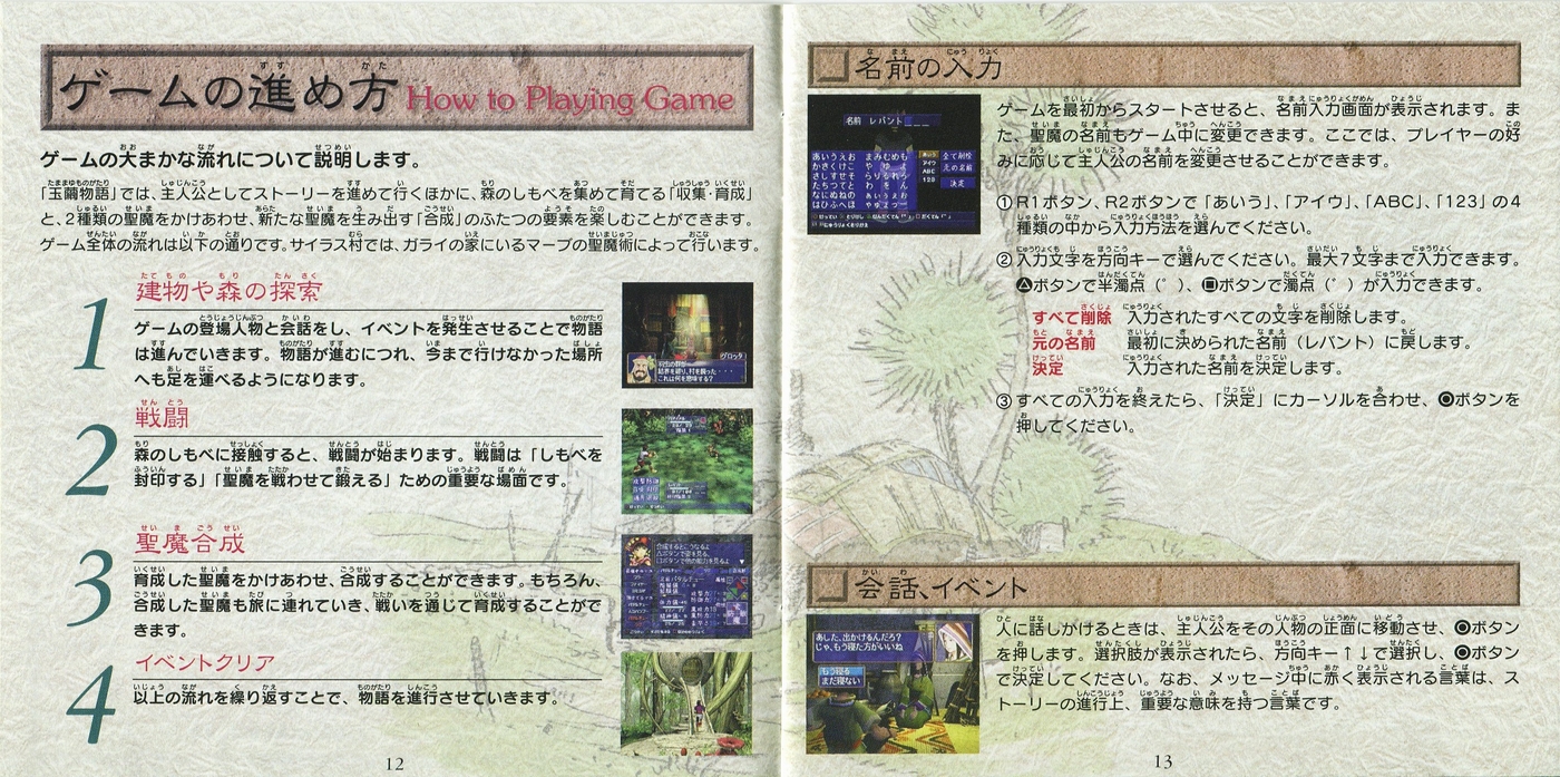 スポンサーリンク 玉繭物語 説明書 2025.11.26 プレイステーション(PS1)ソフト玉繭物語の説明書です(Tamamayu Monogatari Instruction Manual)※スマホの画像操作は指2本で行ってください。 説明書画像(日本語)