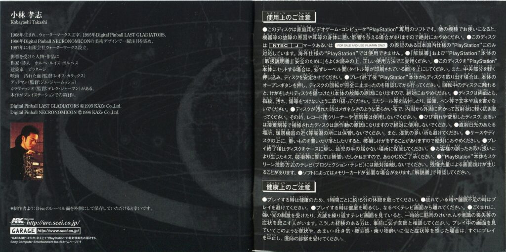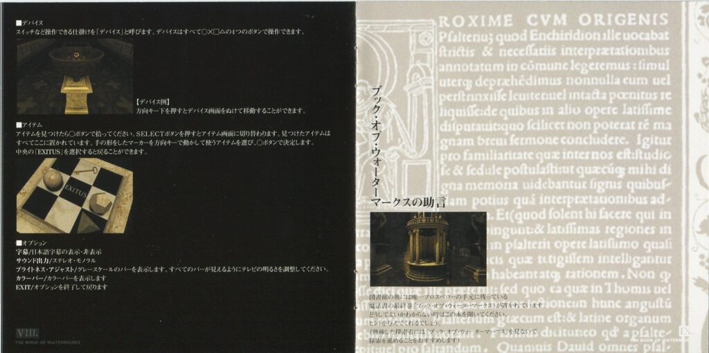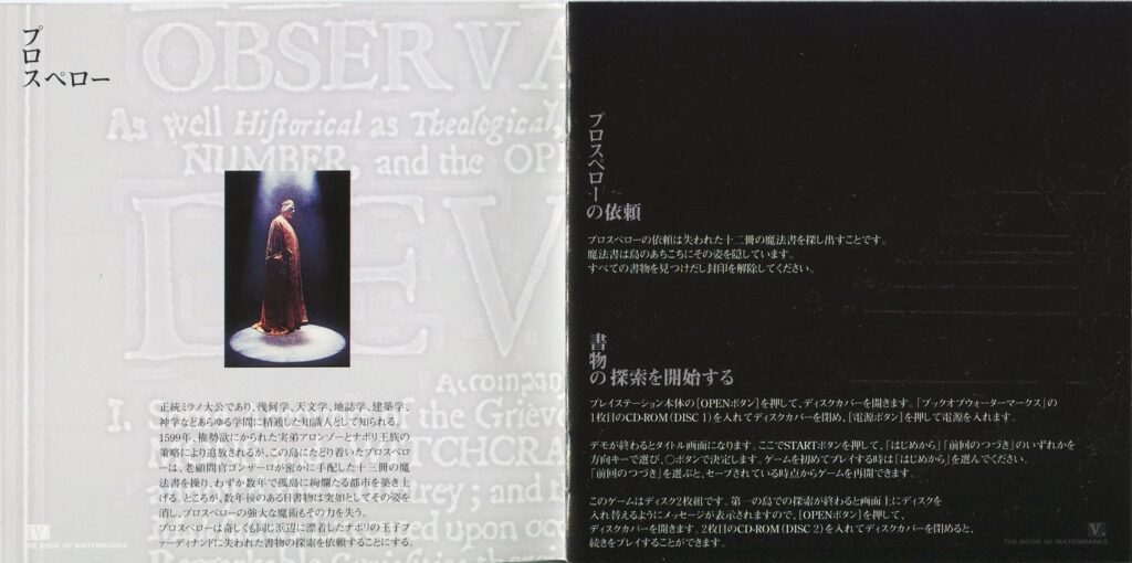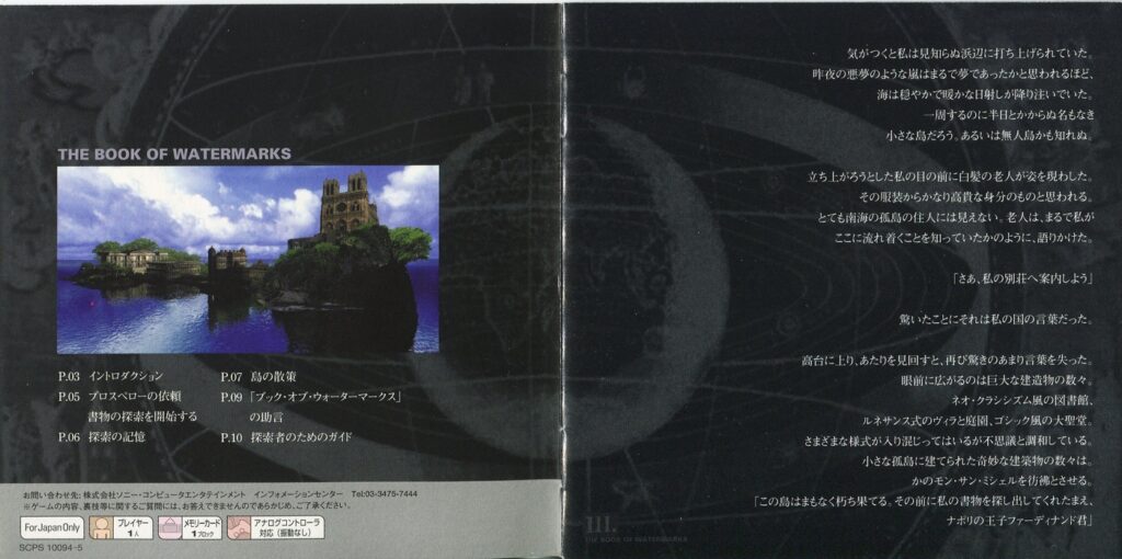 スポンサーリンク ブック・オブ・ウォーターマークス[PS1] 2026.02.04 プレイステーション(PS1)ソフトブック・オブ・ウォーターマークスの説明書です(THE BOOK OF WATERMARKS Instruction Manual)※スマホの画像操作は指2本で行ってください。 説明書画像(日本語)