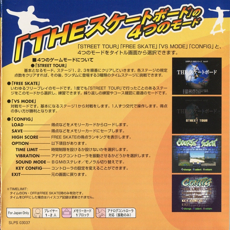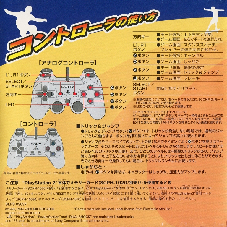 スポンサーリンク THE スケートボード[PS1] 2026.01.20 プレイステーション(PS1)ソフトTHE スケートボードの説明書です(THE SKATEBOARD Instruction Manual)※スマホの画像操作は指2本で行ってください。 説明書画像(日本語)