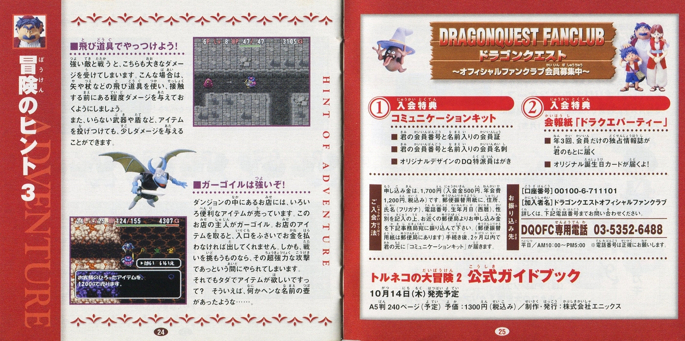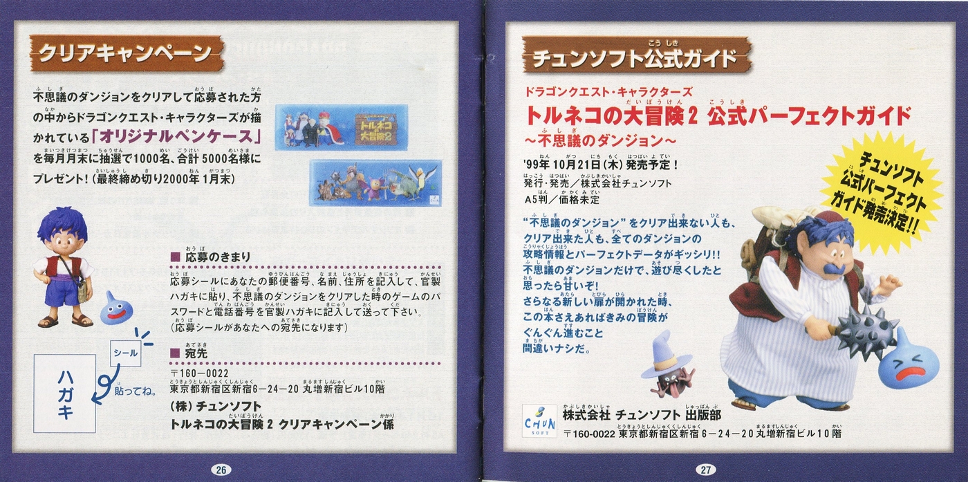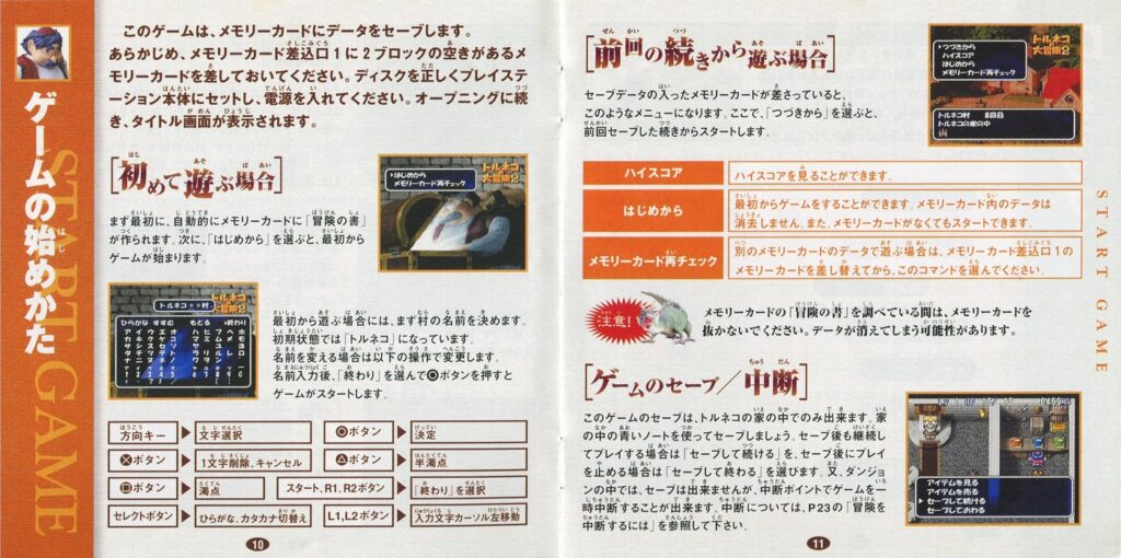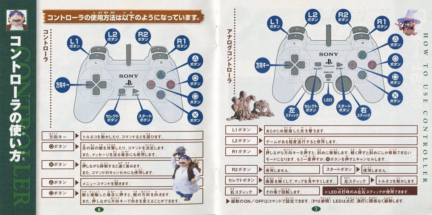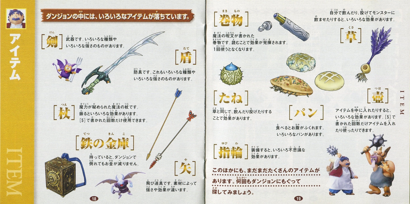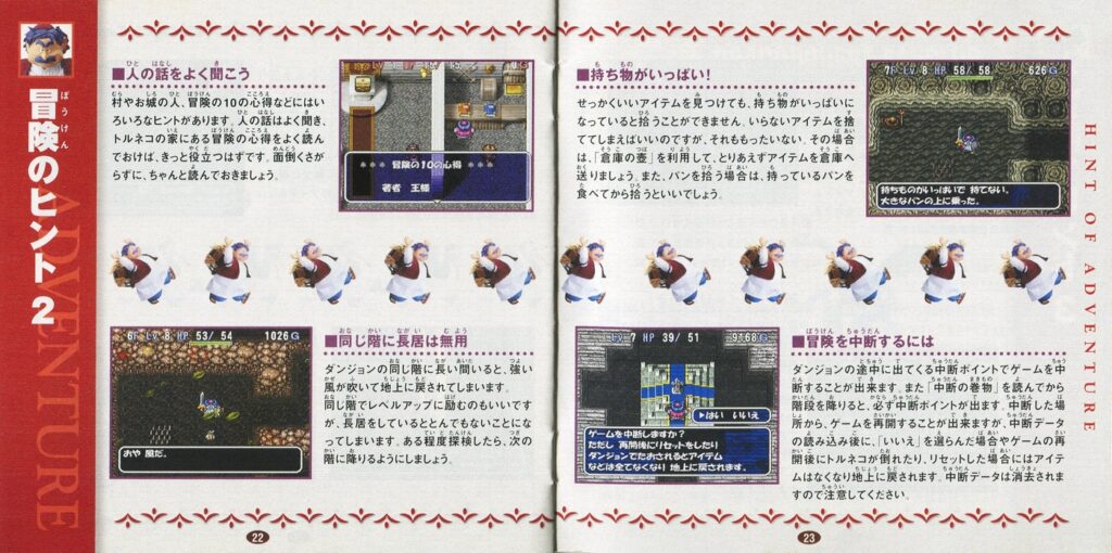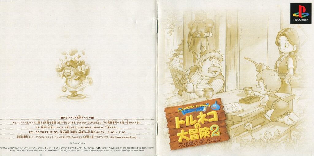 スポンサーリンク トルネコの大冒険2 説明書 2025.09.16 プレイステーション(PS1)ソフトドラゴンクエストキャラクターズ トルネコの大冒険2 不思議のダンジョンの説明書です(Torneko no Daibouken2 Instruction Manual)※スマホの画像操作は指2本で行ってください。 説明書画像(日本語)