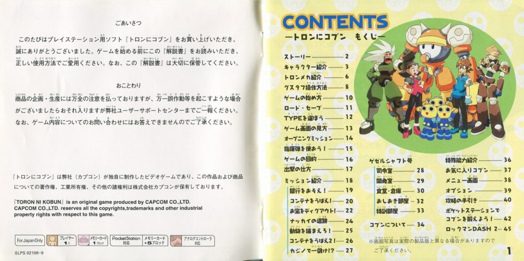 スポンサーリンク トロンにコブン 説明書 2025.10.03 プレイステーション(PS1)ソフトロックマンDASHシリーズ トロンにコブンの説明書です(Toron ni Kobun Instruction Manual)※スマホの画像操作は指2本で行ってください。 説明書画像(日本語)