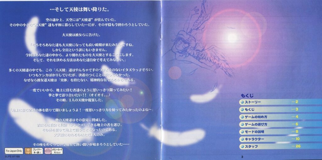 スポンサーリンク 闘姫伝承 説明書 2025.11.12 プレイステーション(PS1)ソフト闘姫伝承 ANGEL EYESの説明書です(Touki Denshou ANGEL EYES Instruction Manual)※スマホの画像操作は指2本で行ってください。 説明書画像(日本語)