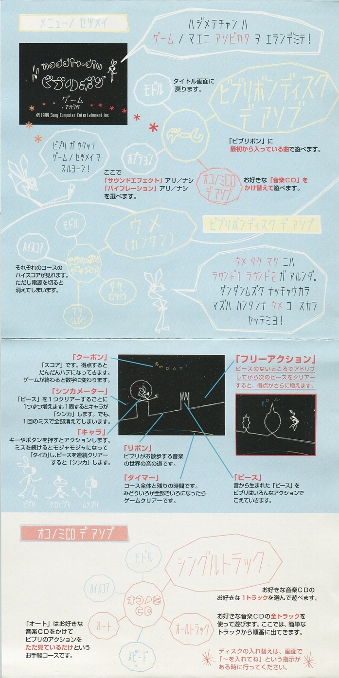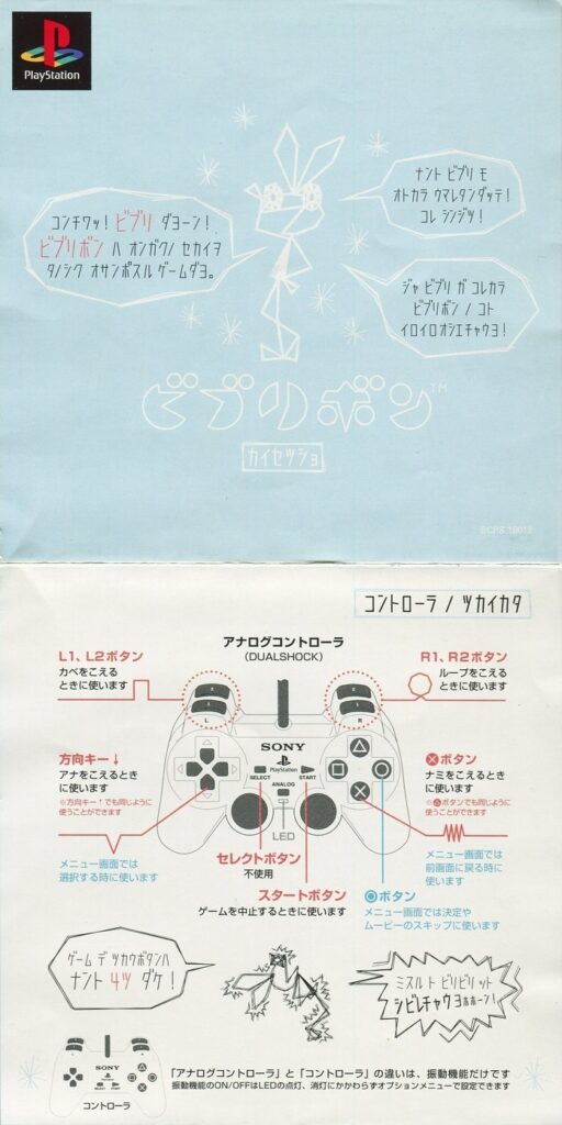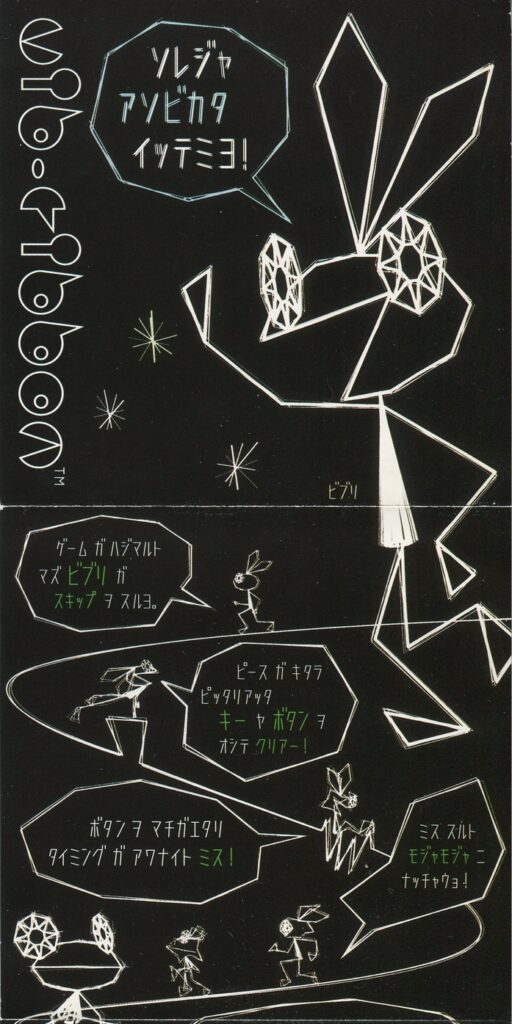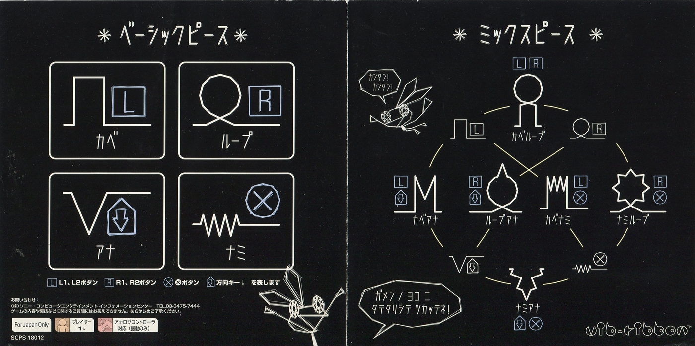 スポンサーリンク ビブリボン 説明書 2025.10.13 プレイステーション(PS1)ソフトビブリボンの説明書です(vib-ribbon Instruction Manual)※スマホの画像操作は指2本で行ってください。 説明書画像(日本語)