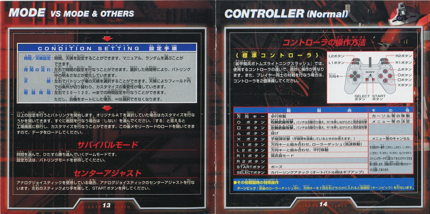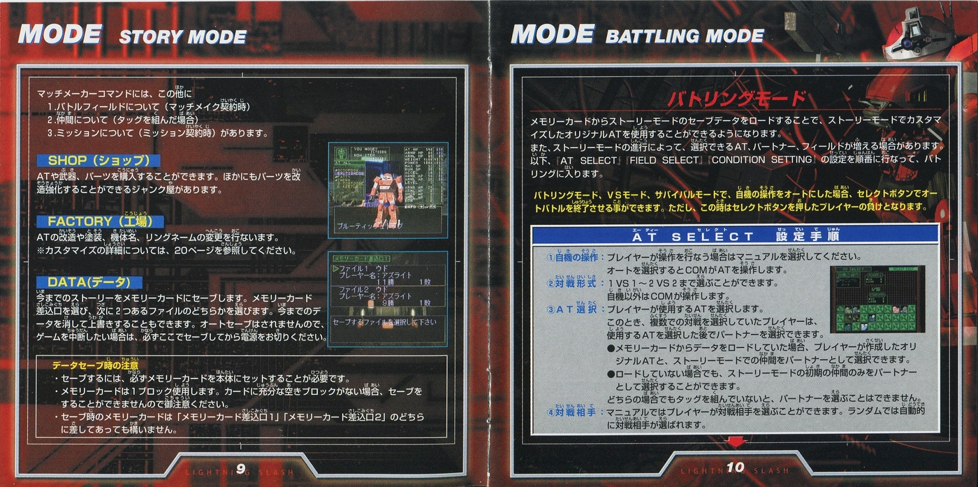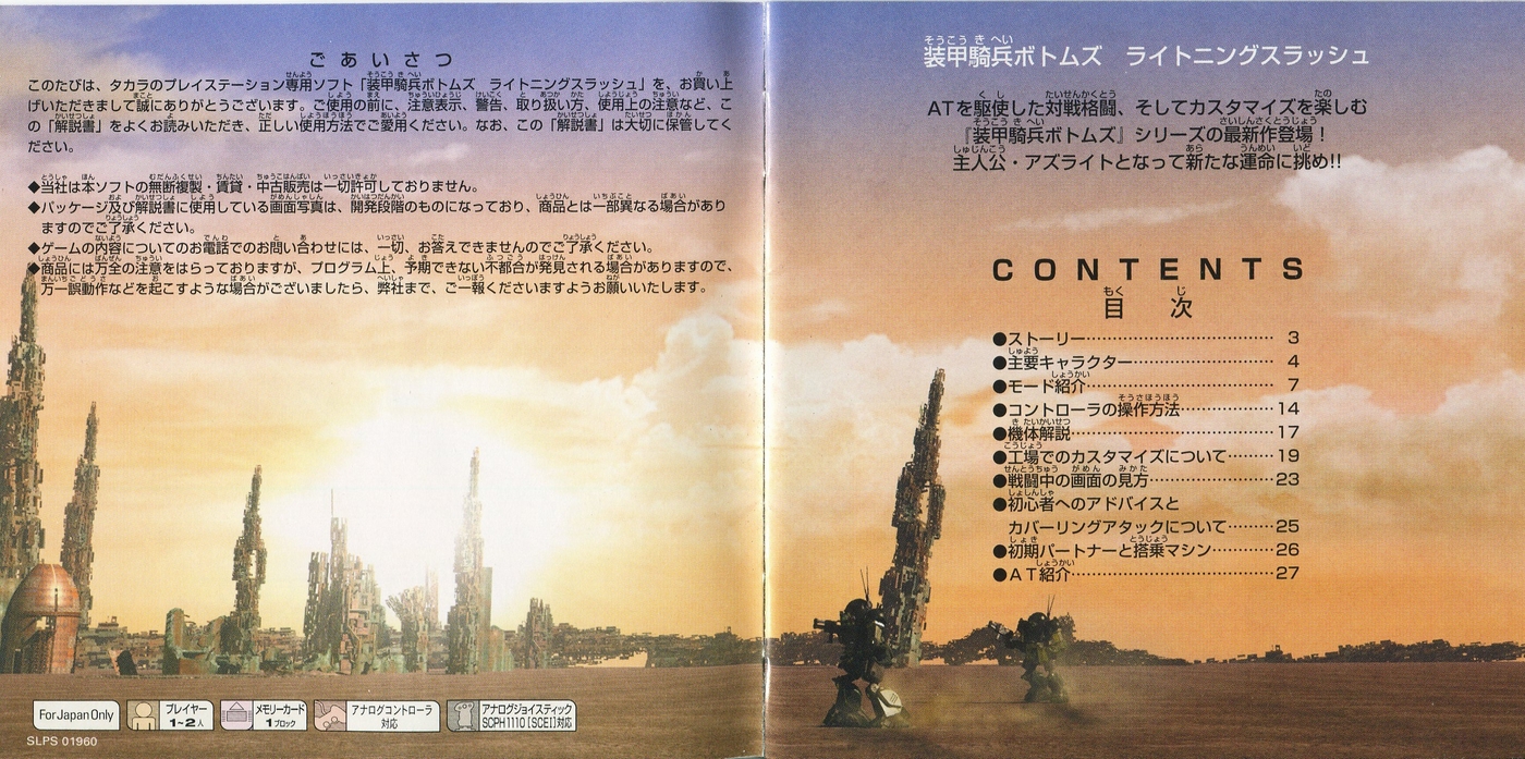 スポンサーリンク 装甲騎兵ボトムズ ライトニングスラッシュ[PS1] 2026.01.08 プレイステーション(PS1)ソフト装甲騎兵ボトムズ ライトニングスラッシュの説明書です(VOTOMS Lightning Slash Instruction Manual)※スマホの画像操作は指2本で行ってください。 説明書画像(日本語)