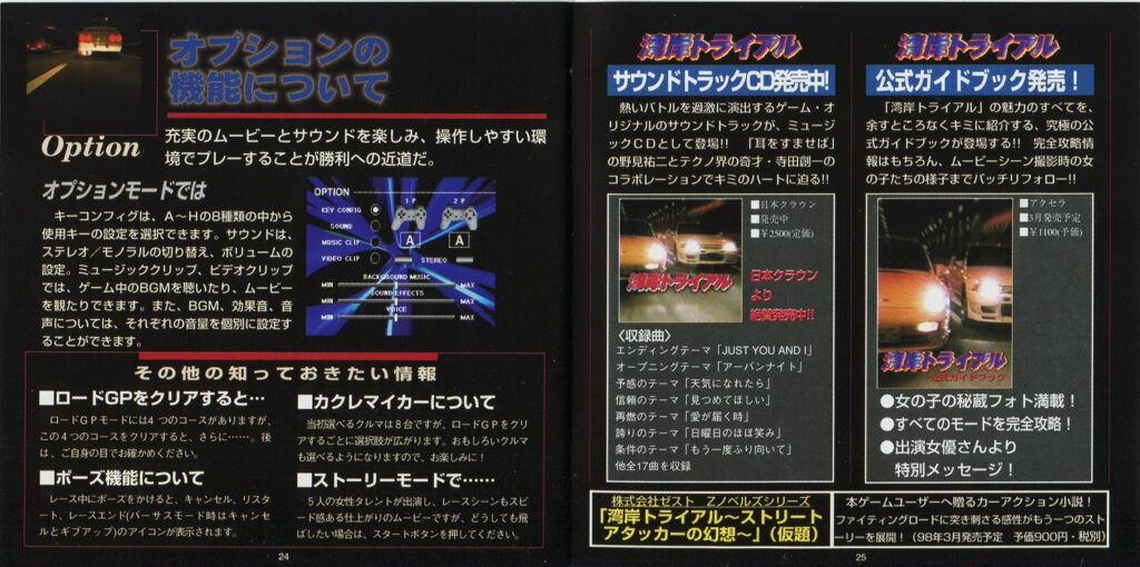 スポンサーリンク 湾岸トライアル[PS1] 2026.04.30 プレイステーション(PS1)ソフト湾岸トライアルの説明書です(Wangan Trial Instruction Manual)※スマホの画像操作は指2本で行ってください。 説明書画像(日本語)
