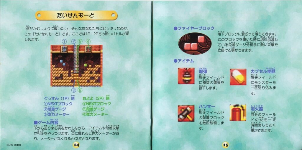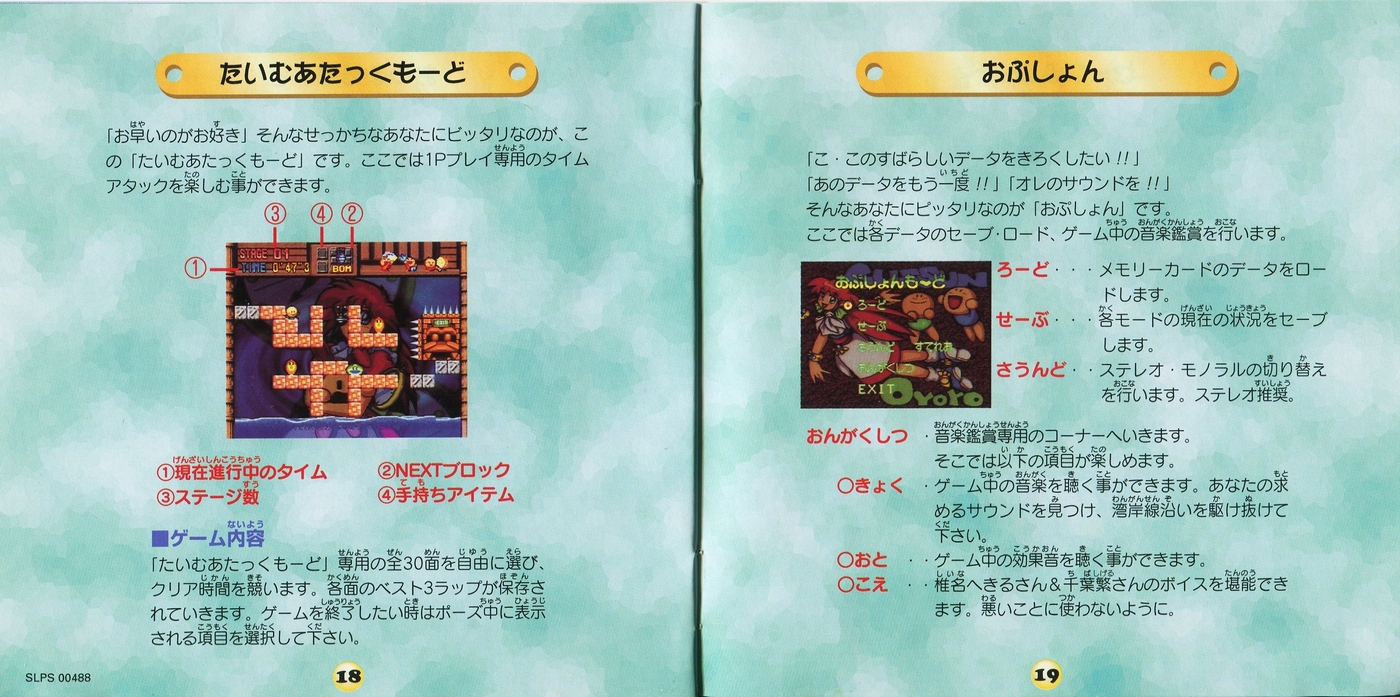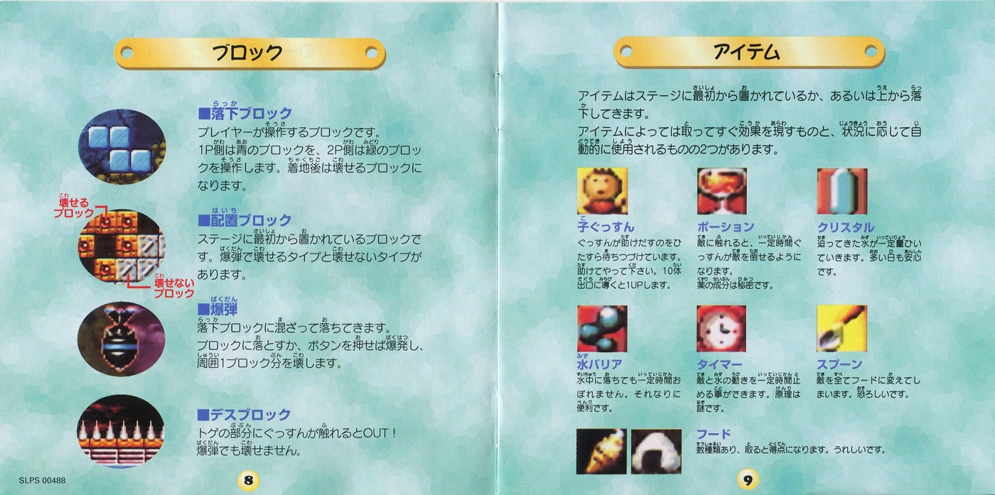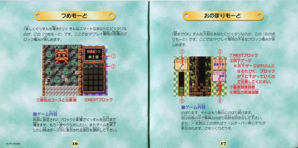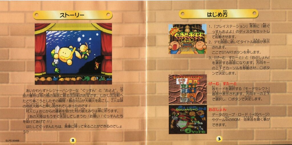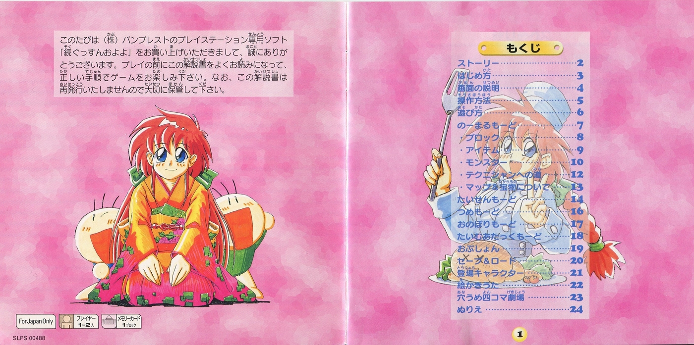 スポンサーリンク 続ぐっすんおよよ 説明書 2025.11.02 プレイステーション(PS1)ソフト続ぐっすんおよよ 説明書の説明書です(Zoku Gussun Oyoyo Instruction Manual)※スマホの画像操作は指2本で行ってください。 説明書画像(日本語)